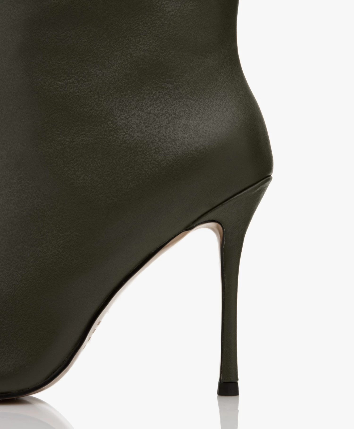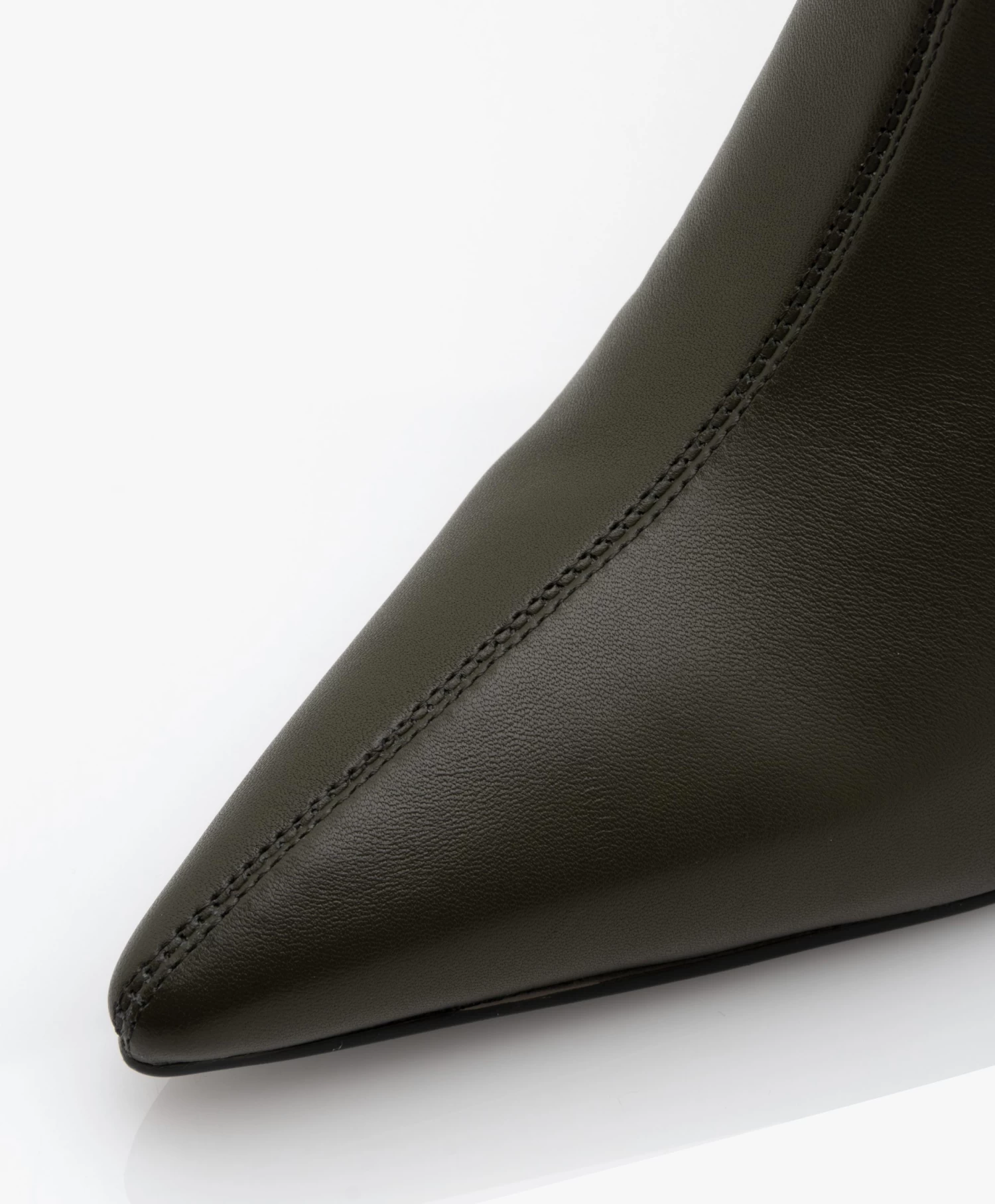Naaldhakken worden vaak geclaimd als kenmerk van vrouwelijke elegantie en Alias Mae bewijst waarom. Deze laarzen in een olijfgroene tint zijn ontworpen met een puntige neus en een slanke naaldhak die overgaat in een rechte schacht tot kniehoogte. De hoogwaardige leerkwaliteit is glad en soepel en draagt niet alleen bij aan de luxe uitstraling, maar ook aan het hoge comfortgehalte. Binnen no time tover jij je dagelijkse outfit om tot een chique look met een verleidelijke touch.