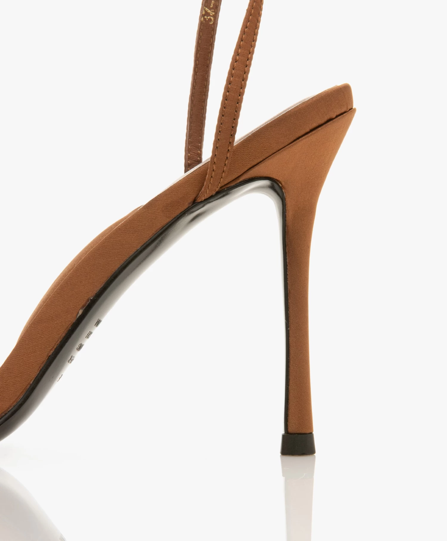 Strappy sandalen met een verfijnde hak maken elke outfit elegant. De cognac-kleurige Mia sandalen van Alias Mae zijn ontworpen met extra smalle bandjes van matglanzend satijn, elegant kruisend op de voorvoet. De vierkante neus oogt minimalistisch en modern. Fijn: de gepolsterde kussentjes in de zool die de voetboog en tenen ondersteunen.