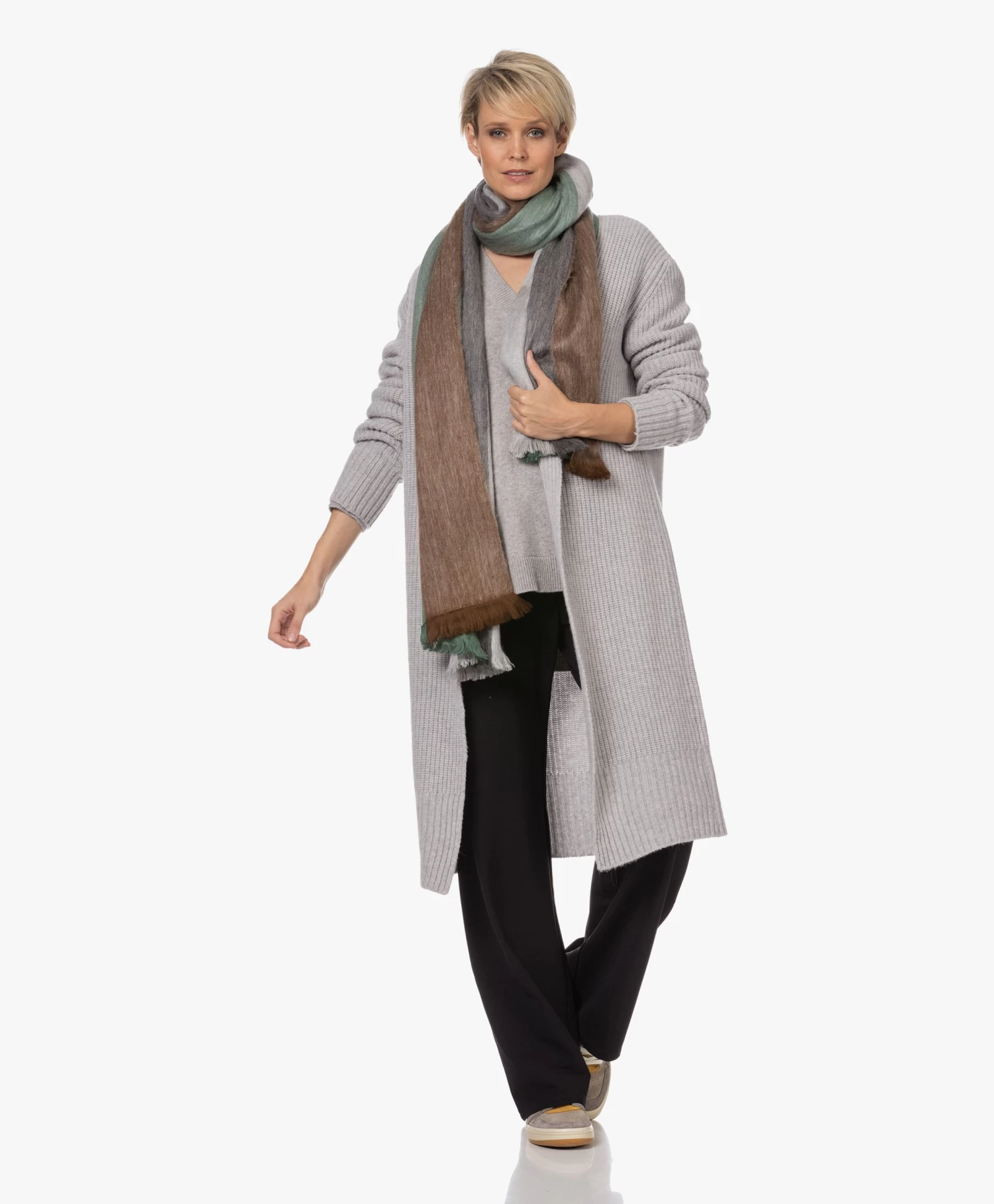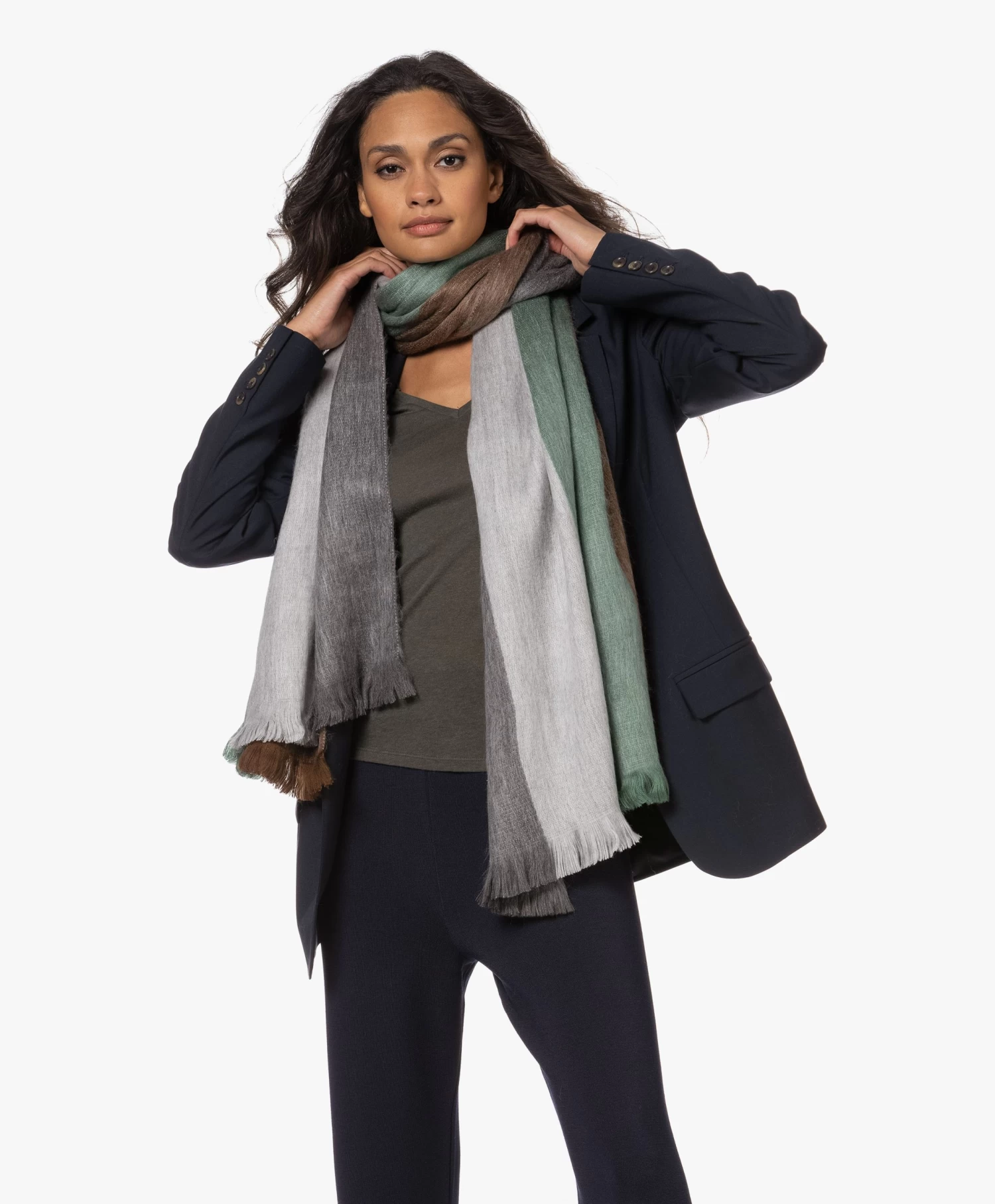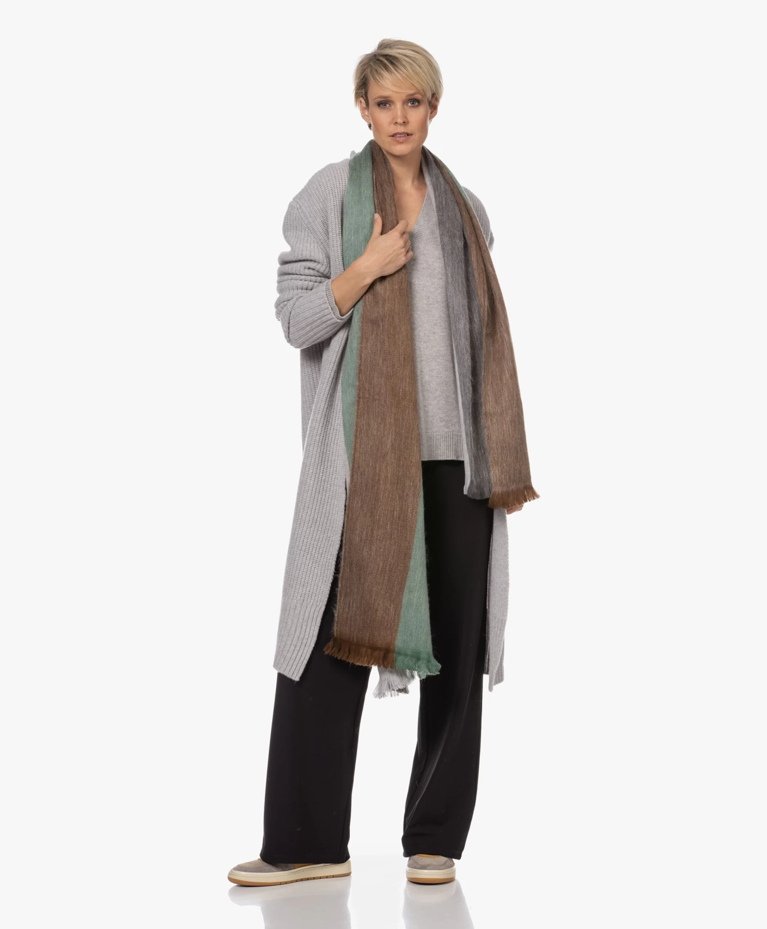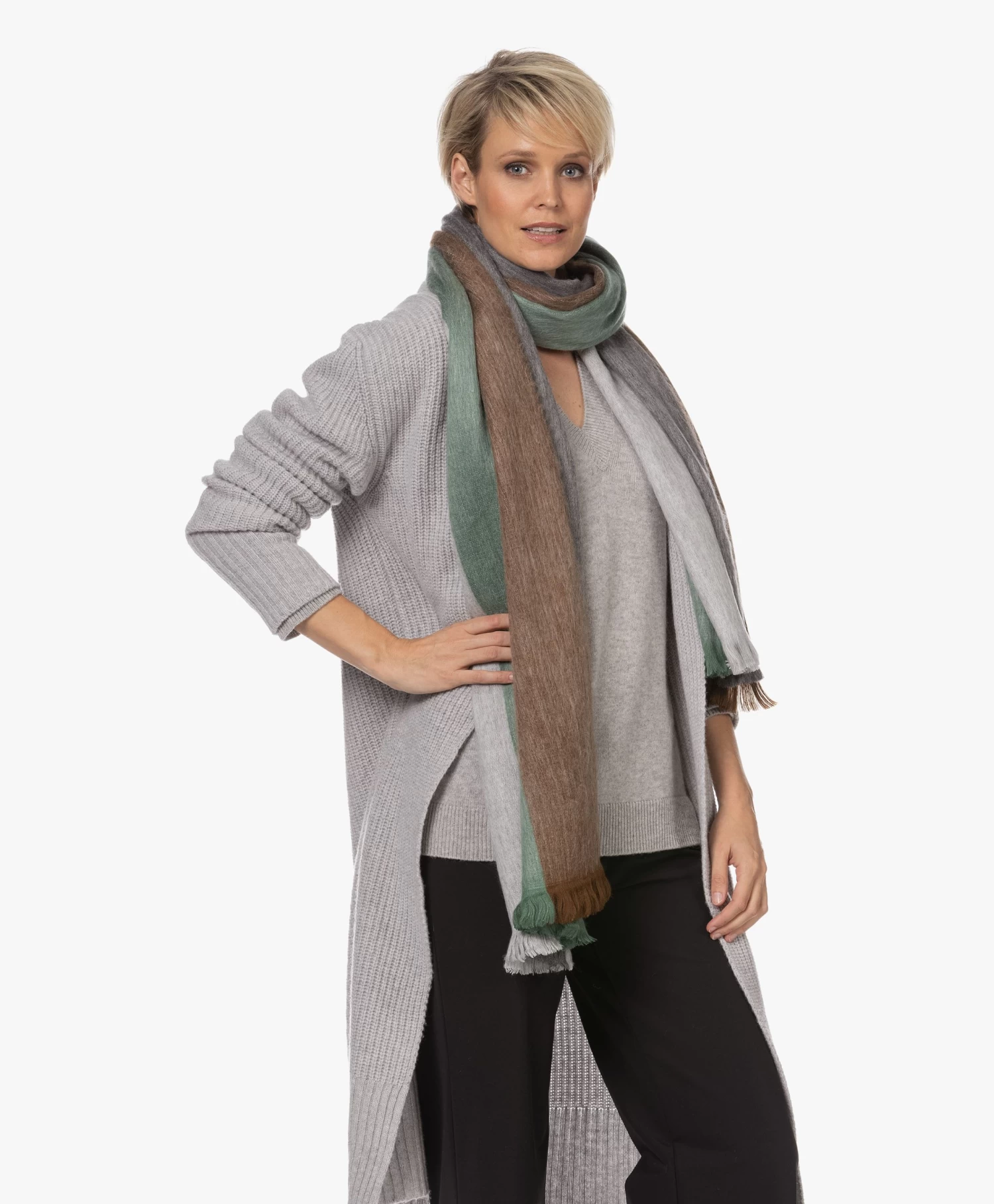 Zachter dan zijde en warmer dan schapenwol – deze dubbelzijdig geweven, gestreepte sjaal in bruin, mint, lichtgrijs en middengrijs van Alpaca Loca is handgemaakt van alpacawol met een natuurlijke glans. De pure, gladde vezel bevat geen lanoline en is daardoor hypoallergeen en van nature water- en vuilafstotend. Voeg stijl en comfort toe aan iedere look!