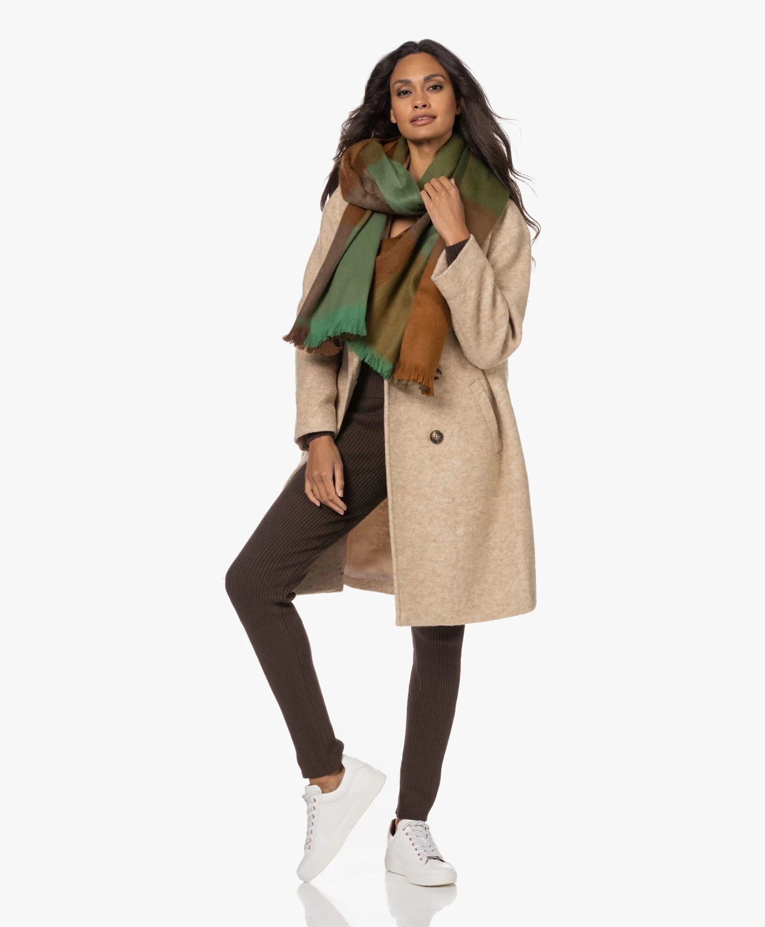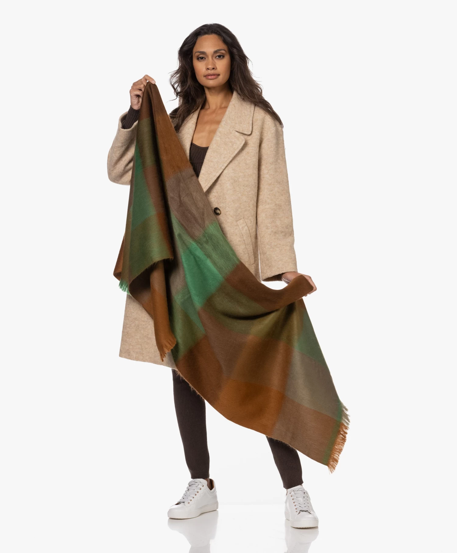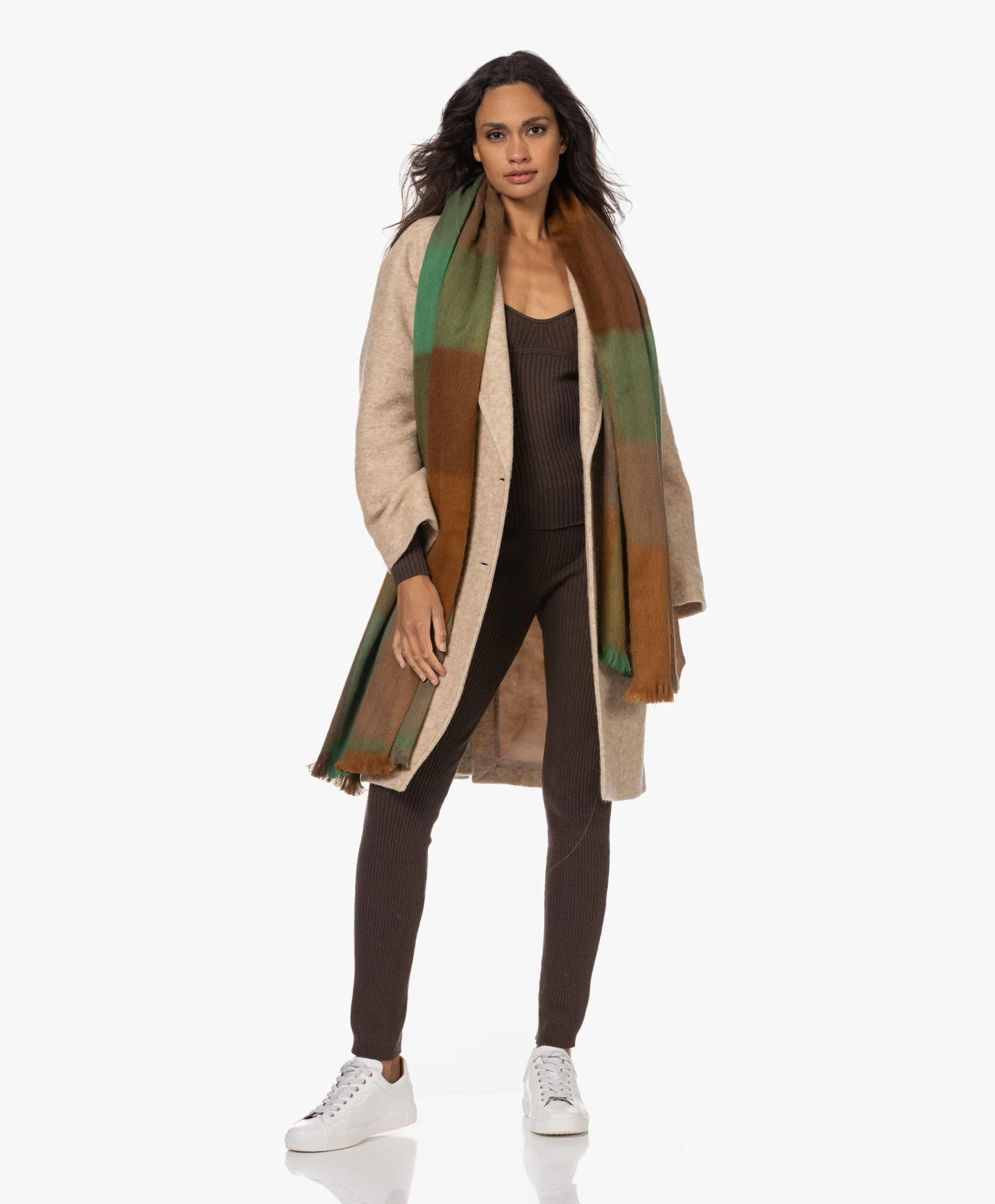 Zachter dan zijde en warmer dan schapenwol – deze dubbelzijdig geweven, geblokte sjaal in groen- en bruintinten van Alpaca Loca is handgemaakt van alpacawol met een natuurlijke glans. De pure, gladde vezel bevat geen lanoline en is daardoor hypoallergeen en van nature water- en vuilafstotend. Voeg stijl en comfort toe aan iedere look!
