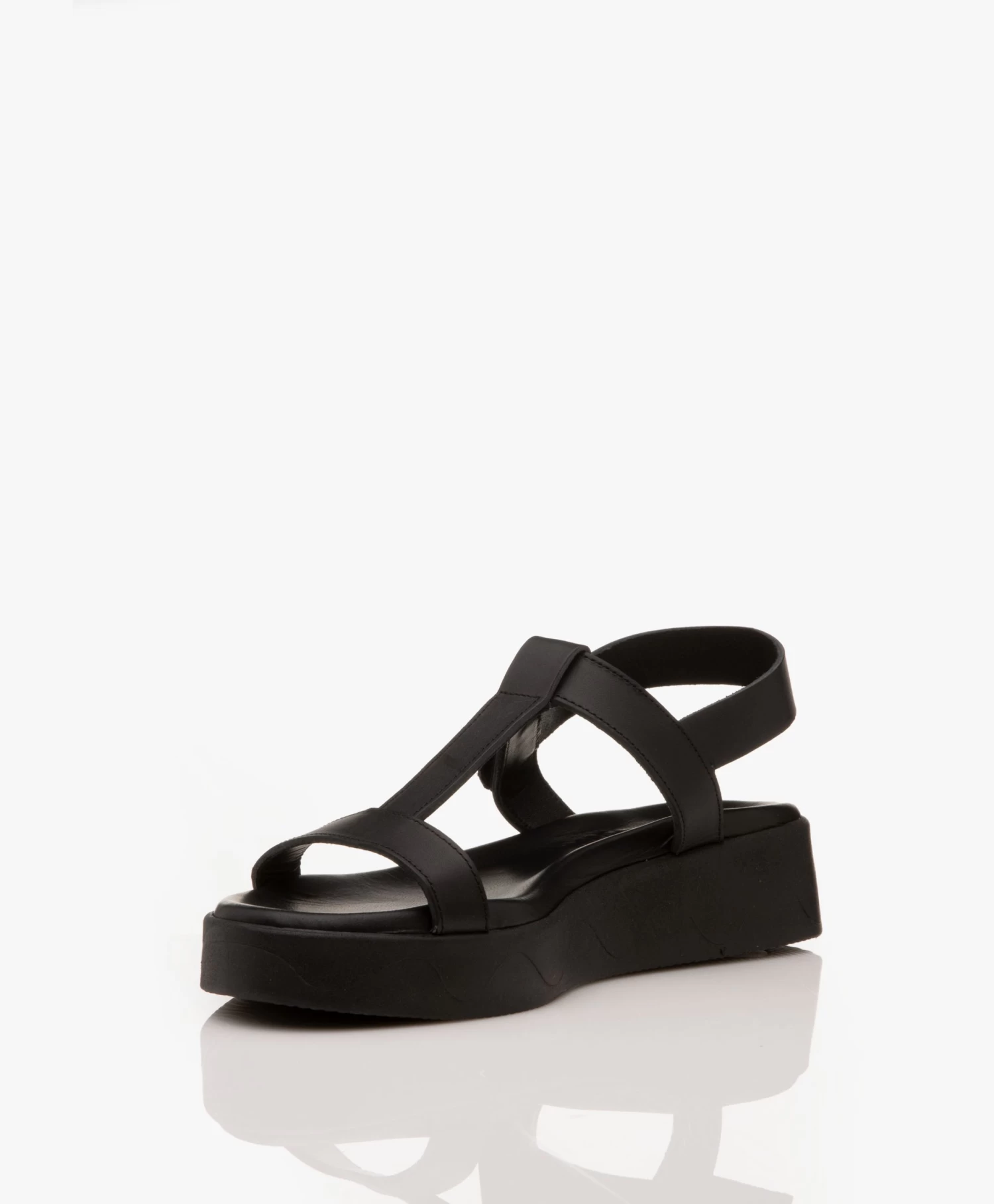 Ancient Greek Myrto Leren Platform Sandalen – Zwart
