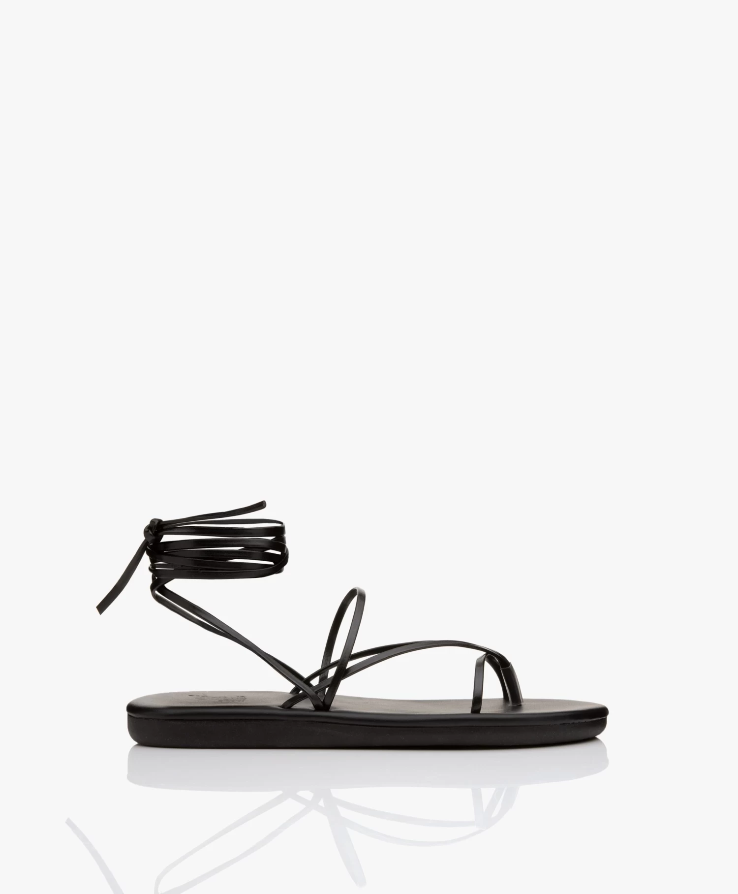 Ancient Greek Sandals String Flip Flop Leren Sandalen – Zwart