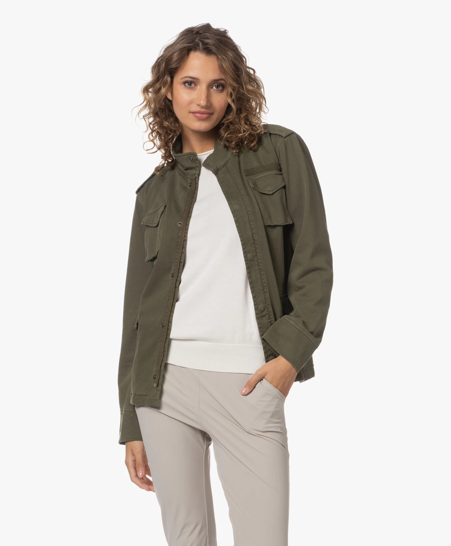 ANINE BING ontwerpt stijlen waar iedere mode liefhebbende vrouw gelukkig van wordt – zo ook dit cargo-geïnspireerde jack in een garment-dyed legergroene tint voor een vintage look & feel. Het rechte design, de stoere steekzakken en het comfortabele stretch-katoenen twill weefsel maken het jack tot een fashionable item voor iedere dag.