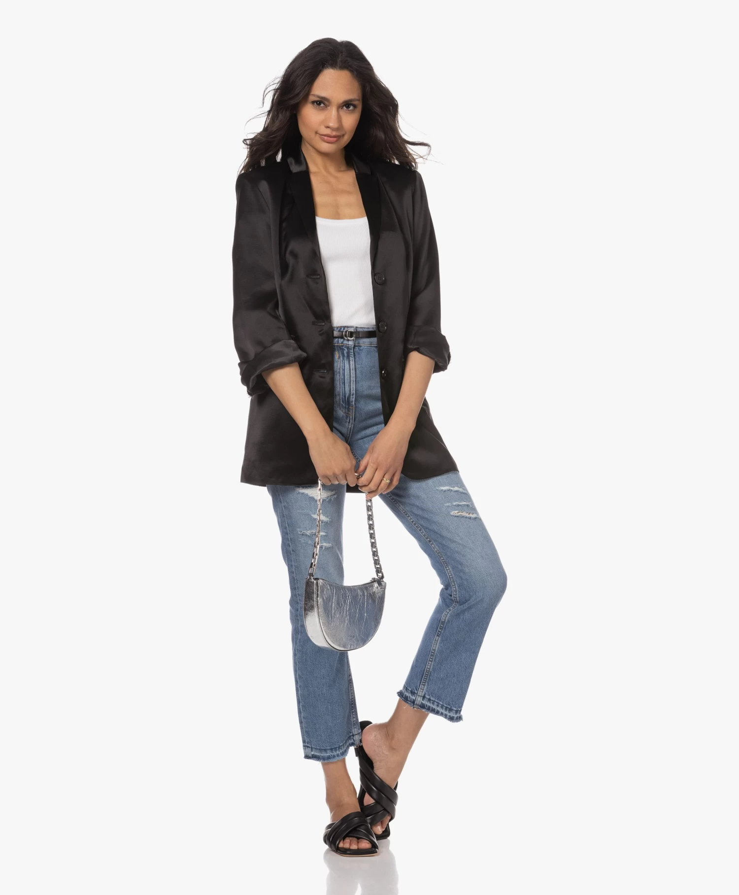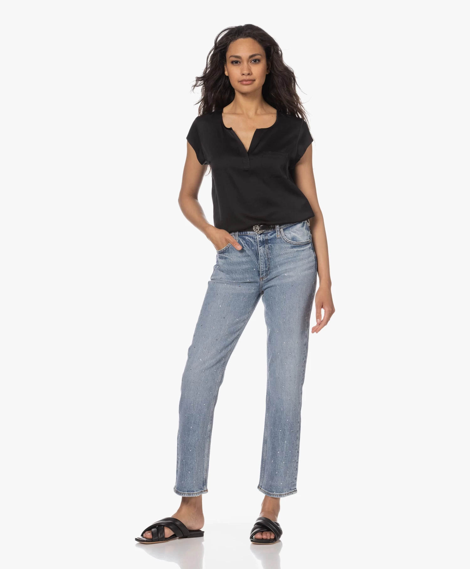 Voor een dosis stijl ga je voor de Eve slippers van ANINE BING in een tijdloos en chic zwart. Ontworpen met een vierkante neus, een gewatteerd voetbed en dubbele, gewatteerde banden over de wreef in een kruislings design waardoor comfort en stijl perfect samenkomen. De slippers zijn vervaardigd van een hoogwaardige, zachte en soepele leerkwaliteit met een subtiele structuur.