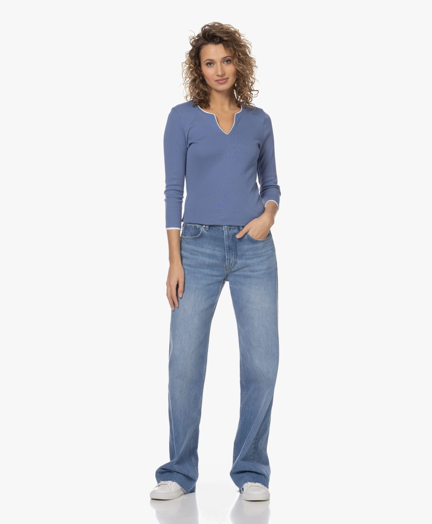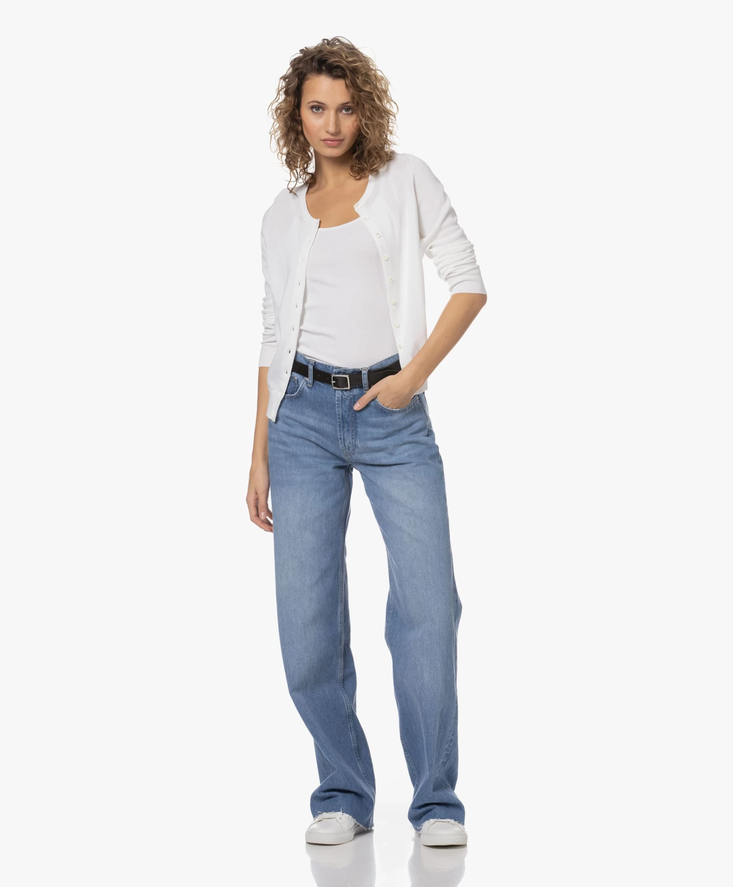 Subtiel teruggrijpend naar de stijl van de 90s maakt ANINE BINGÂ van de middenblauwe Hugh Jeans een moderne musthave met een loose-fit pasvorm. Ontworpen met een middelhoge taille, kaarsrechte wijde pijpen met een raw-cut zoom en spaarzaam toegepaste slijtagedetails. De stevige katoenen denim bestaat voor de helft uit biologisch katoen.