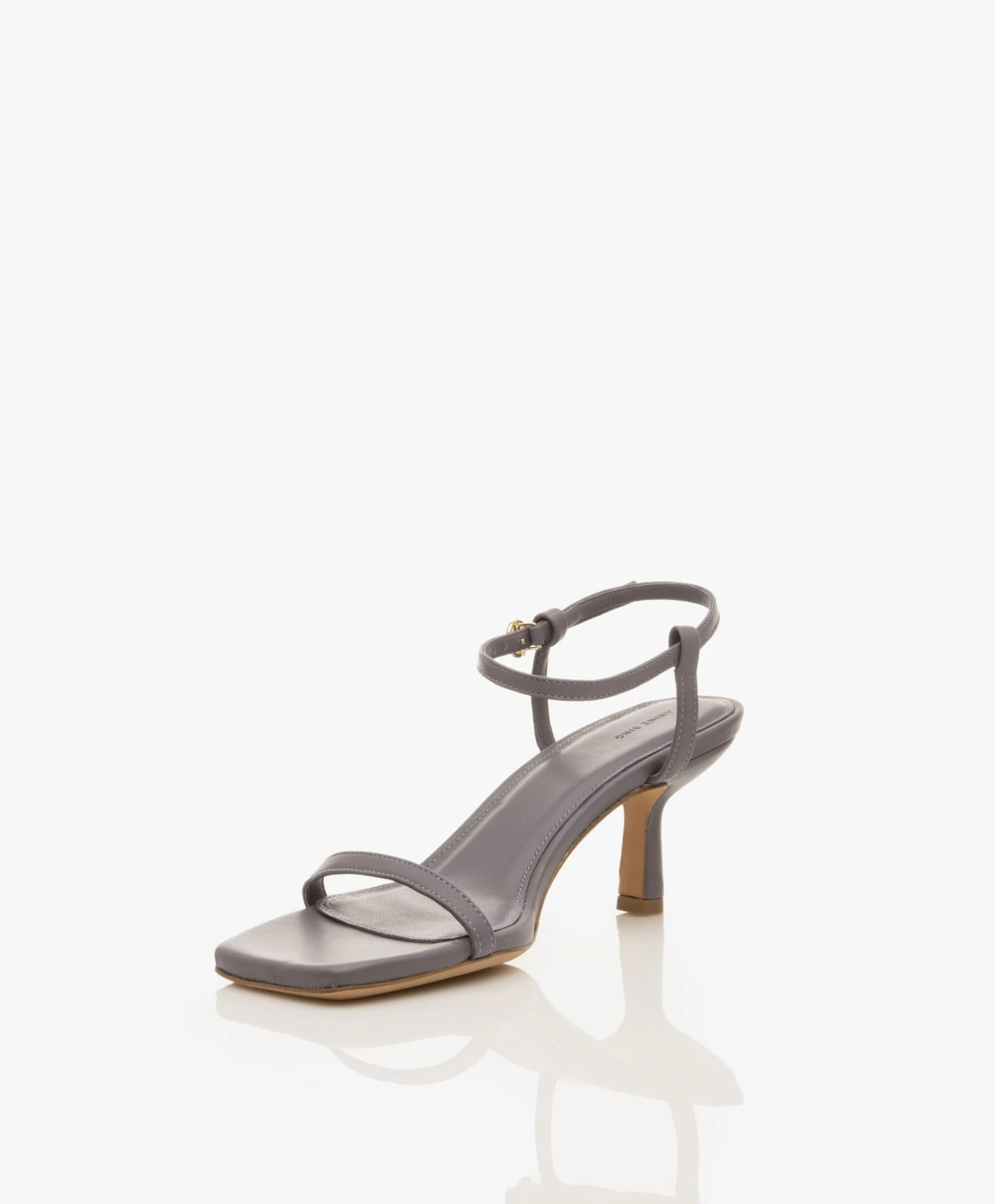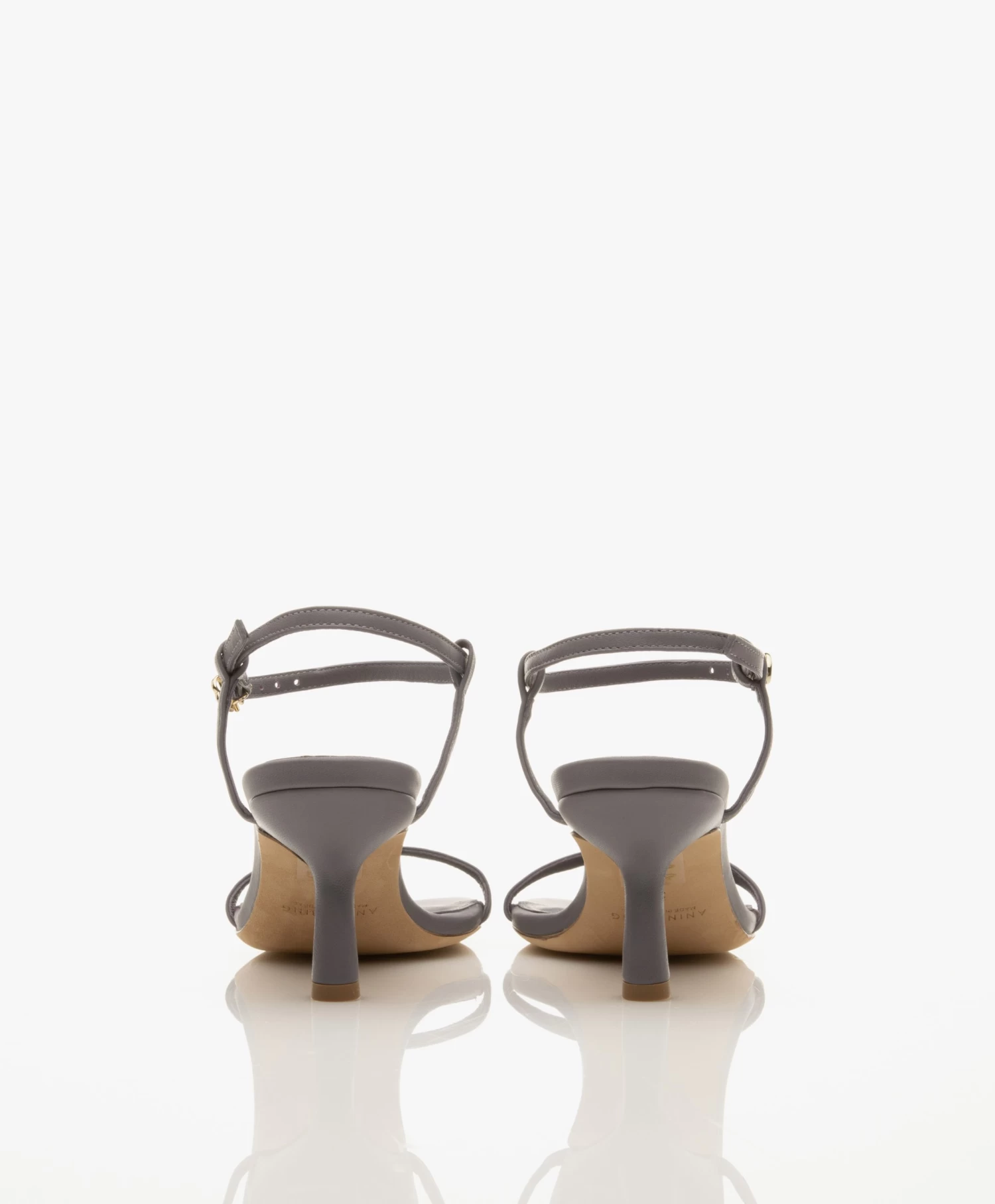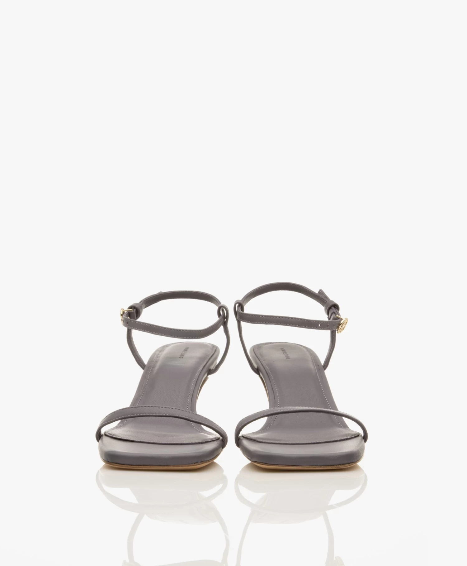 De bandjes van deze strappy pumps van ANINE BING zijn zo elegant smal, dat ze een bescheiden rol innemen in een totale look en daardoor ook veelzijdig zijn. Ze heten niet voor niks Invisible. Gemaakt van eigentijds grijs leer met een paarse ondertoon en ontworpen met een kitten hak en een goudkleurige sluiting in de vorm van het merklogo.
