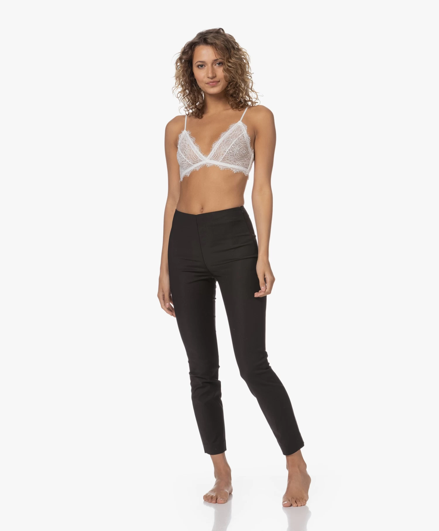 Prachtige kanten BH top van ANINE BING. Deze ivoorwitte top heeft smalle verstelbare schouderbandjes en een verstelbare haak-en-oogsluiting middenachter. Draag deze kanten BH top onder een grof gebreide off-shoulder trui voor een sexy touch – maak compleet met skinny jeans en hoge hakken.