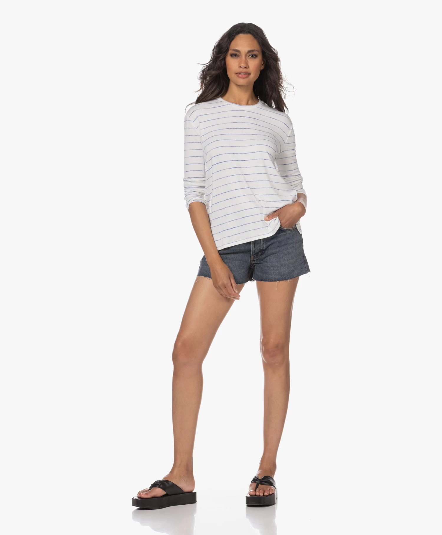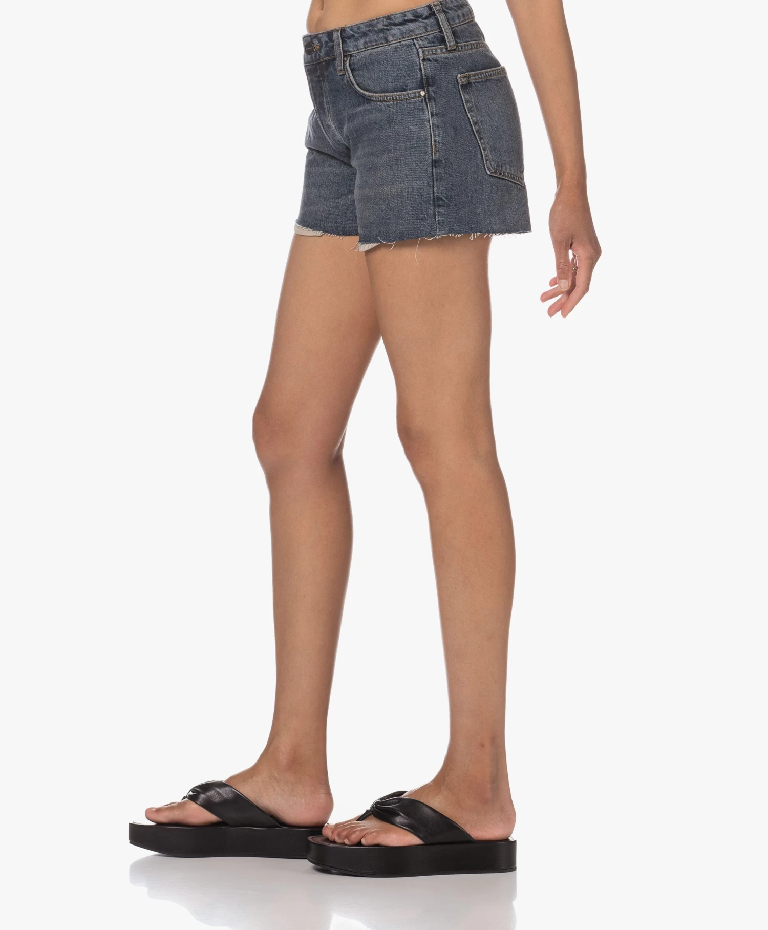 Ga voor een zomerse girl next door look met Anine Bing’s middenblauwe denim Leya short. De 5-pocket stijl met afgeknipte pijpen oogt heerlijk authentiek, net als de doorleefde wassing en de subtiele slijtage-details. Nu alleen nog even het perfecte T-shirt erbij vinden en je zomer kan niet meer stuk.