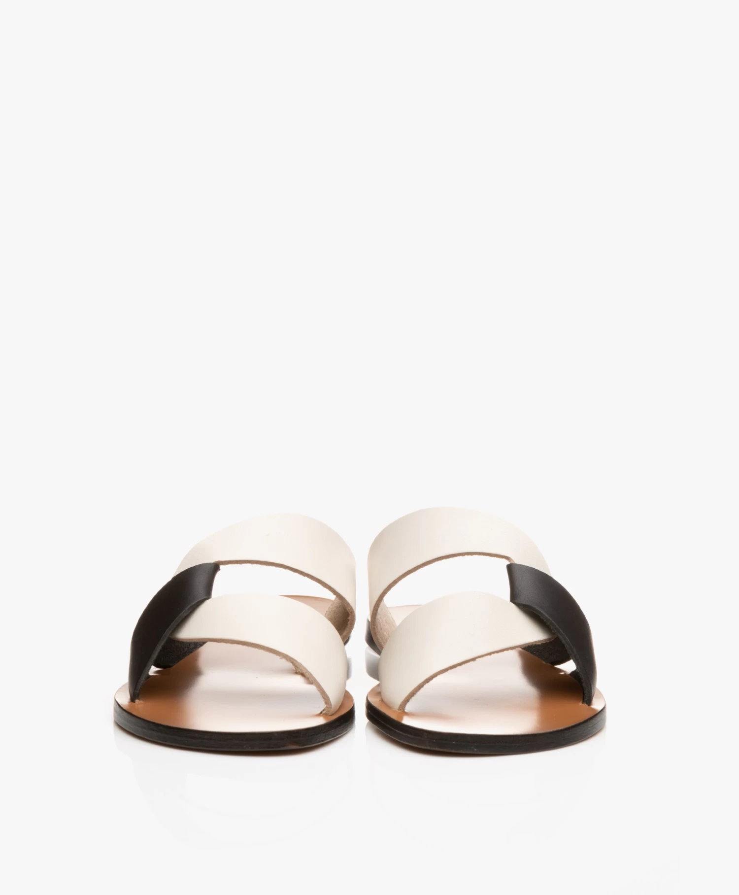 – Lage, gelaagde leren hak, hakhoogte: 1 cm