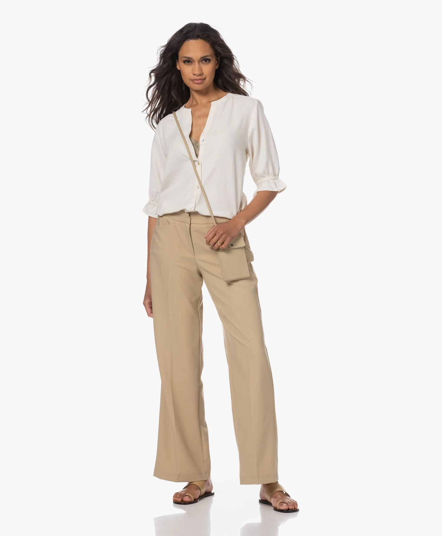 – Lage, gelaagde leren hak, hakhoogte: 1 cm