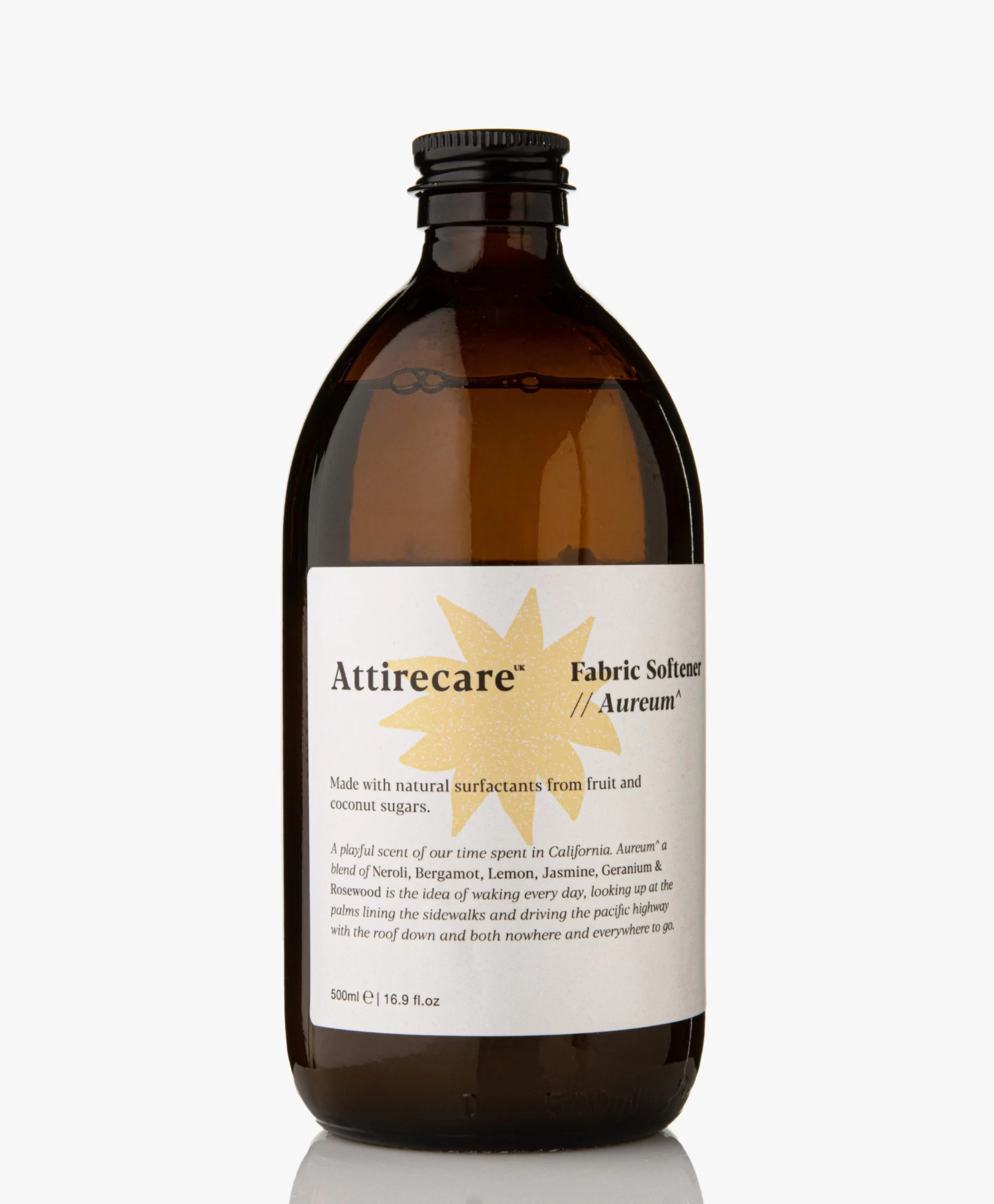 Geef je kleding een extra boost van zachtheid en een heerlijke geur met deze Fabric Softener van Attirecare. Deze wasverzachter komt met de Aureum geur die gevormd wordt door een combinatie van neroli, bergamot, citroen, jasmijn, geranium en sandelhout voor een zoete, bloemige geur. Dit product is ontwikkeld met een biologische en plantaardige formule en komt zonder schadelijke chemicaliën en synthetische geuren. Voor zachte, zichtbaar heldere en fantastisch geurende was.
