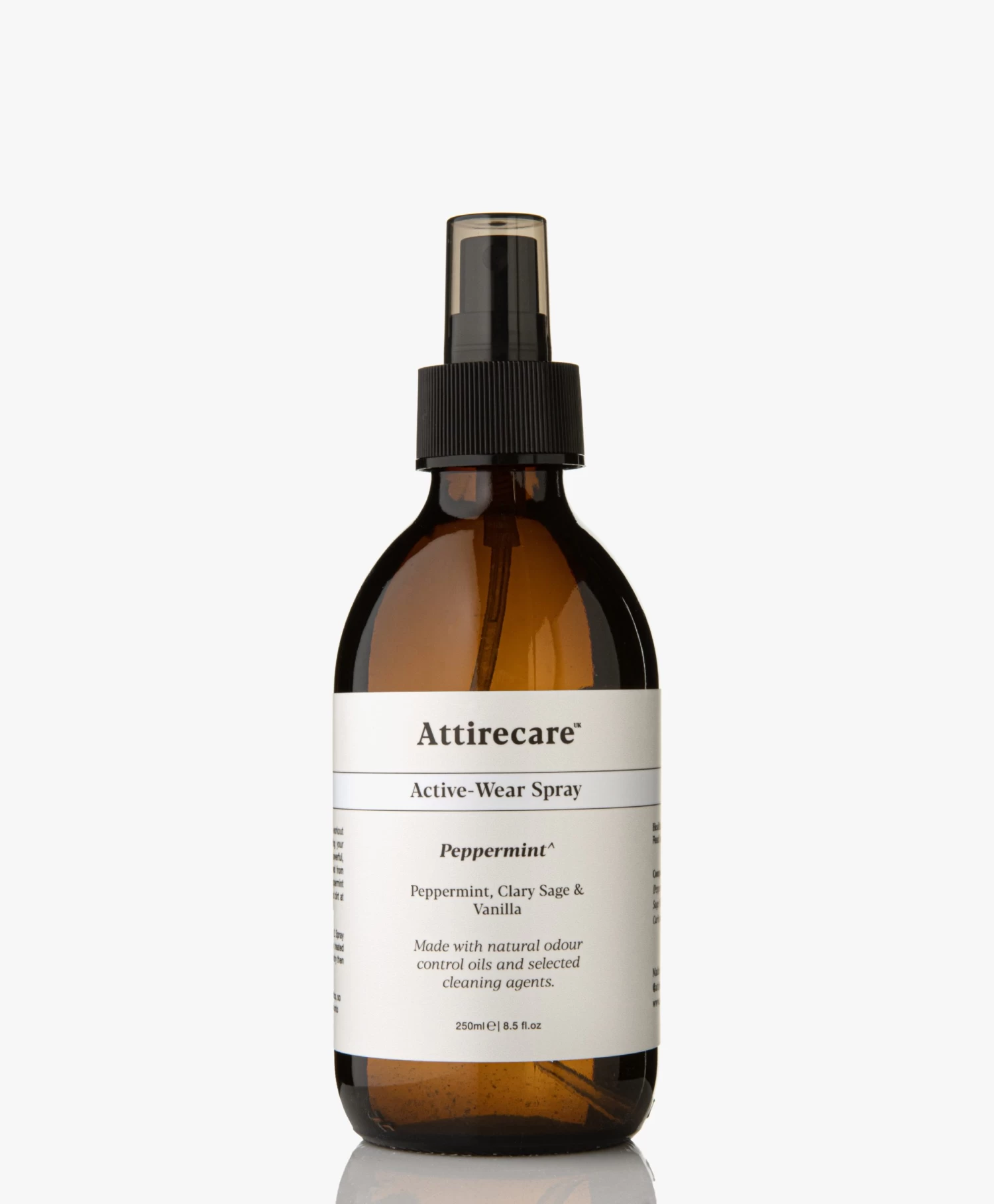 Verwijder nare geurtjes en breng je kledingstukken terug naar hun beste vorm met deze Active-wear Spray van Attirecare die komt met geselecteerde opfris eigenschappen. Deze kledingspray is speciaal gemaakt voor activewear en ontwikkeld met krachtige natuurlijke ingrediënten. De combinatie van pepermunt, salie en vanille voegt de kracht van kruiden toe en een verfrissende geur.