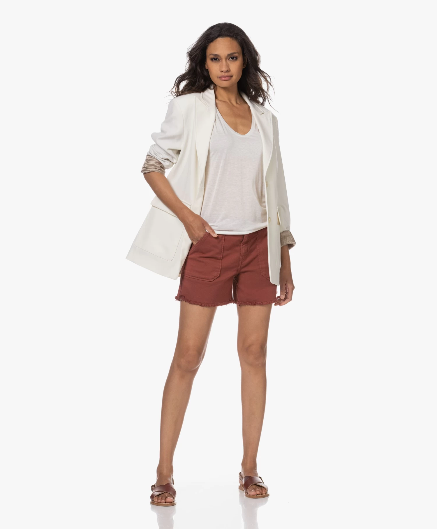De Cselby short van ba&sh biedt eindeloze styling mogelijkheden én comfort. De terracottarode short is gemaakt van een lichtgewicht denim kwaliteit met toegevoegd stretch in een twill weefsel. De grote opgestikte zakken voegen een cargo feel toe terwijl de recht gesneden pijpen bijdragen aan de nonchalante uitstraling.Â
