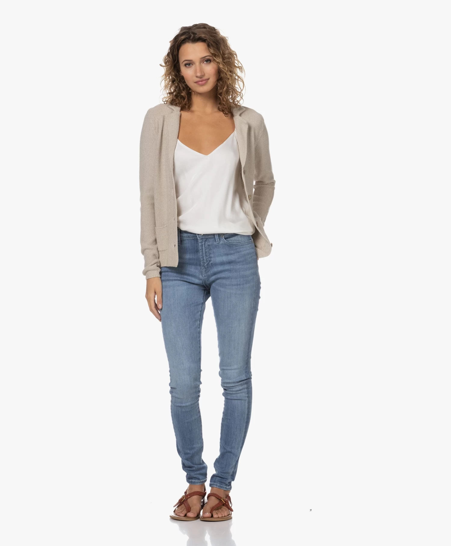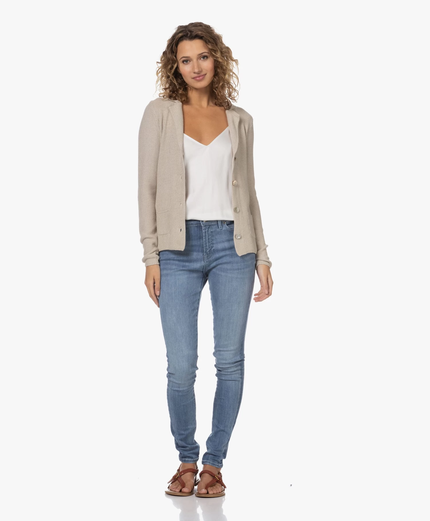 Belluna brengt hun iconische, gebreide Eleven blazervest in een moderne beige tint. Met de karakteristieke getailleerde fit, reverskraag en parelmoer knoopsluiting voor een vrouwelijk voorkomen. Het gerstekorrel breisel is gemaakt van een middelzware katoenmix die comfortabel aanvoelt op de huid.