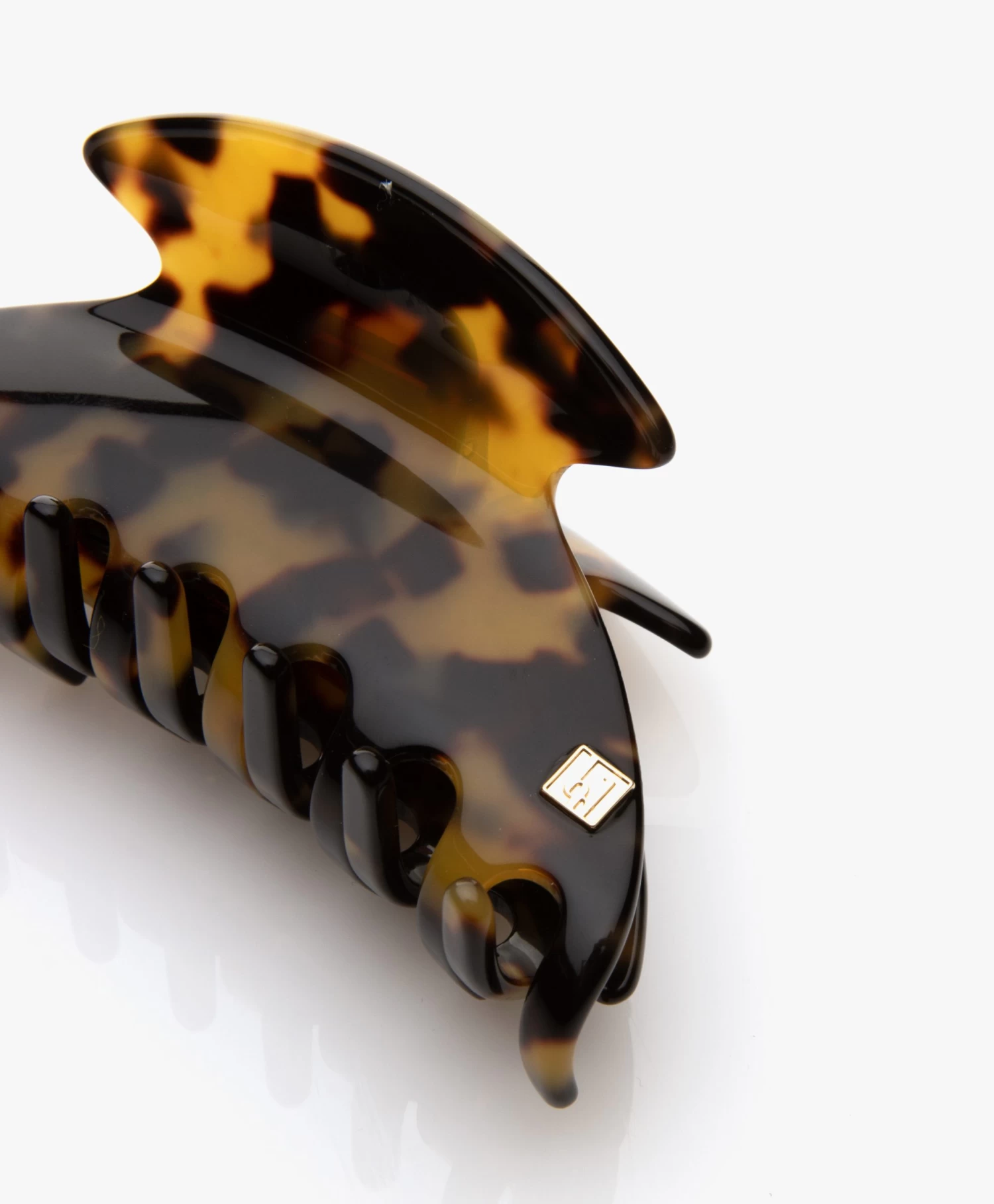 Deze handgemaakte Bon Dep haarklem komt in een tortoise ontwerp in camel en bruin en geeft een klassieke touch aan iedere hairdo. Gemaakt van een stevige kwaliteit met optimale grip in het haar, zonder te beschadigen. Praktisch en stijlvol, precies zoals we van het merk gewend zijn.