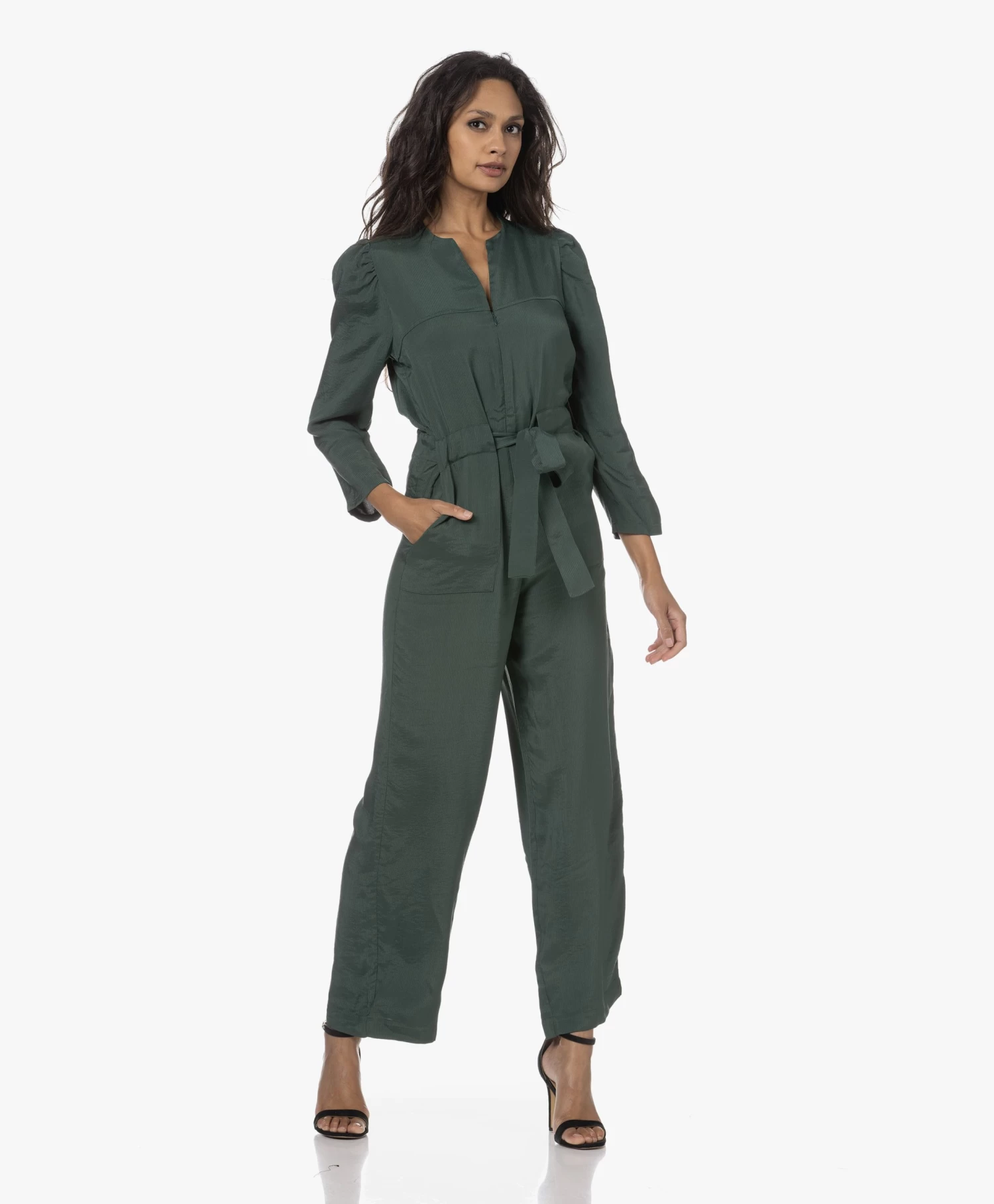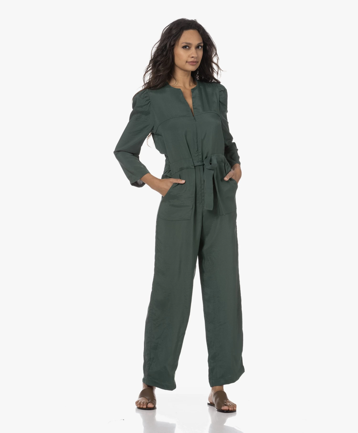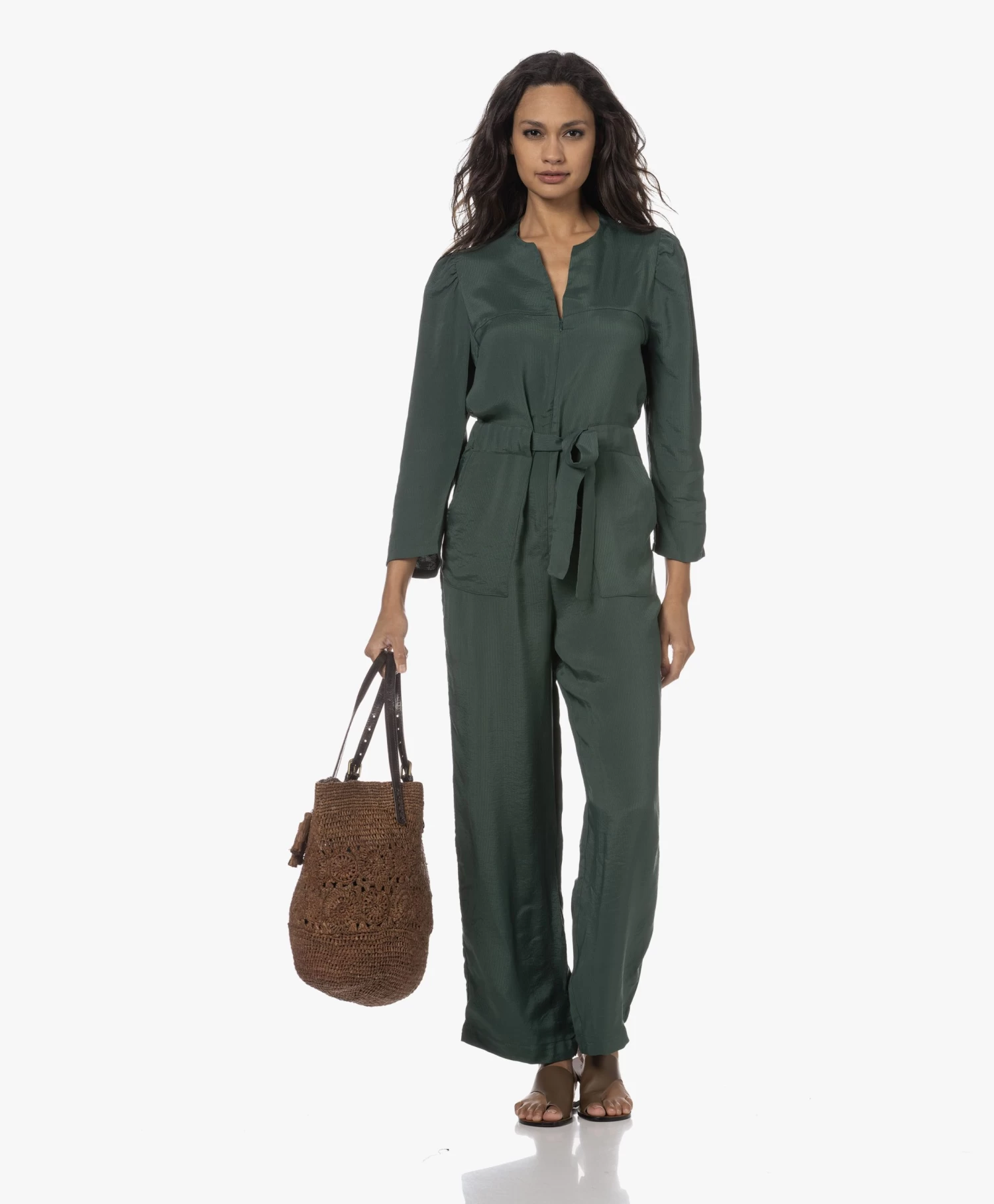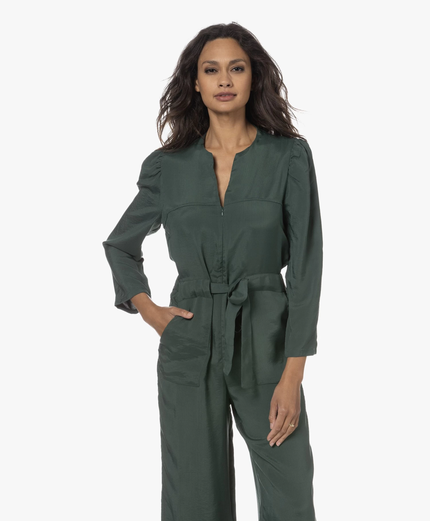 De combinatie van diepgroen seersucker-satijn en een vintage-geïnspireerde silhouet heeft ons geraakt. by-bar’s Vida jumpsuit zet de musthave-factor in voor wie het aandurft. Dat kan zomaar iedereen zijn: de relaxte pasvorm met ceintuur staat vrijwel elk figuurtype.