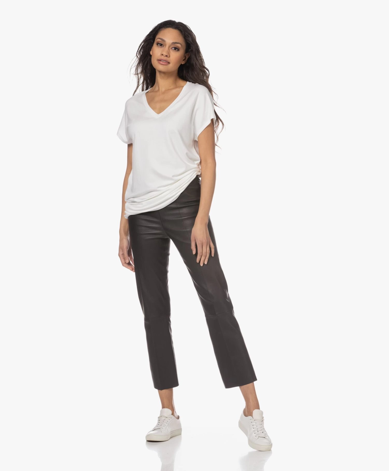 Een garderobe investering waar je nooit spijt van zult krijgen: de leren broek. De slim-fit Florentina broek van By Malene Birger komt met rechte pijpen en een iets cropped lengte voor een eigentijds voorkomen. De zwarte broek is gemaakt van zachte en soepel lamsleer met een stretch-katoenen binnenlaag voor ultieme bewegingsvrijheid en een goed vormherstellend vermogen.