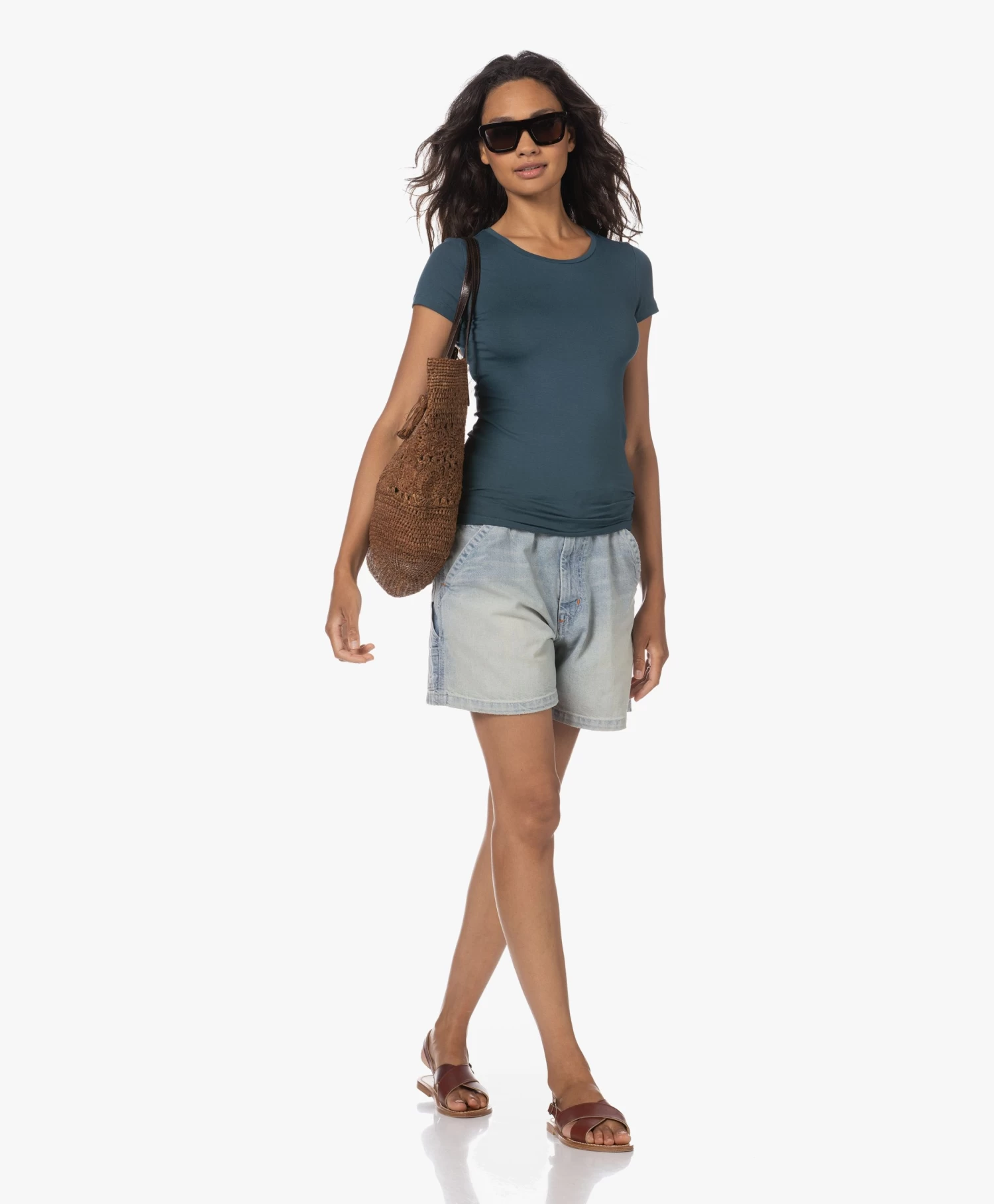 Vooruitstrevende monturen domineren het zonnebrillenseizoen, waarbij By Malene Birger’s Mayshi de minimalistisch-luxe stijl van het Deense merk vertegenwoordigt. Deze tortoise-bruine zonnebril heeft een trapeziummontuur met afgeronde hoeken en donkergroen getint glas. De pootjes zijn voorzien van een goudkleurig designerlogo.