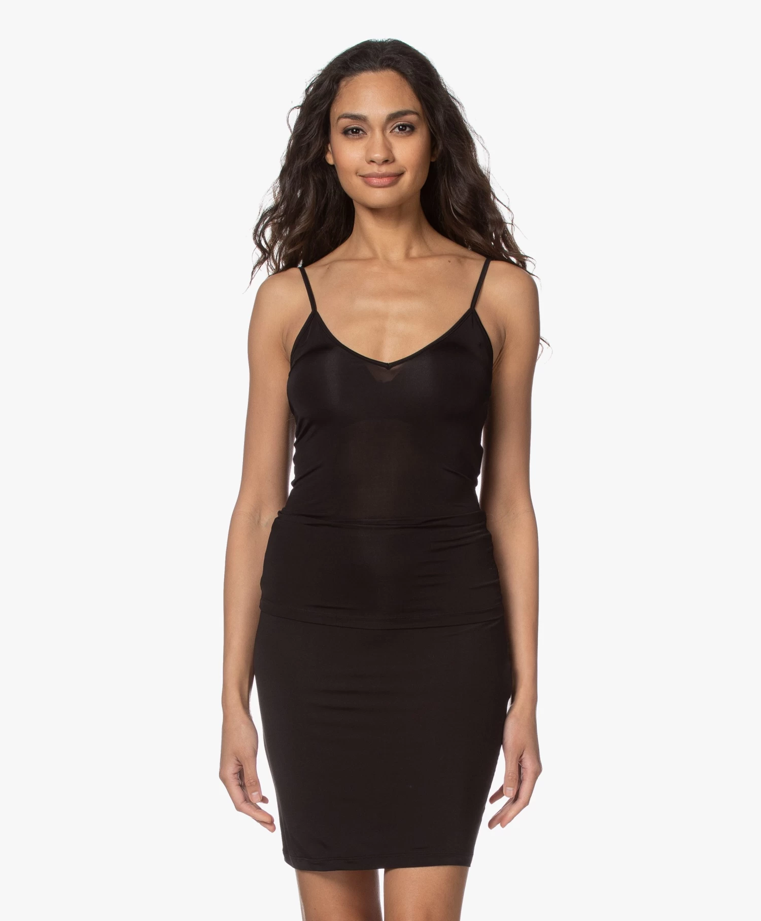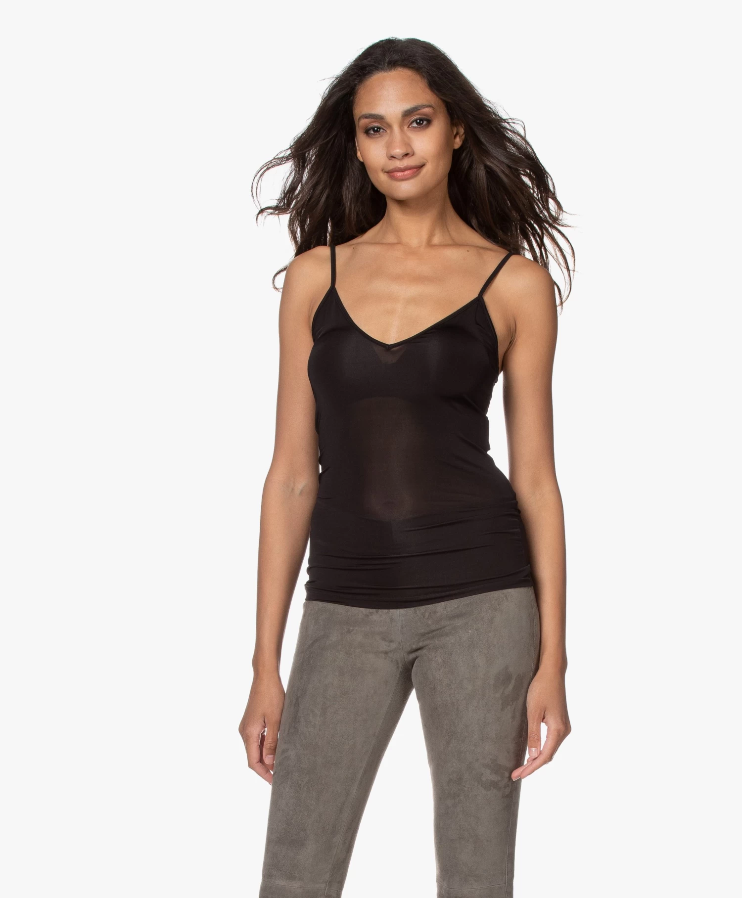 De gladde en soepele microvezel jersey van deze By Malene Birger Ziona top creëert een vrouwelijke en verfijnde basis voor iedere dag. De zwarte spaghettitop heeft verstelbare schouderbandjes en een diepe V-hals. De toevoeging van extra stretch zorgt niet alleen voor een comfortabele aangesloten pasvorm, maar ook voor een perfect vormbehoud.