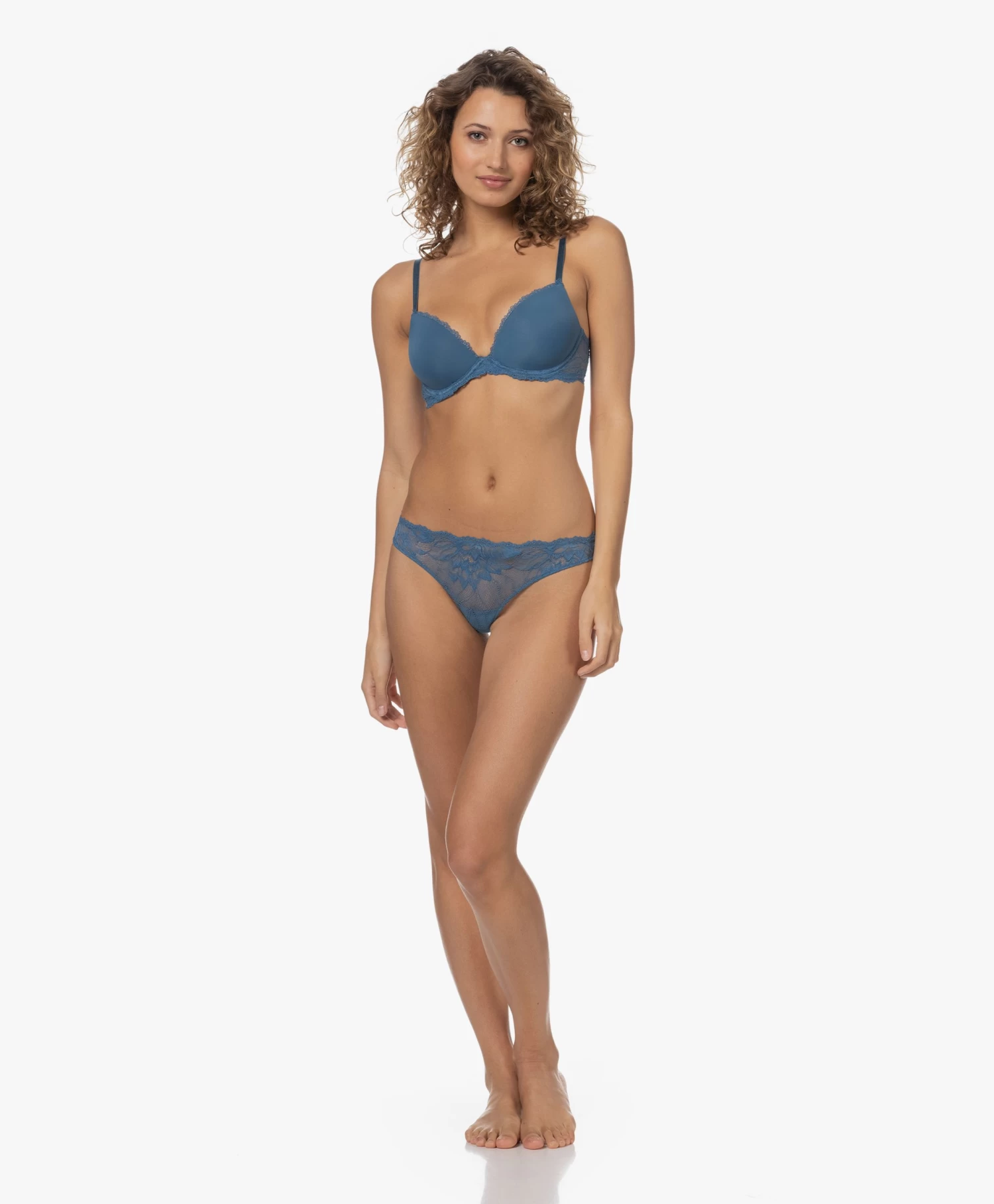We hadden geen betere naam kunnen bedenken voor de Seductive Comfort lijn waar deze Calvin Klein Demi Lift BH toe behoort. Waar de subtiele lift, de middenblauwe kleur en het geschulpte kant het verleidelijke aspect verzorgen, bieden de gewatteerde (gladde) cups en de elastische verstelbare schouderbandjes – die je zowel recht als gekruist kunt dragen – al het comfort dat je nodig hebt.
