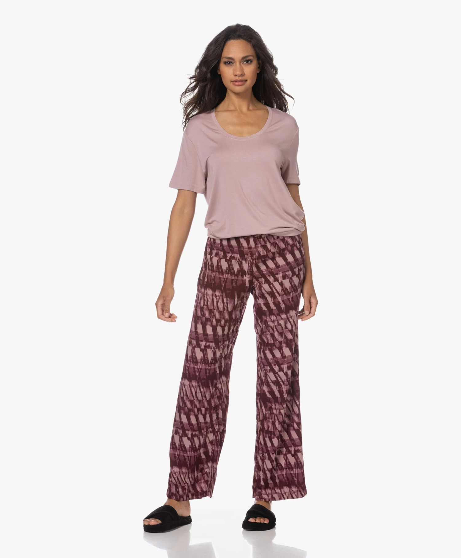 Niets zo stijlvol als een grafische print in donkerrood en oudroze, óók om in te slapen. Calvin Klein brengt deze pyjamabroek in een zachte en lichtgewicht geweven viscose kwaliteit. De rechte, losvallende pijpen en de elastische inzet bij de taille aan de achterkant garanderen optimaal slaap- (en lounge!) comfort.