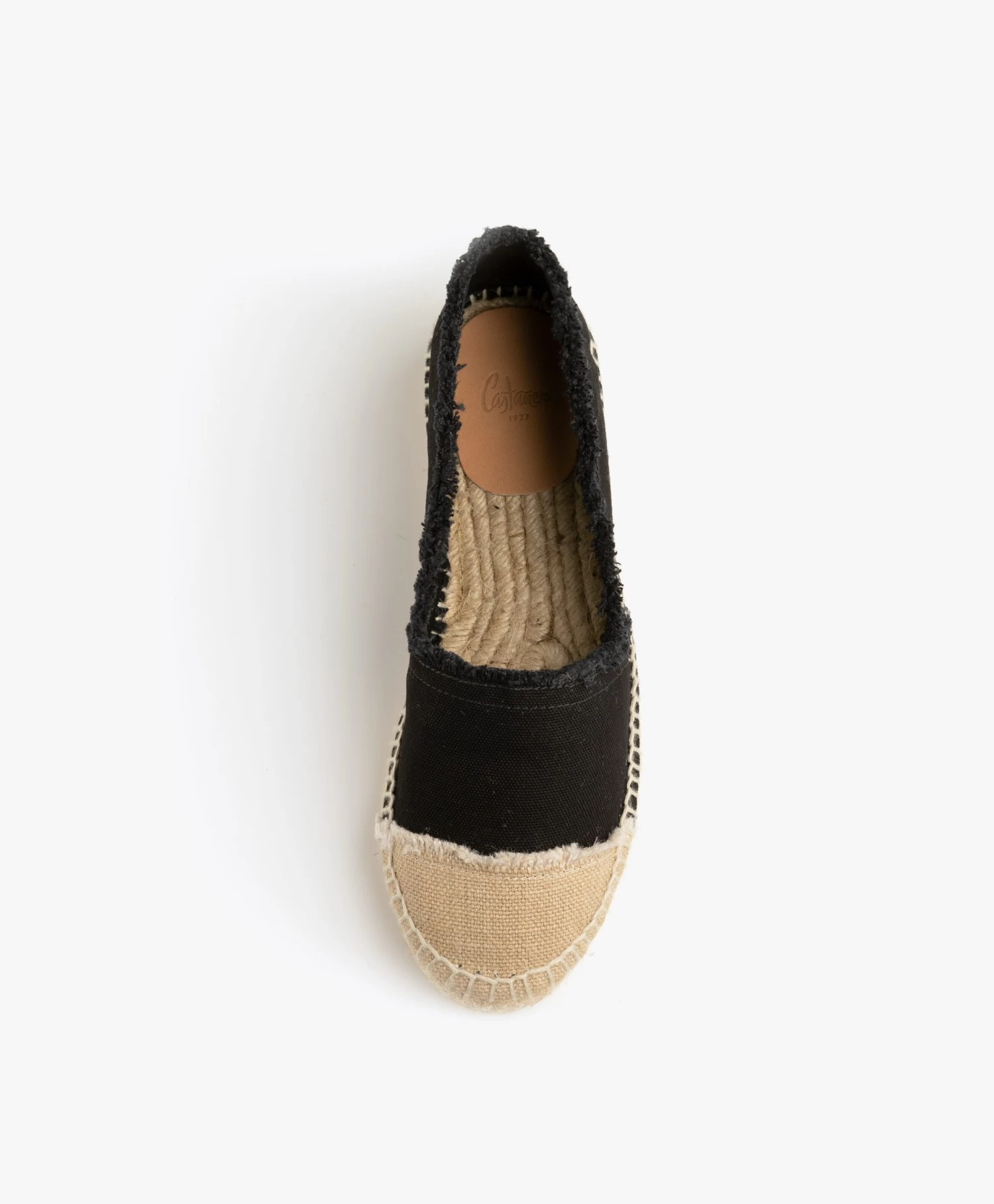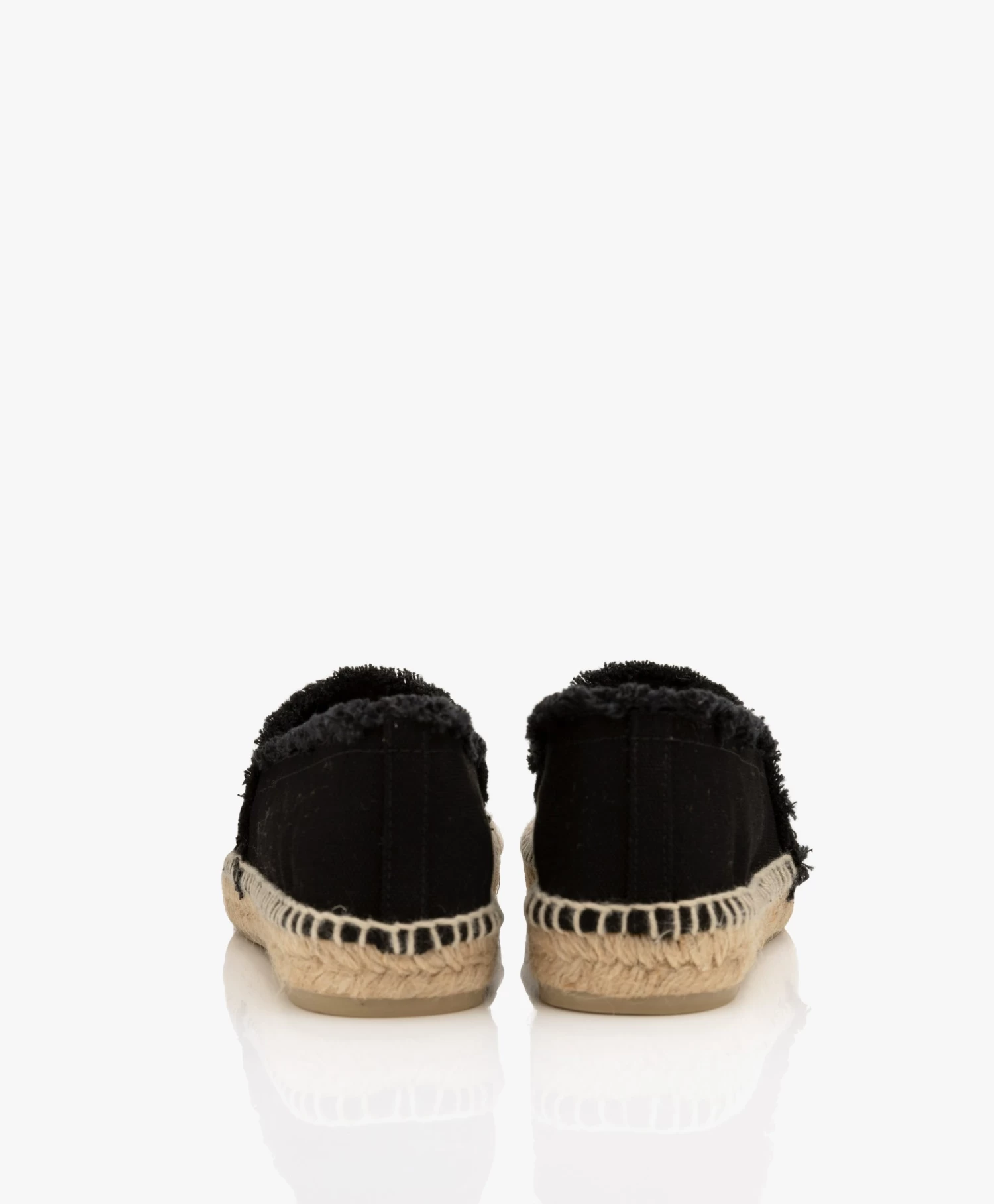 Castaner pakt de klassieke espadrille en doet er een schepje bohemien stijl bovenop. Deze zwarte, katoenen instappers hebben een beige jute inzet bij de neus voor een eigentijds kleurcontrast en zijn afgewerkt met franjeranden voor een speels effect. Comfortabel om de hele dag te dragen op zonovergoten dagen.