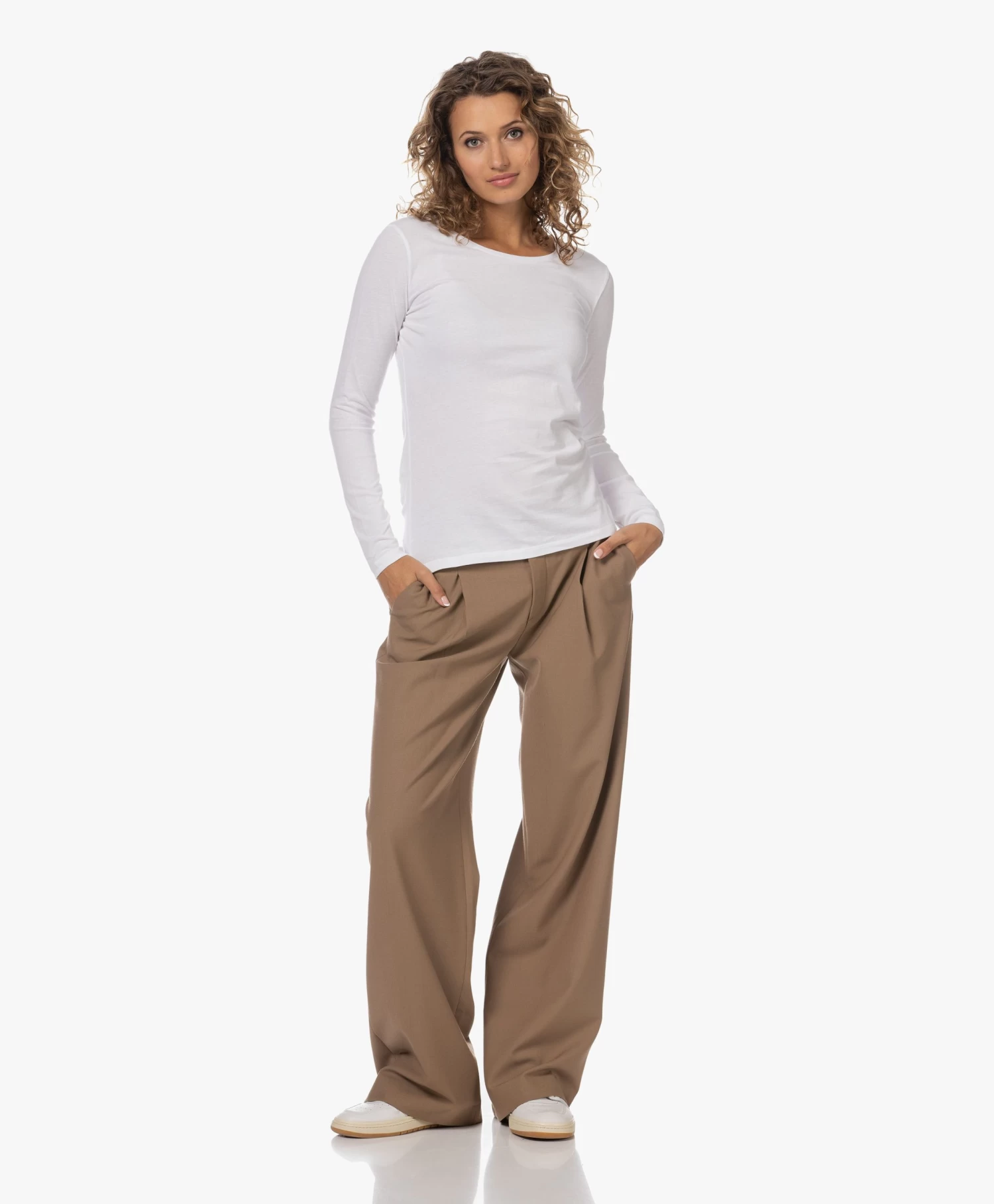 Closed’s middenbruine bandplooibroek Brooks is een eigentijdse klassieker die de perfecte basis vormt voor legio looks. De soepele scheerwolmix geeft de rechte wijde pijpen een beweeglijke valling. Ontworpen met een relaxte pasvorm voor optimaal comfort.