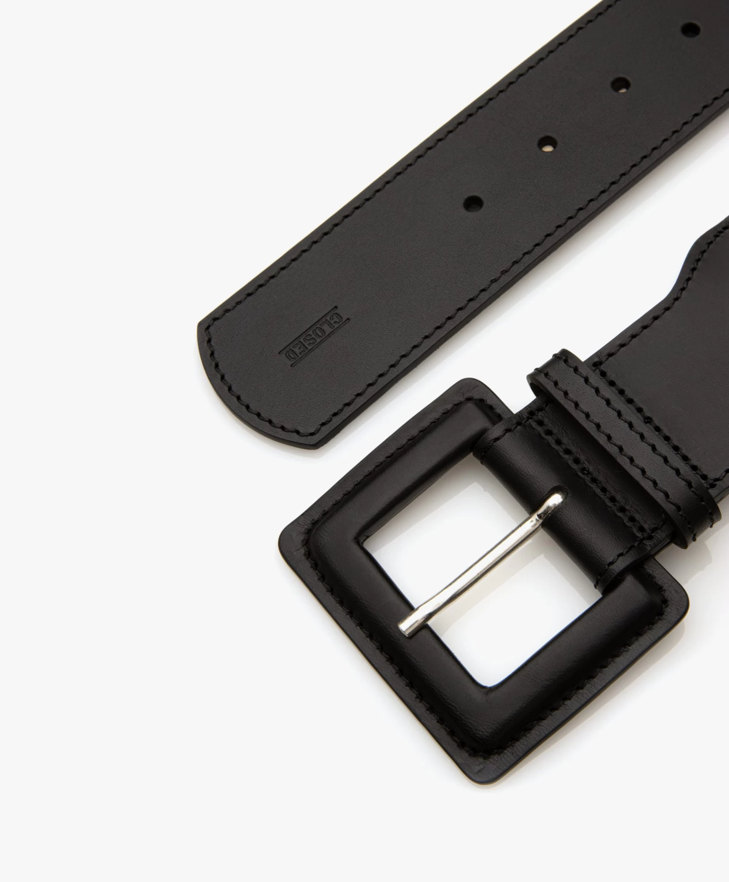 – Vierkante, met leer beklede gesp