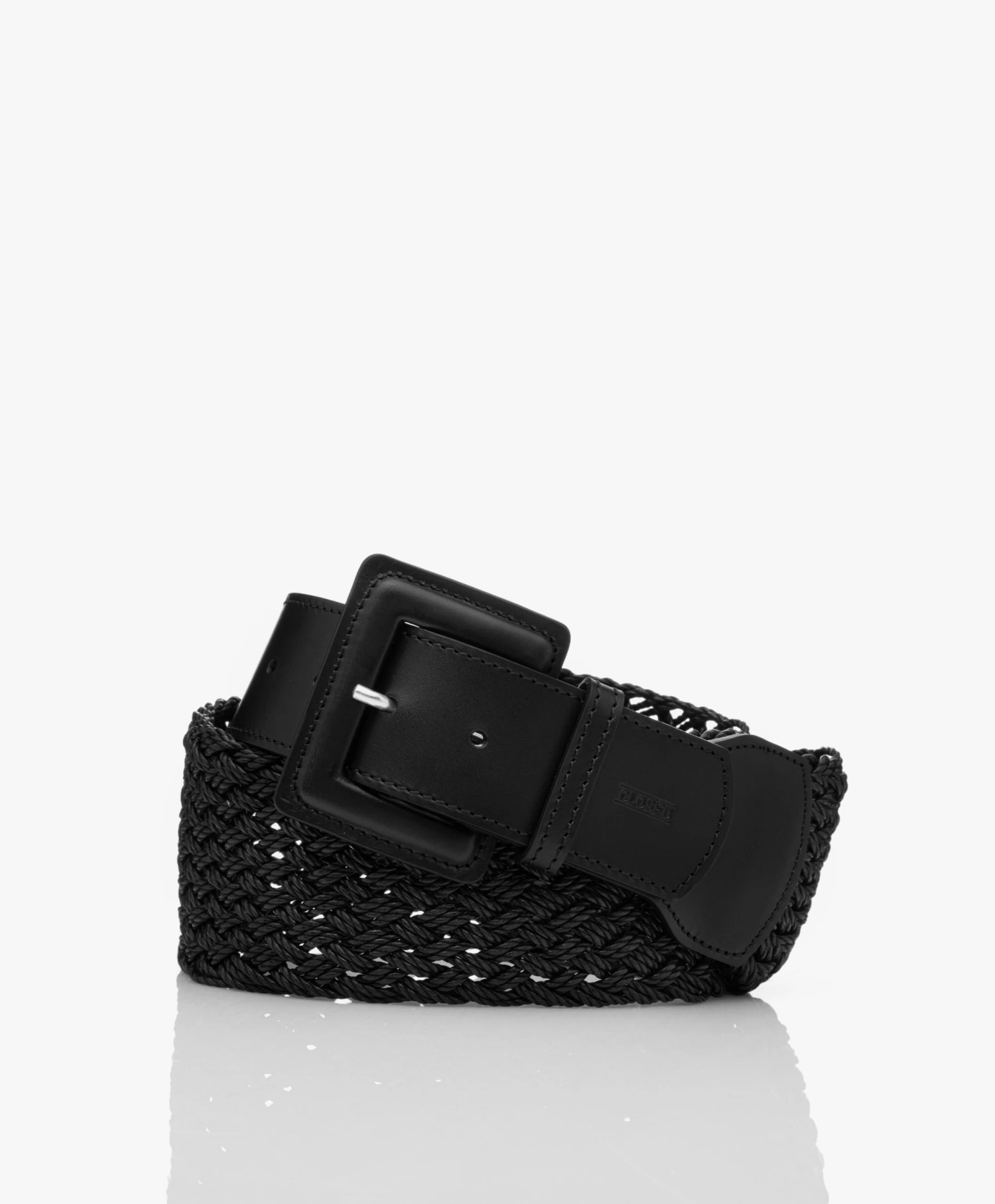 Geef je jurk, blouse, vest of jas een fraai accent met Closed’s brede riem van gevlochten katoenkoord. De sluiting van stevig, glad leer is doorgestikt met dik garen. Uitgevoerd in zwart.