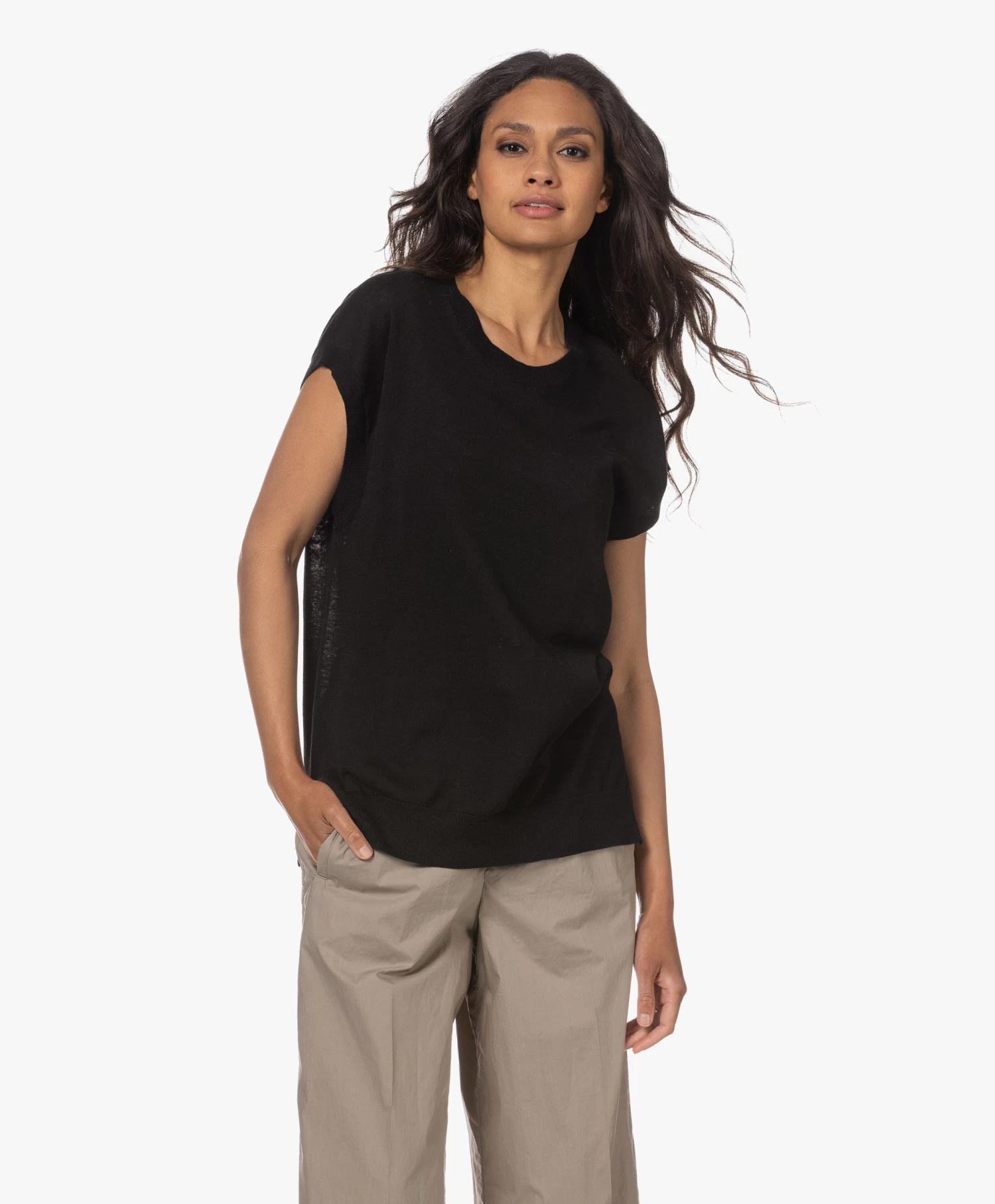 Fijngebreide knitwear is een stijlvol alternatief voor T-shirts. Closed’s zwarte top met overhangende schouders is extrafijn gebreid van high-twist crêpegaren in een blend van linnen en katoen. Ontworpen in Closed’s kenmerkende relaxte stijl met een ruimvallende pasvorm en verlaagde schouders.