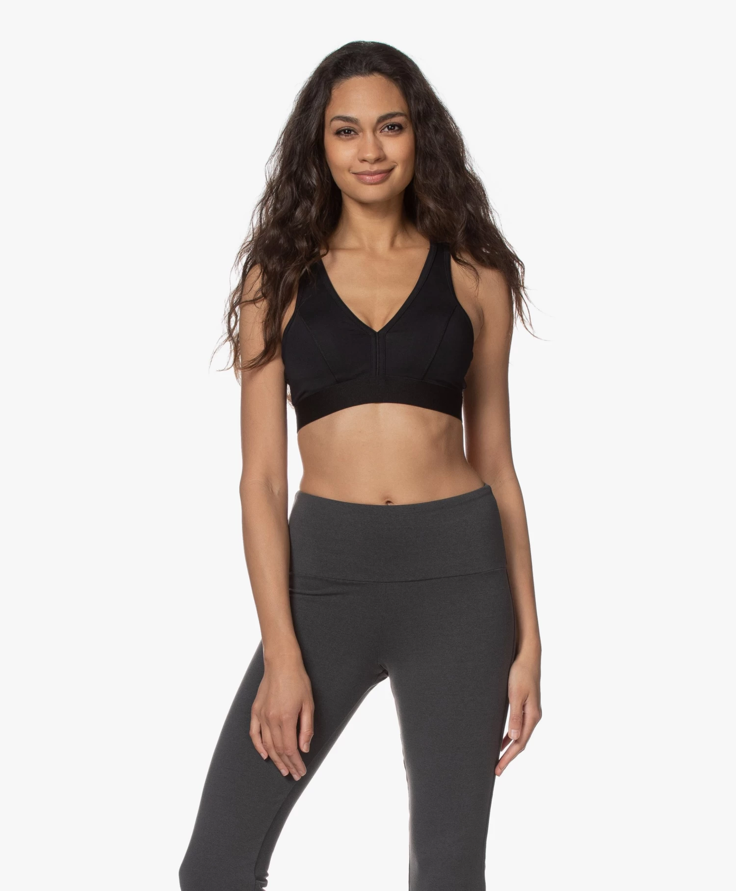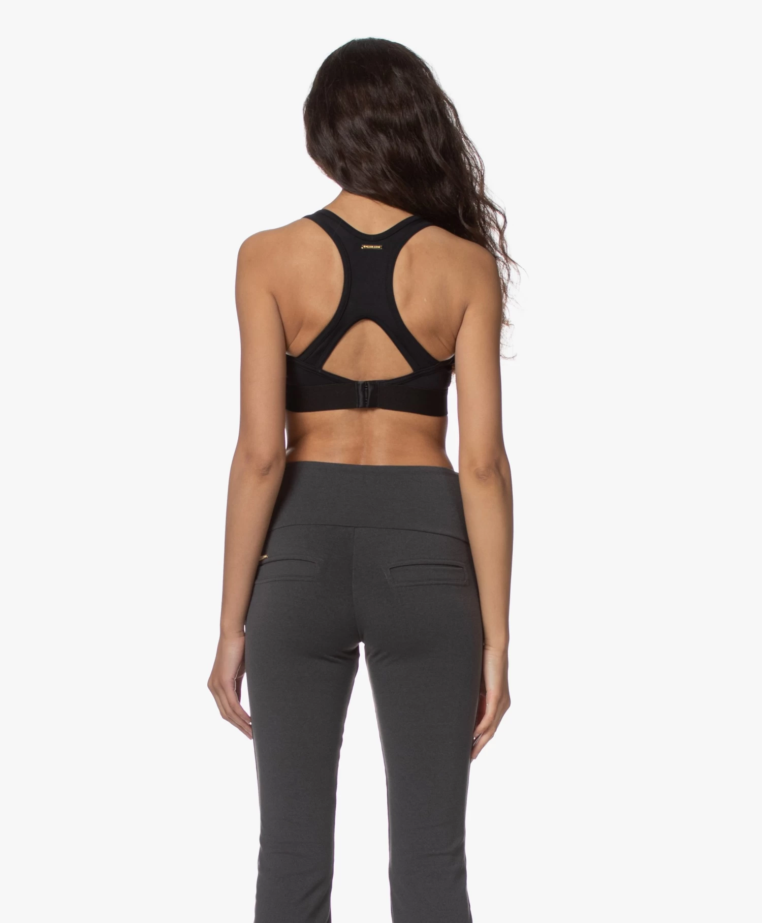 Deblon Sports weet wat vrouwen verlangen van hun sportkleding. Niet alleen een hoog prestatielevel maar ook een stijlvolle look. De zwarte BH top Charly voldoet met zijn cleane, moderne vormgeving aan dat eisenlijstje. De sport-BH is gemaakt van een stevige tech kwaliteit, is ontworpen met een sportief racerback design en komt met verwijderbare BH-pads om zelf de gradatie van steun de bepalen.