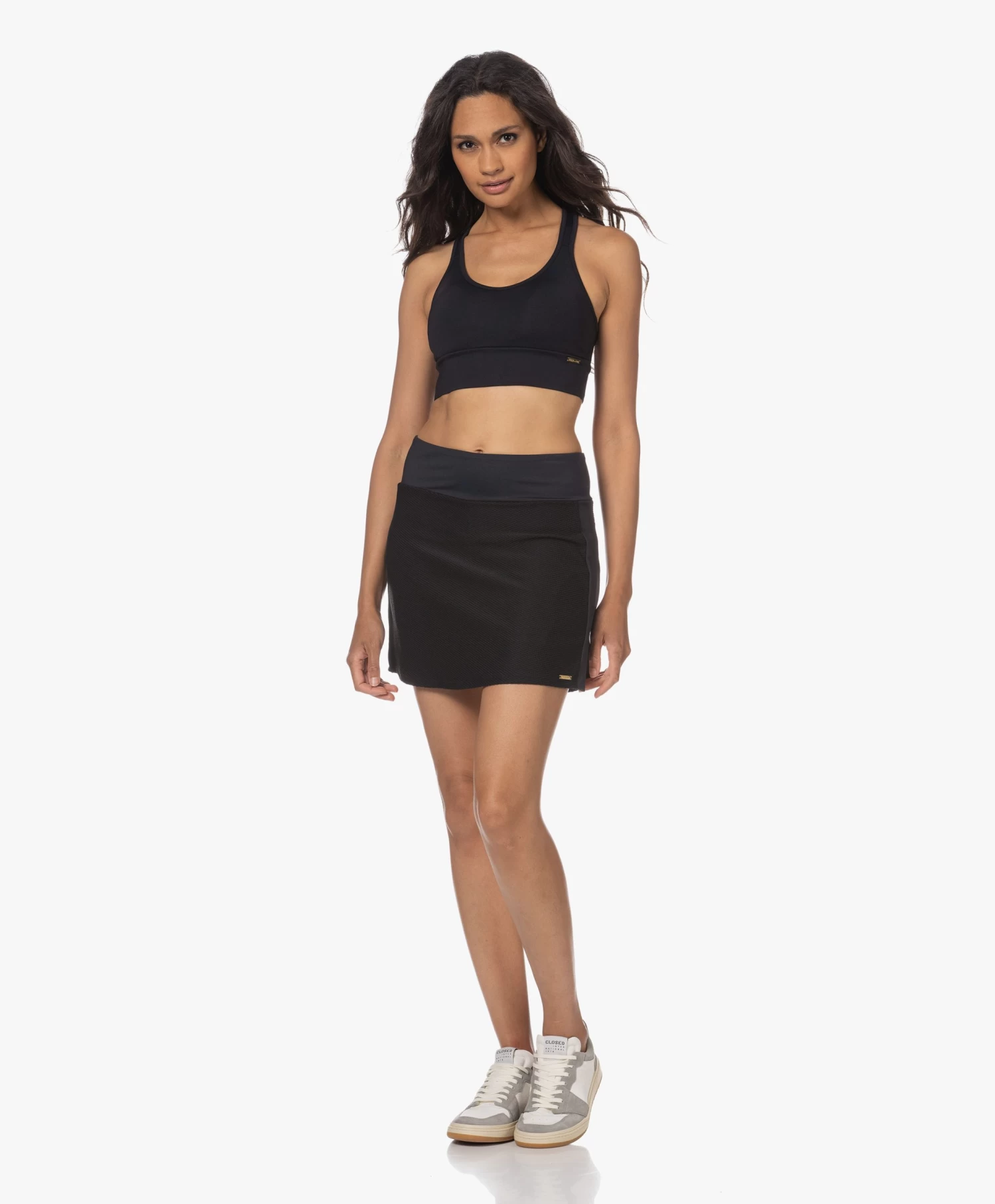 Voor extra support tijdens je workout, trek je BH top Zoe aan. Hiermee bewijst Deblon Sports dat zij éxact weten wat vrouwen verlangen van hun sportkleding. Want deze zwarte BH top is gemaakt van een stevige tech kwaliteit voor voldoende support, is ontworpen met een sportief racerback design met een goudkleurige ring en komt met verwijderbare BH-pads om zelf de gradatie van steun te bepalen. Wat wil je nog meer?