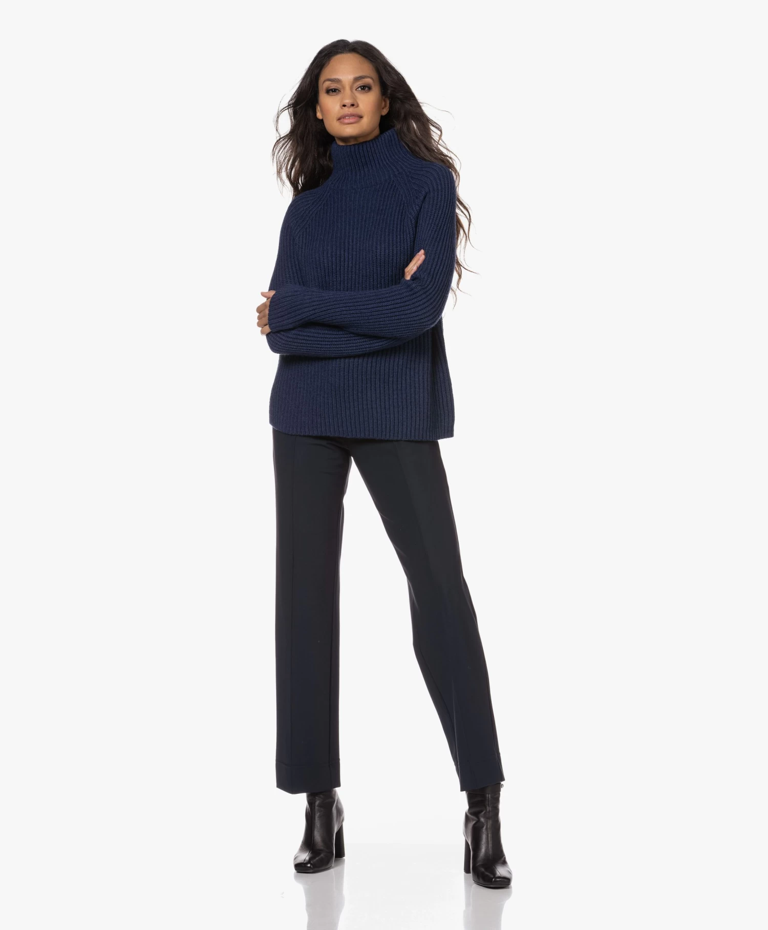 Zacht, warm en veelzijdig: trui Arwen van Drykorn is je nieuwe favoriet op koude dagen. De navy coltrui met laidback pasvorm is gemaakt van een grof ribbreisel van zachte alpacamix garens. De dubbellaagse, iets afstaande colkraag is de eyecatching factor in dit design.Â