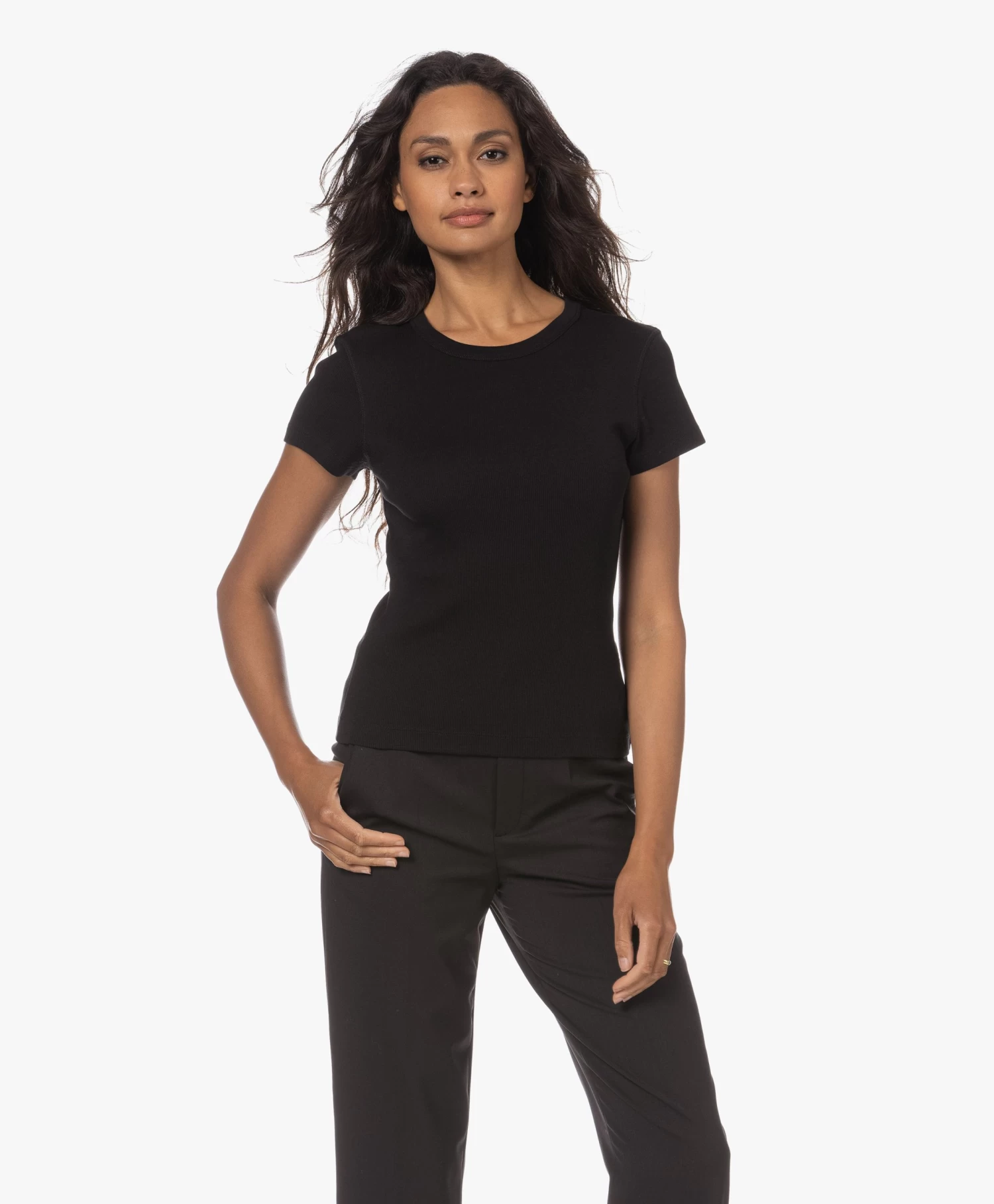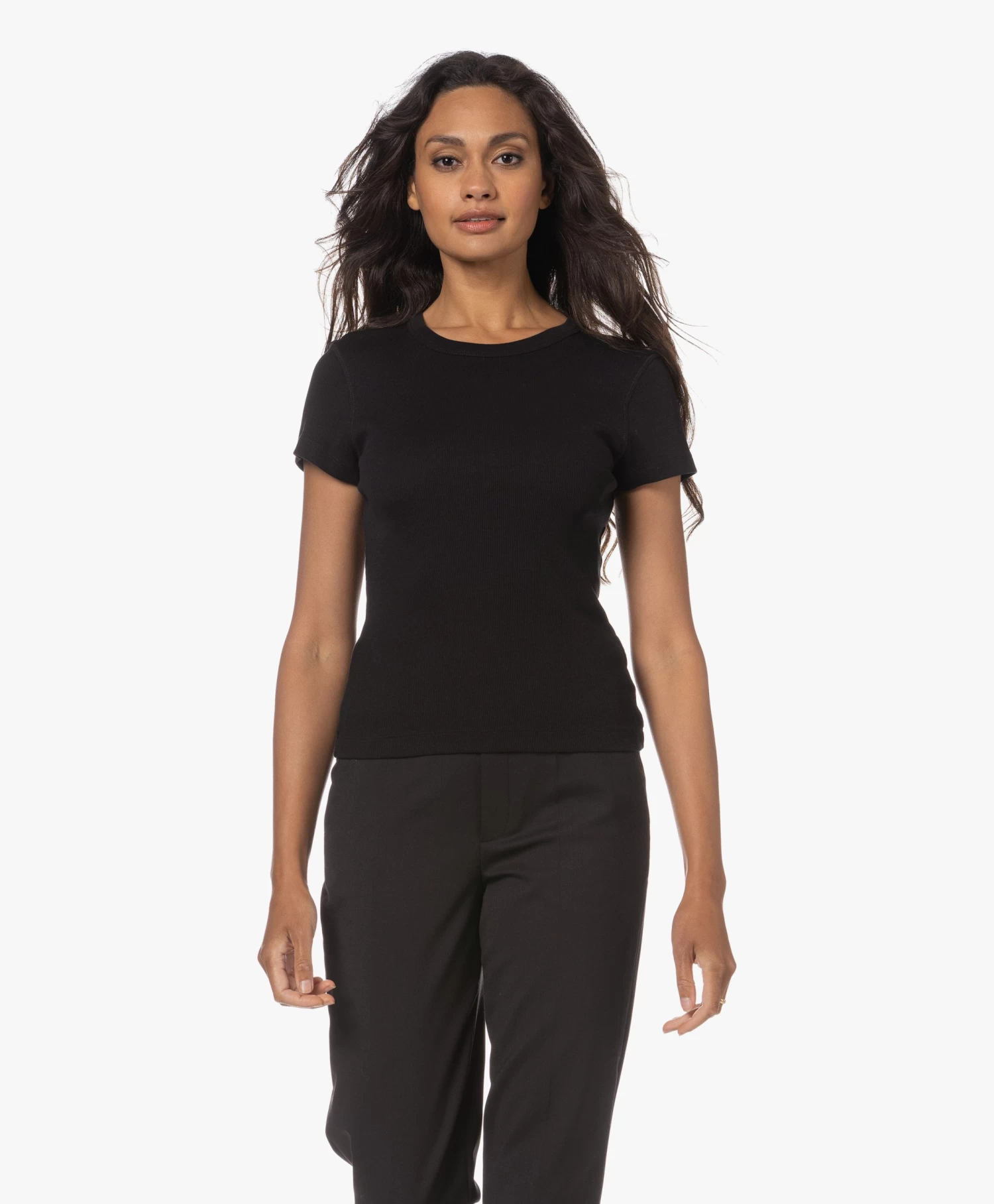 Stop je zoektocht naar het vinden van het perfecte T-shirt. Drykorn heeft ‘m voor je. Stijl Koale komt in een zwarte tint, heeft een slim-fit pasvorm, korte mouwen en een ultra-fijne rib in een puur katoenen jersey. Geen poespas, gewoon een héél stijlvol en comfortabel T-shirt voor je basisgarderobe.Â