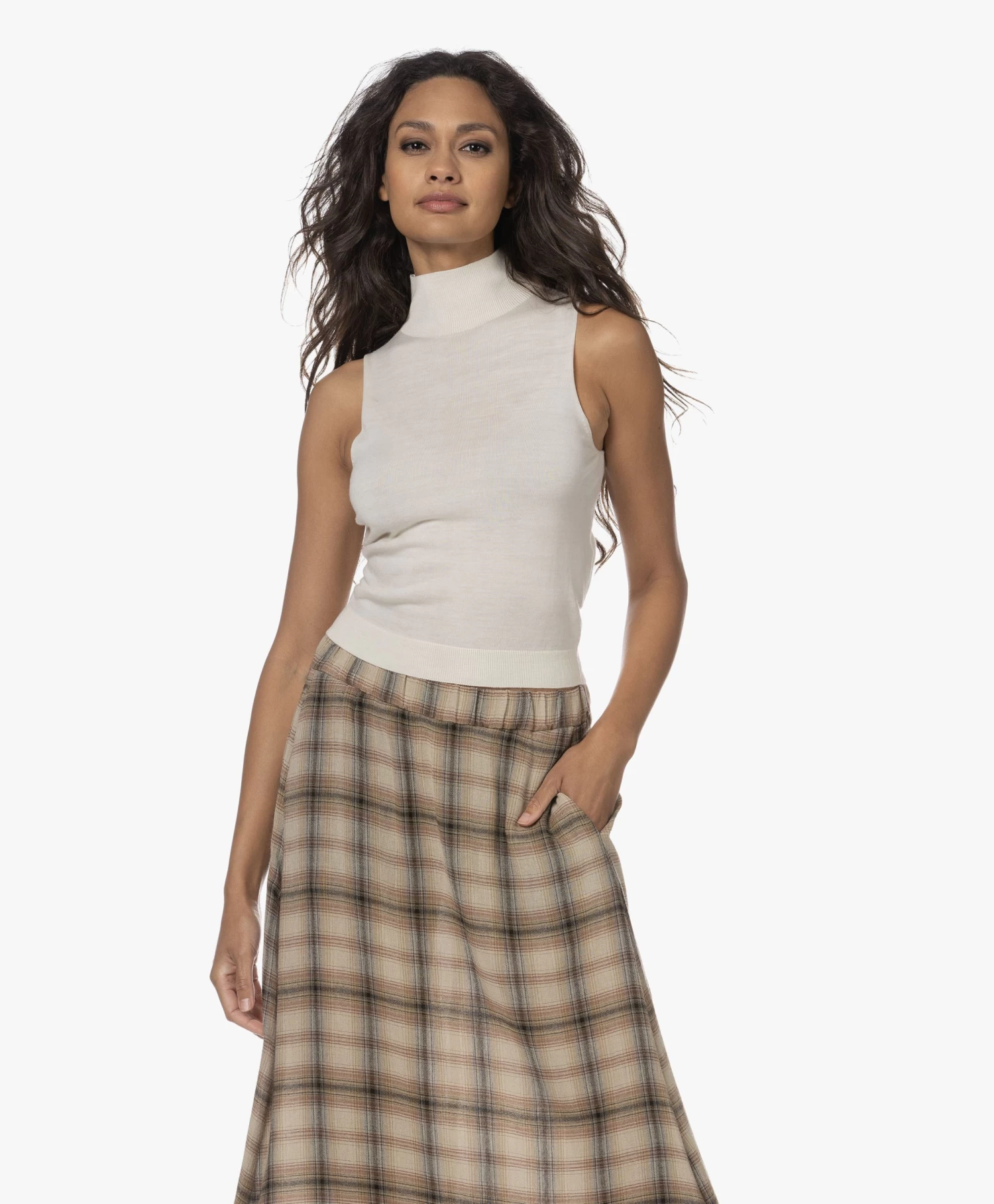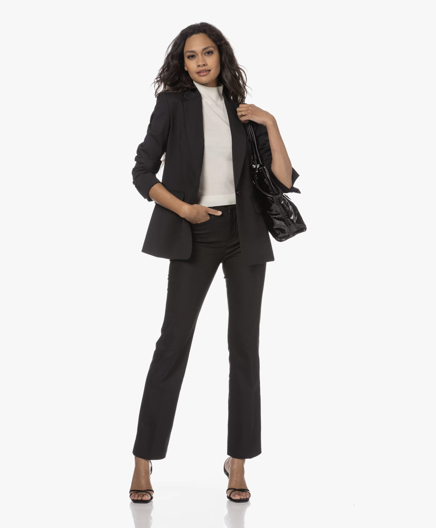 – Iets cropped lengte, aangesloten pasvorm
