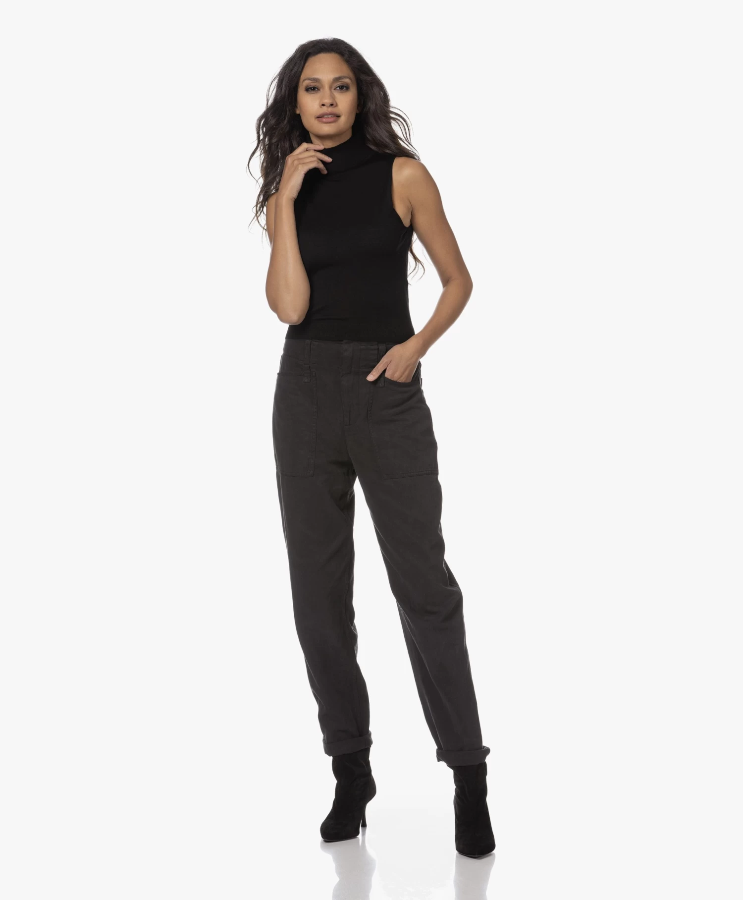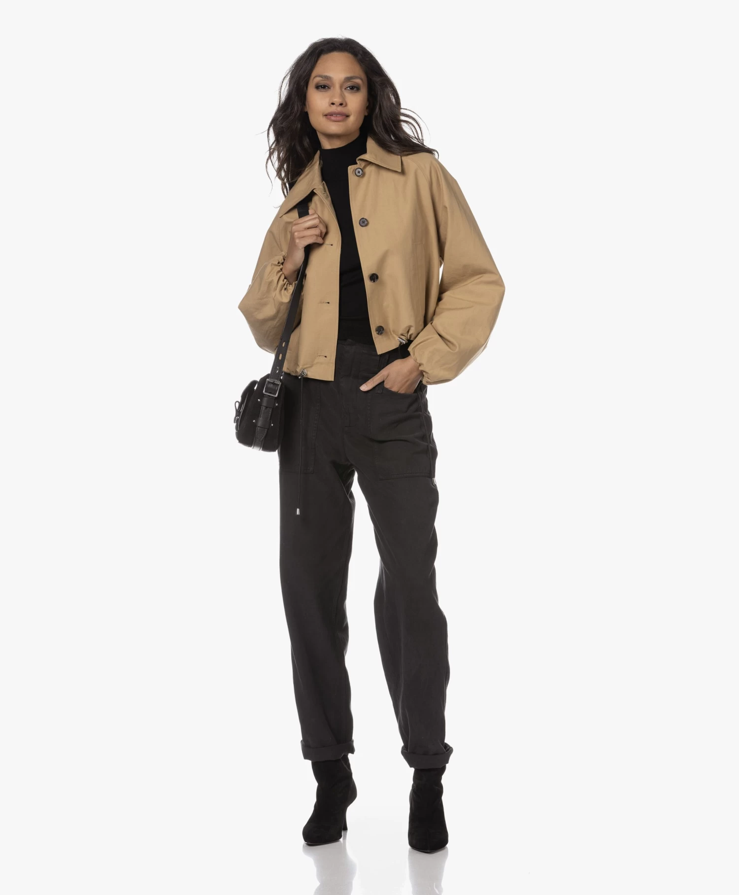 – Iets cropped lengte, aangesloten pasvorm