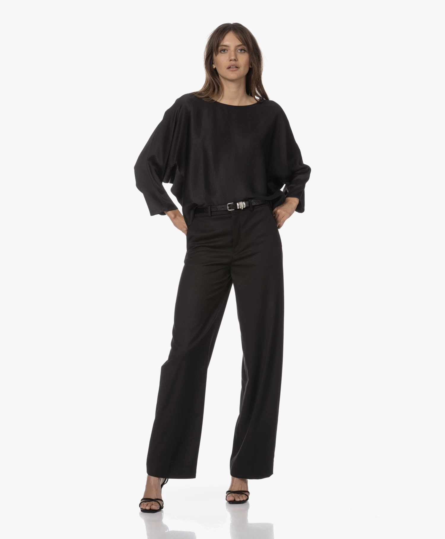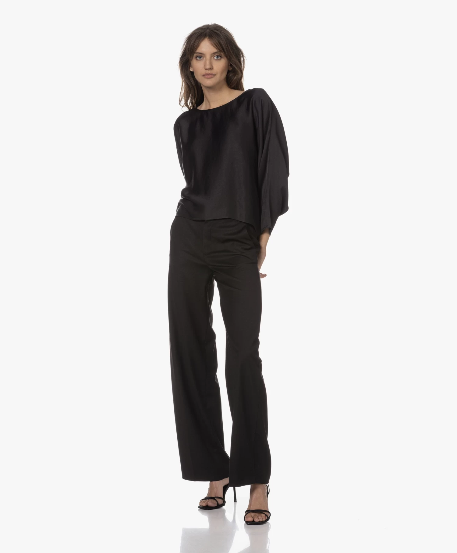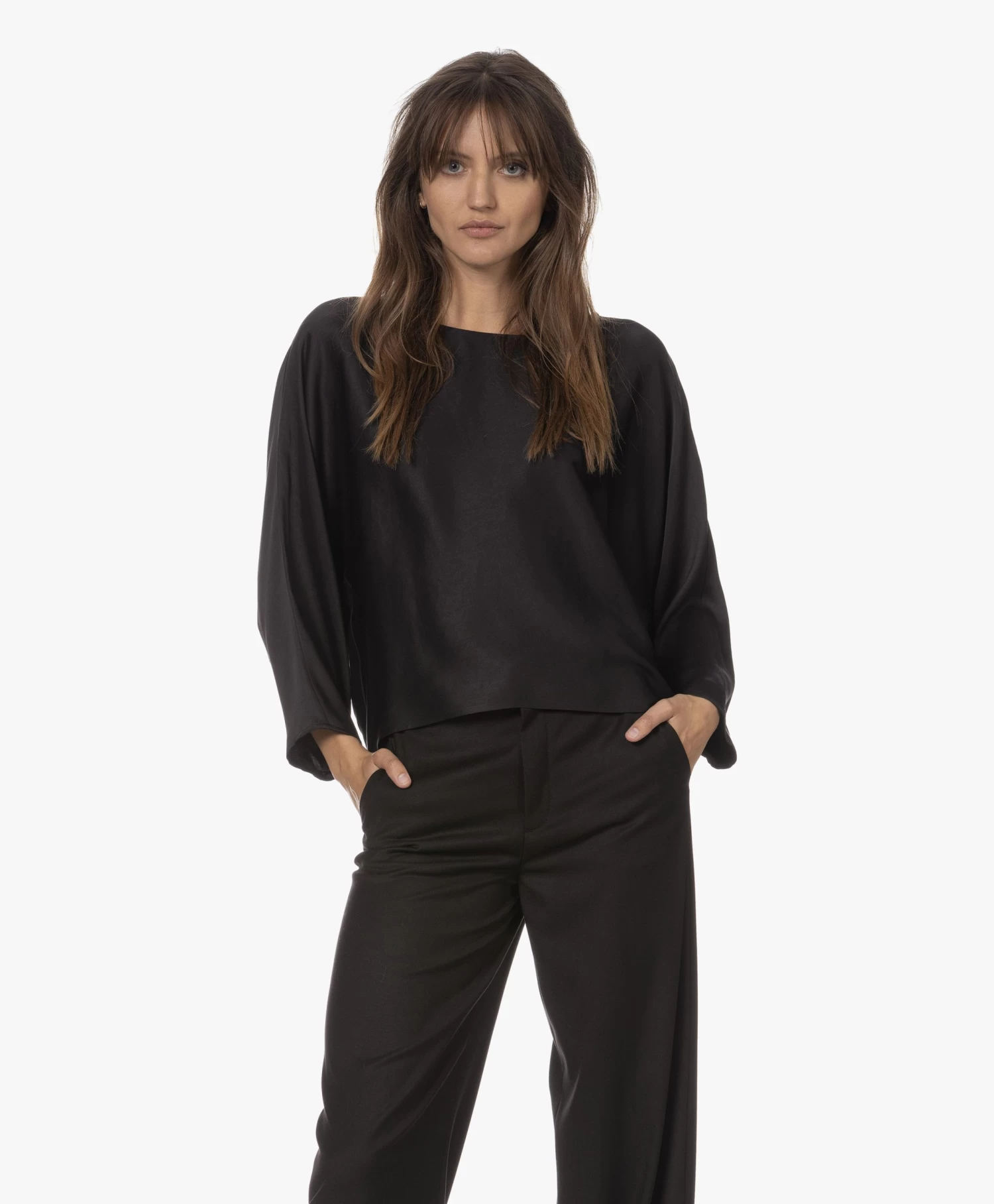 Simplistisch, doch verfijnd omschrijft blouse Nialini van Drykorn tot in detail. Met de zwarte kleur en de elegante vleermuismouwen zet het merk de minimalistische, luxe feel door die benadrukt wordt door de fijngeweven materialenmix met viscose. Het iets kortere voorpand oogt speels en eigentijds.