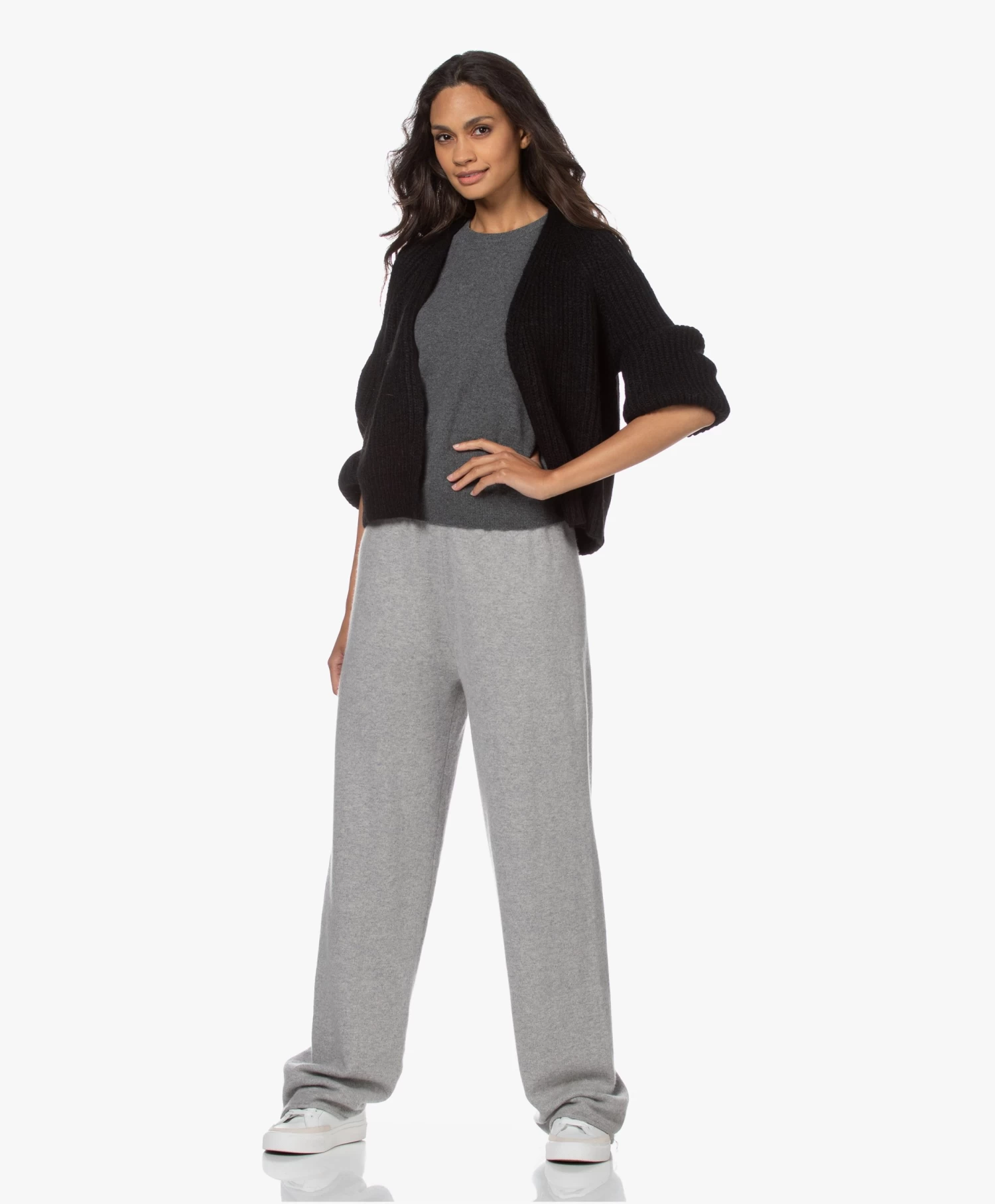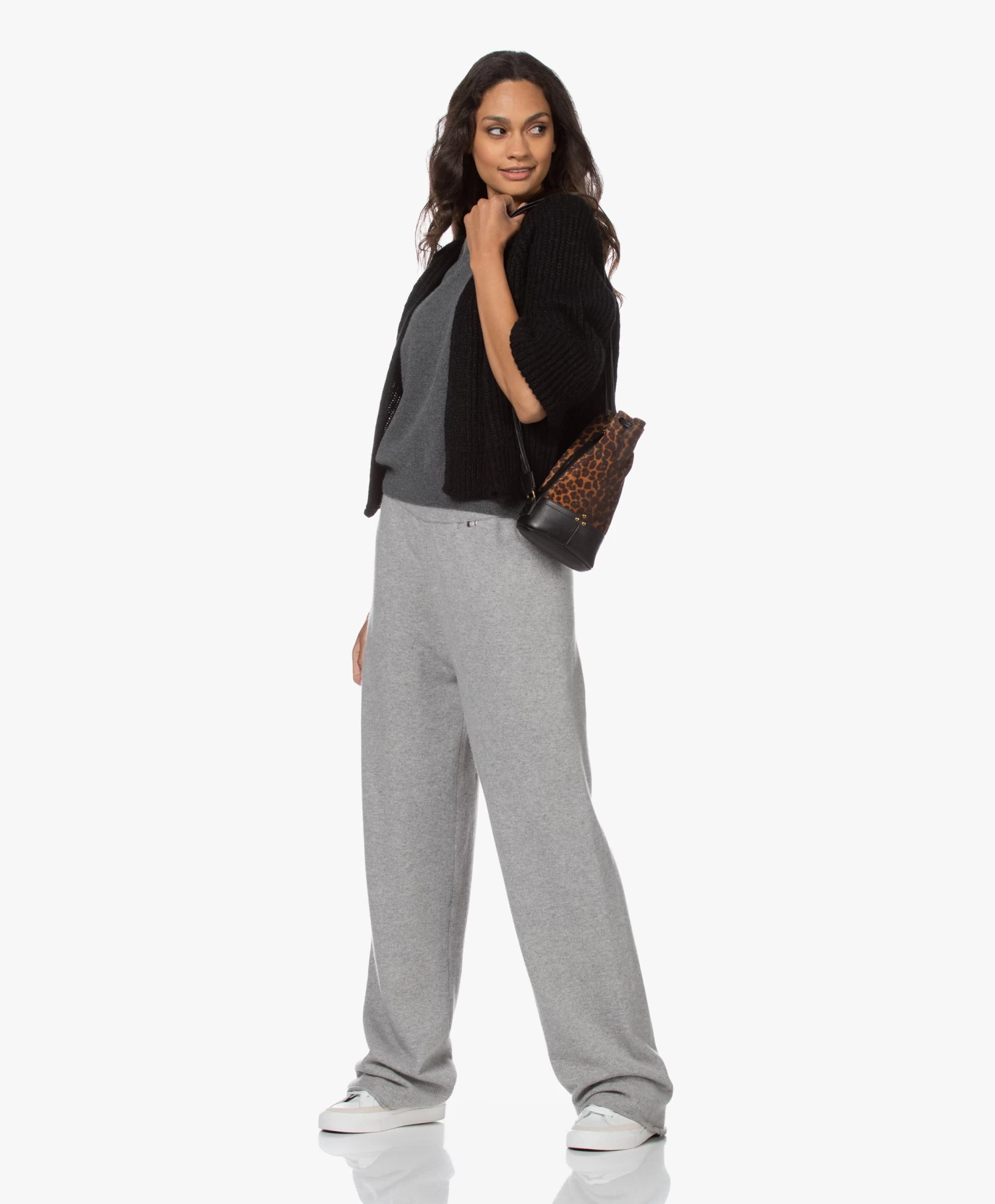 Deze losvallende N°104 broek van extreme cashmere representeert minimalistische luxe. Deze lichtgrijs gemêleerde broek is gemaakt van een ultra-zachte, fijn gebreide cashmeremix met ideale temperatuur regulerende eigenschappen en toegevoegde stretch voor een perfect vormbehoud. De recht gesneden pijpen met rolled-edge afwerking zijn expres extra-lang uitgevoerd, omdat je ze zonder problemen op jouw perfecte lengte kunt knippen.