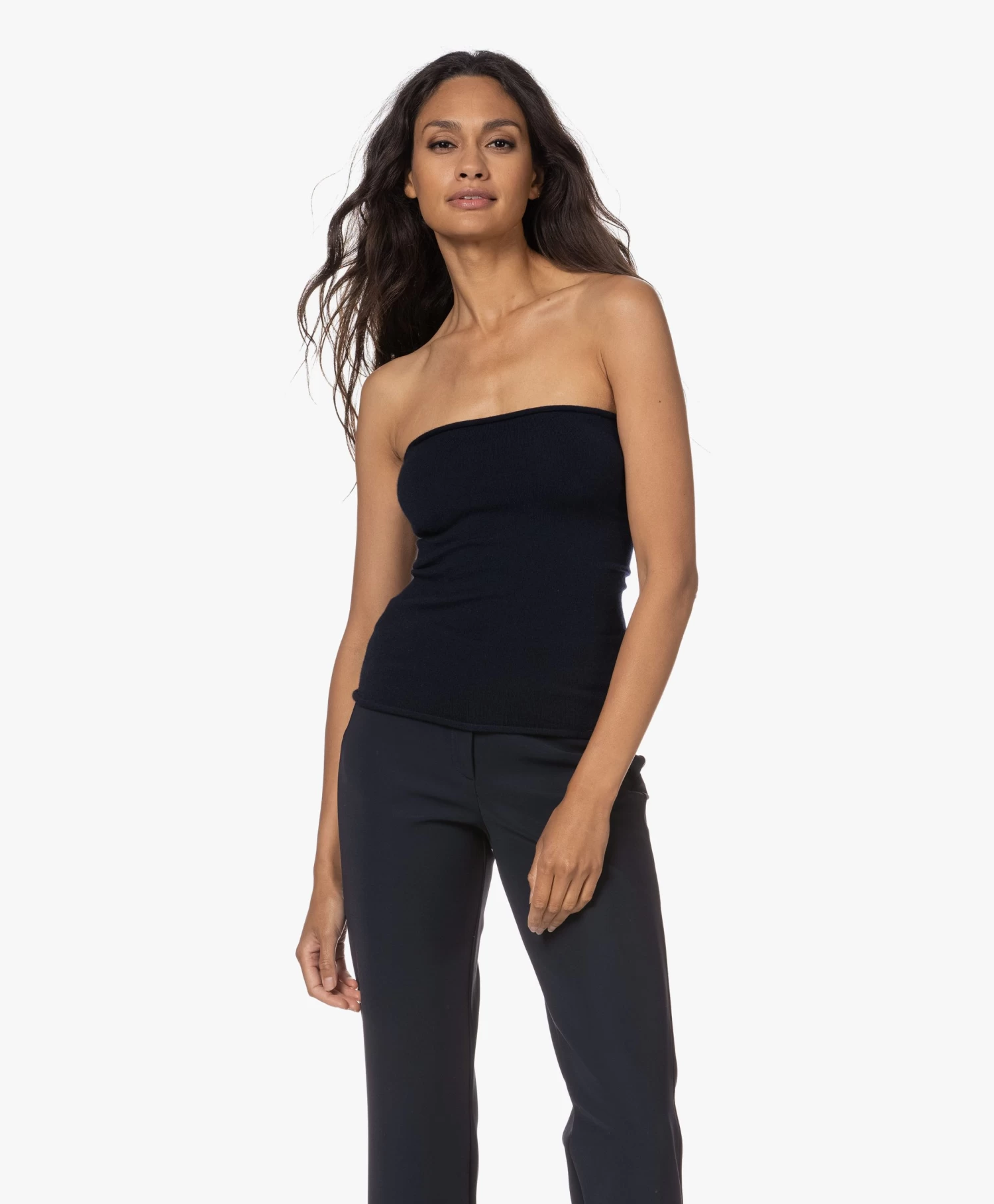 extreme cashmere ontwerpt een gebreid accessoire in donkerblauw die kan worden gedragen als top, sjaal of riem. Het fijn gebreide ontwerp is gemaakt van een ultra-zachte cashmere mix kwaliteit met stretch en heeft een rolzoom afwerking.