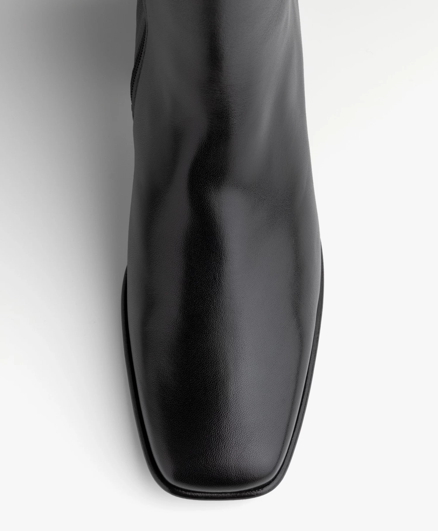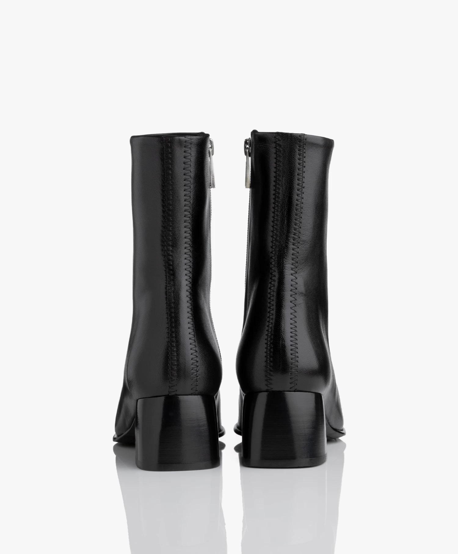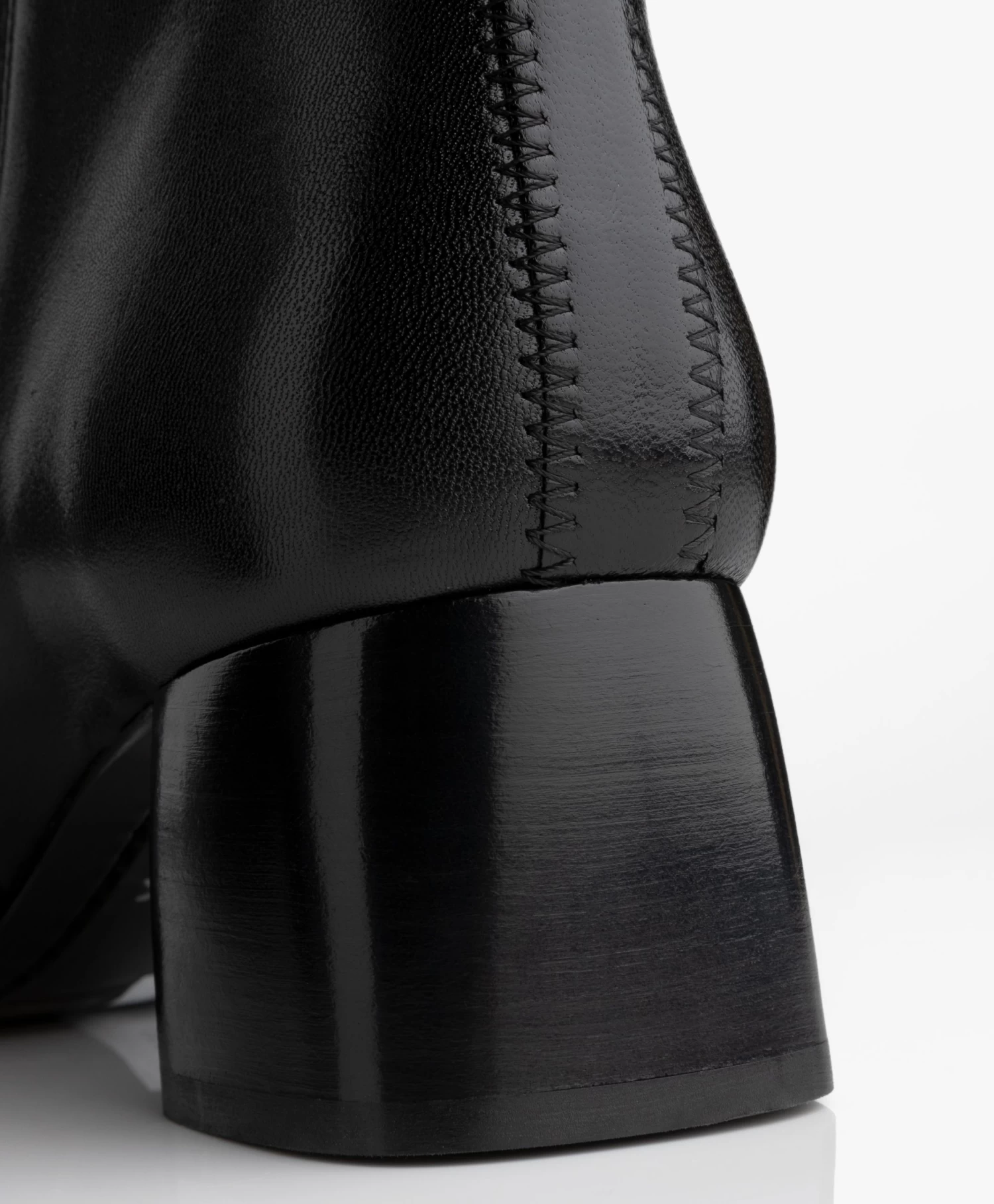 Het raffinement van deze Filippa K Eileen laarzen zit hem in de details. Deze zwarte, slank gesneden enkellaarzen zijn gemaakt van soepel en glad geitenleer, ontworpen met een iets afgeronde, vierkante neus en een dito afgeronde blokhak en gedecoreerd met ton-sur-ton zigzag stiksels middenachter. Omarm tijdloos design voor ieder seizoen.