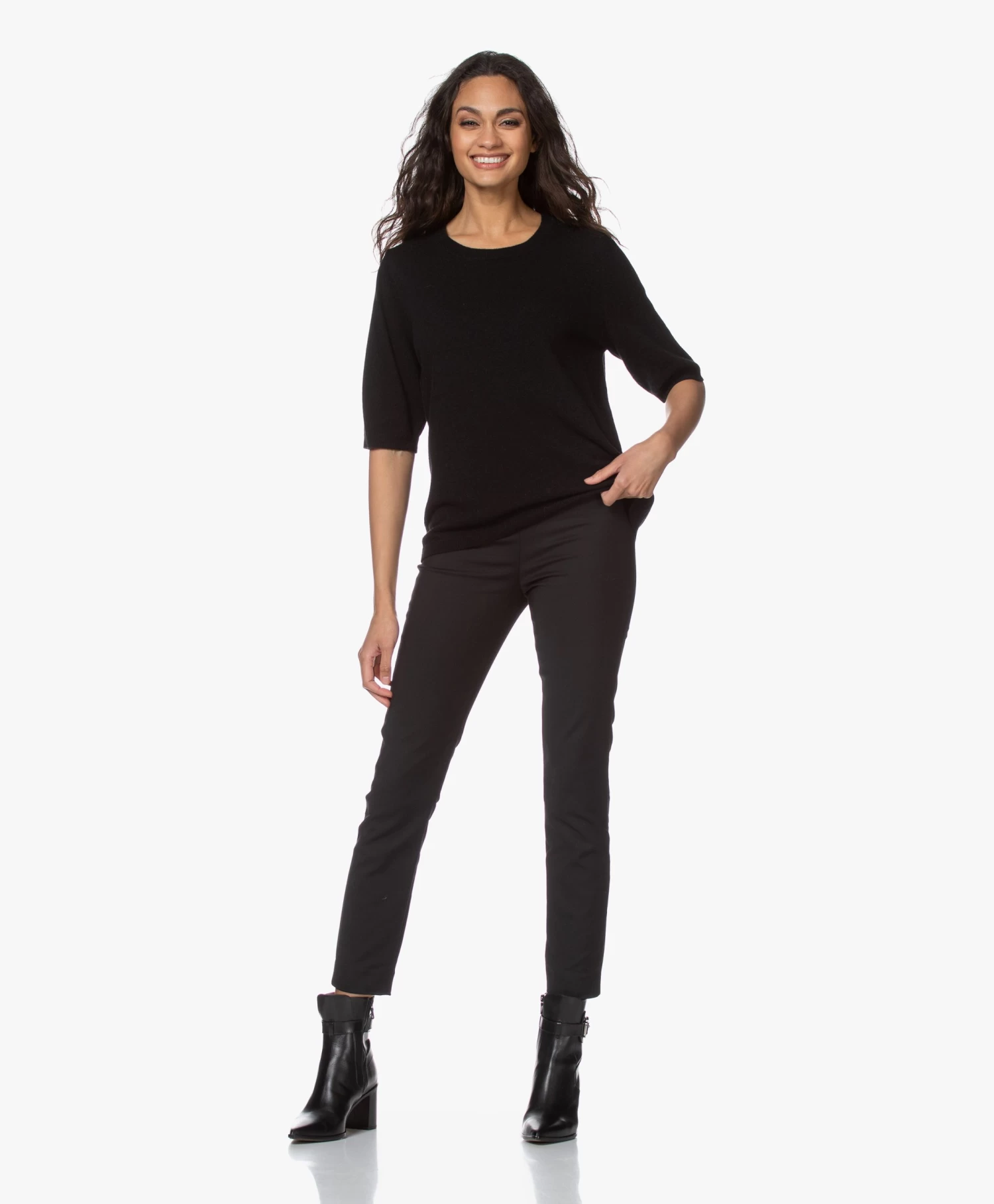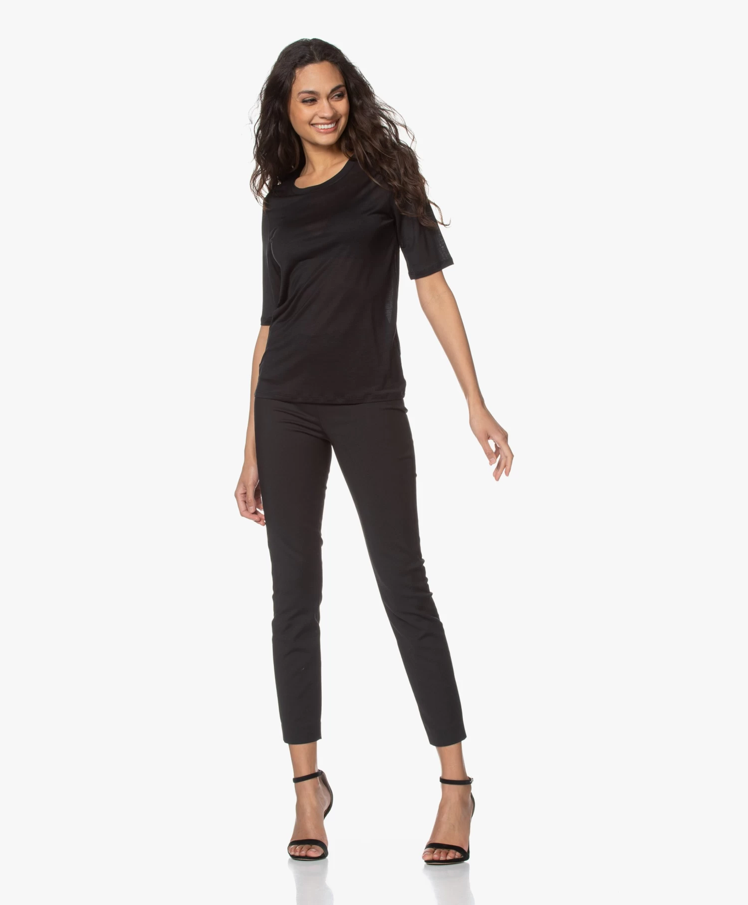 Wanneer comfort en stijl samenkomt in tijdloos design, ontstaat deze zwarte Mia slim-fit broek van Filippa K. De hoog getailleerde broek heeft aangesloten pijpen met een moderne enkellengte en is gemaakt van een verfijnde doch stevige katoenmix stretch kwaliteit met een minimalistische uitstraling.