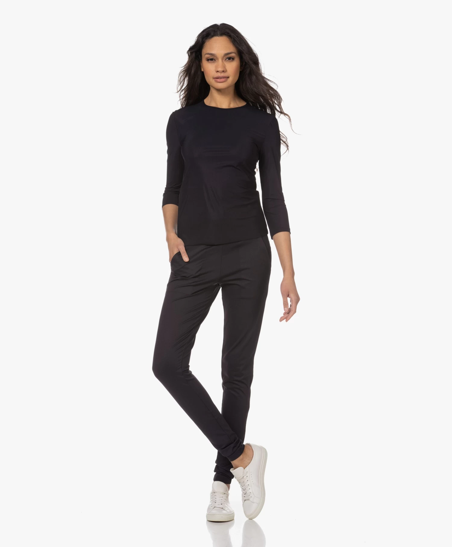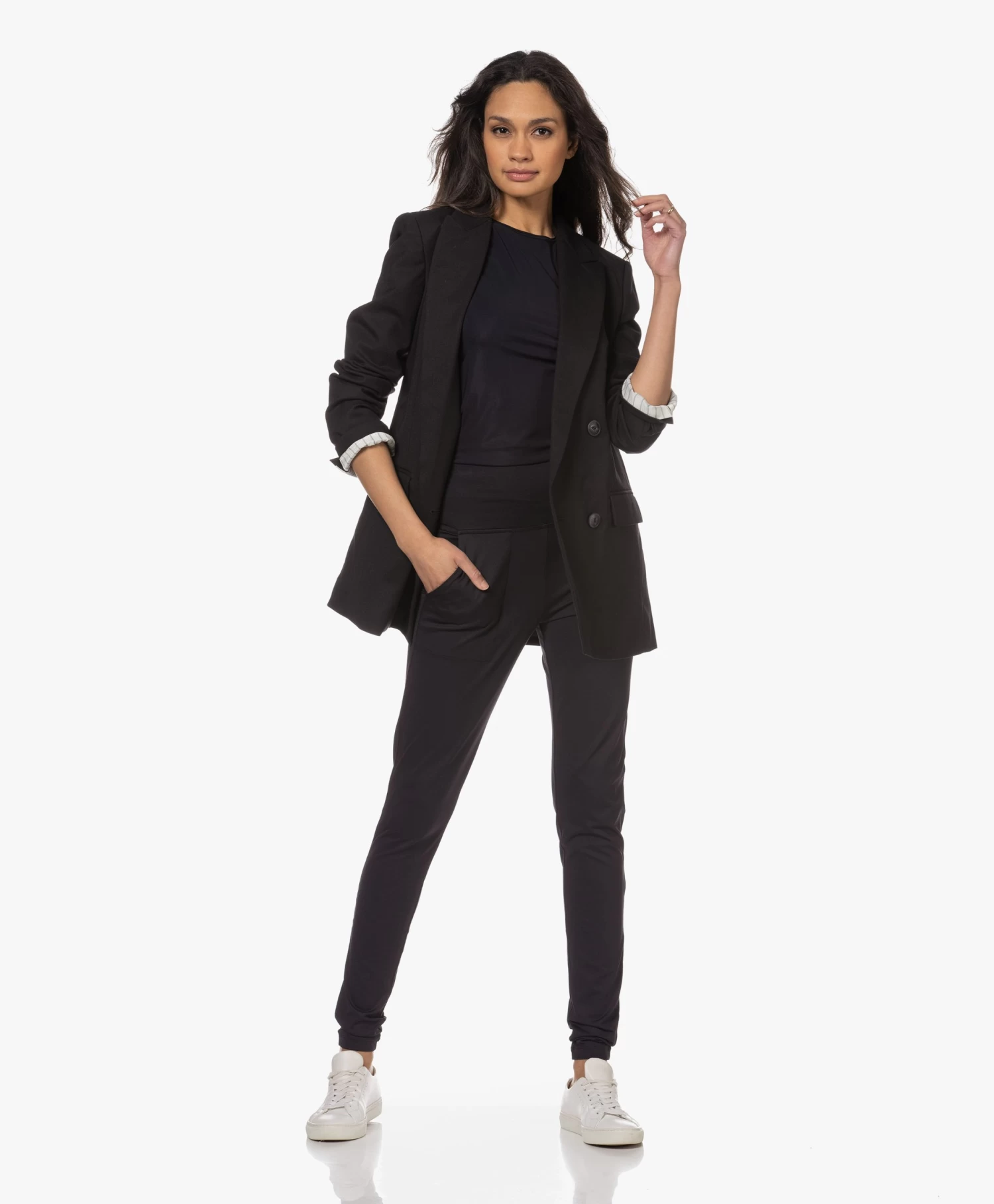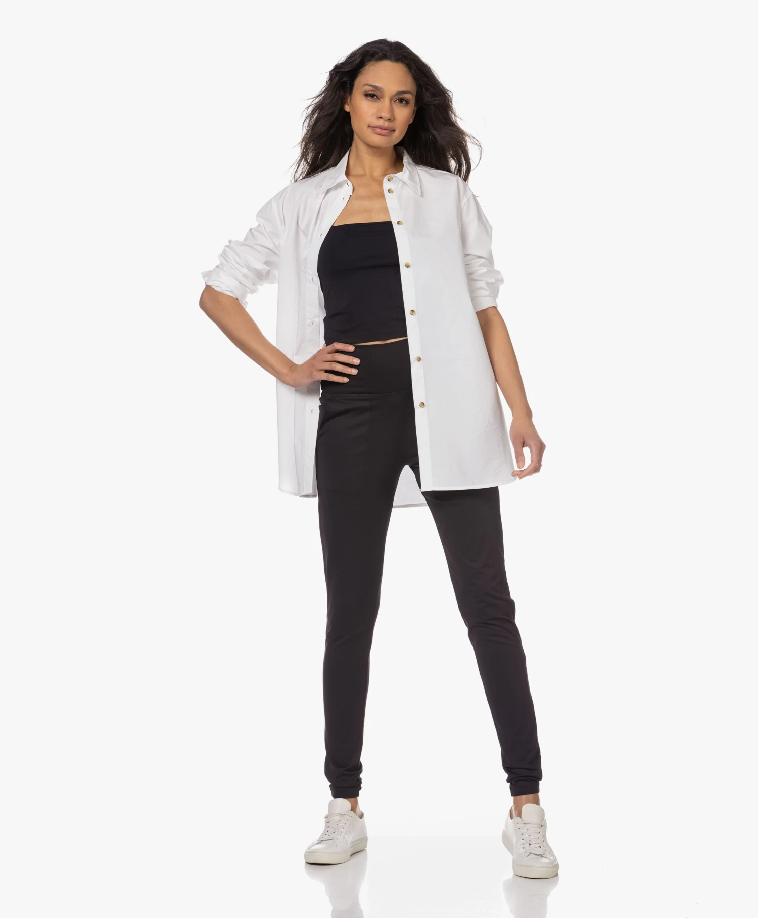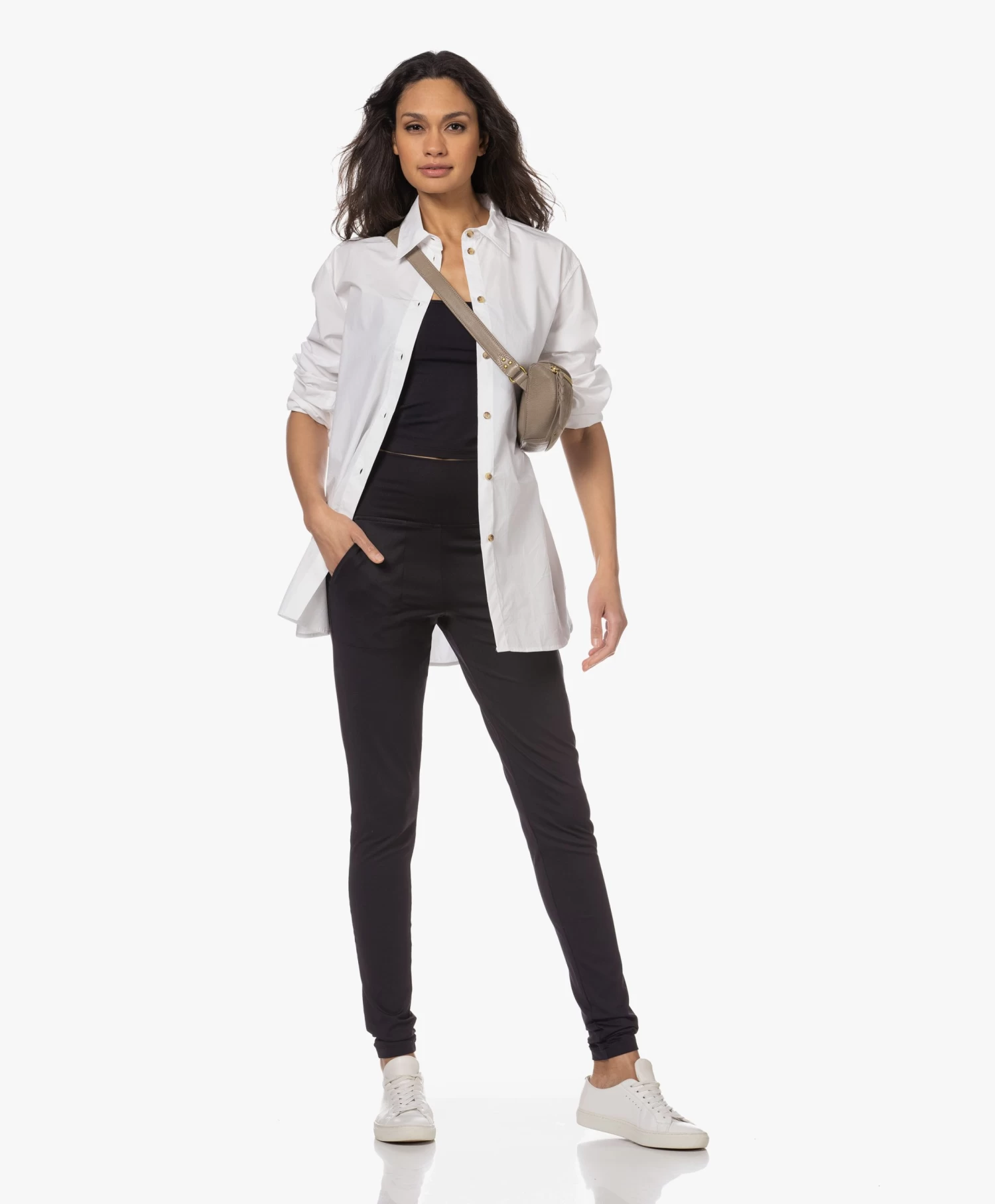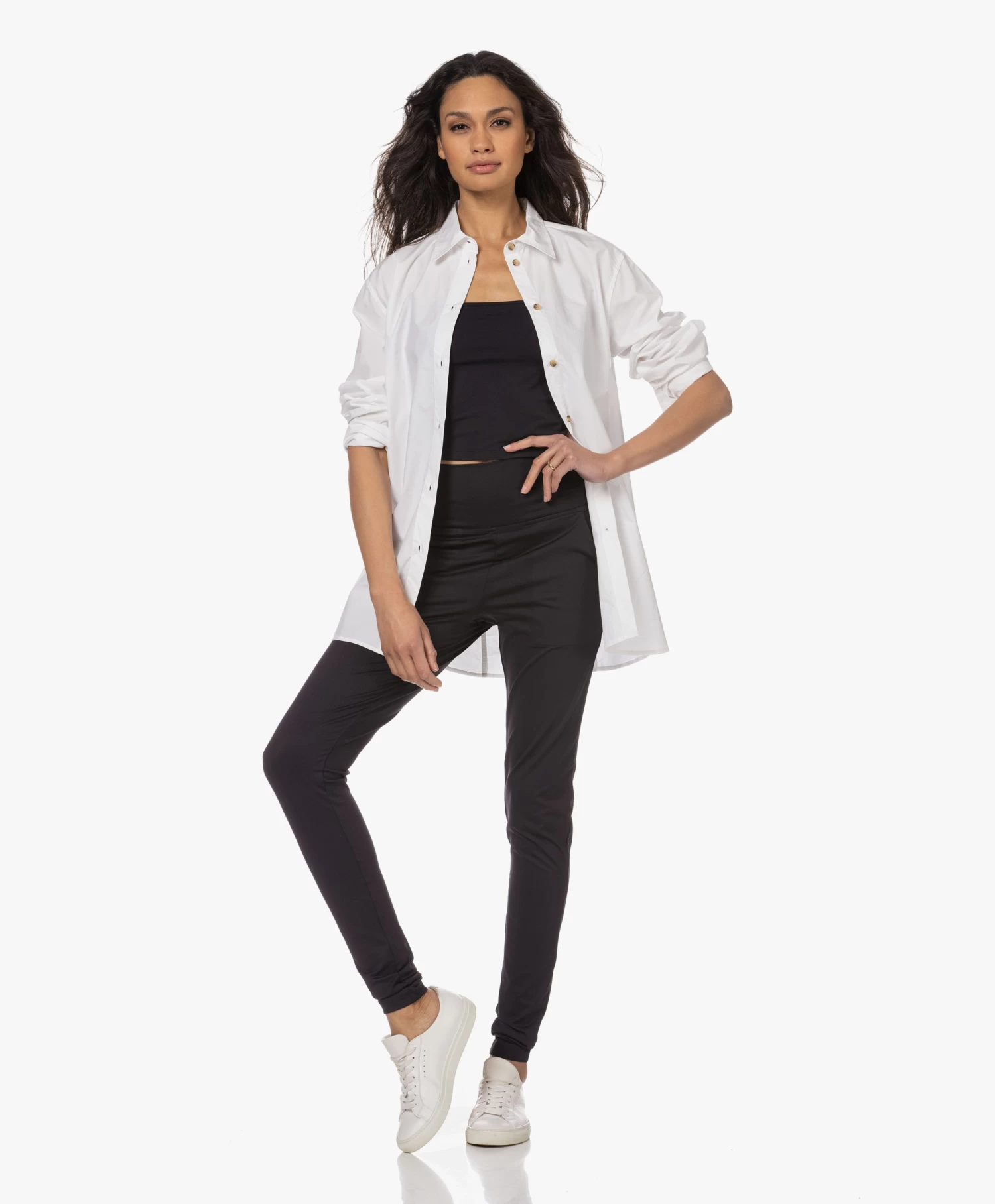Vergeet loeistrakke leggings, de net even wat lossere fit van Filippa K’s zwarte legging is de nieuwe standaard. Gemaakt van gladde technische stretch jersey en voorzien van een hoge dubbellaagse tailleband die je contouren goed laat uitkomen. Uitgerust met steekzakken voor je benodigdheden – én om een coole nonchalante pose aan te nemen.