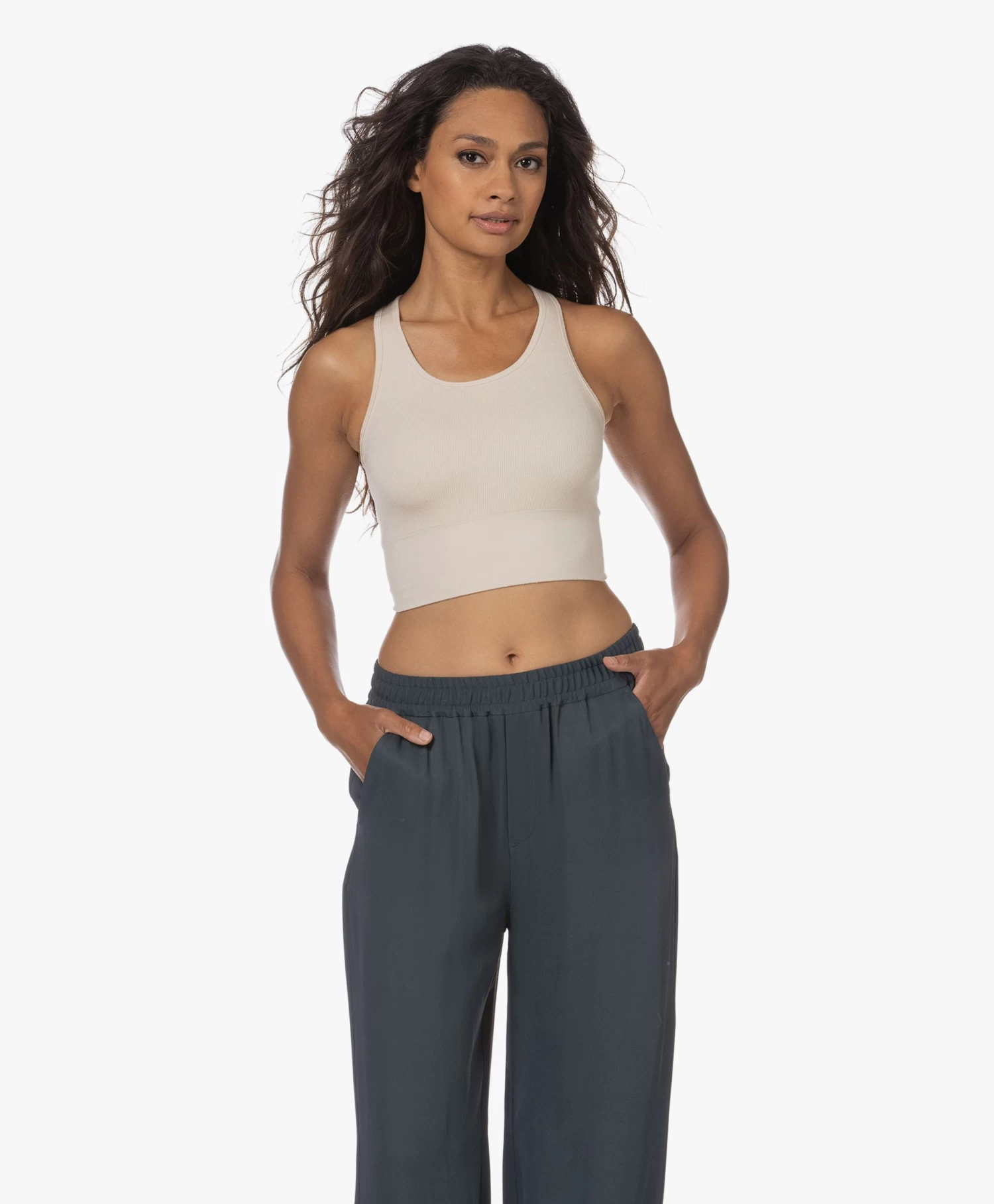 Doe je yoga poses aka asana’s in stijl met deze GAI+LISVA’s Lifa top in een tijdloze lichtbeige kleurtint. De cropped top is speciaal ontworpen om comfortabel én in stijl je yogales door te komen – gemaakt van een rib gebreide modalmix kwaliteit die ademend, zacht en stretchy is. Niks sportiefs op de planning staan? Dan is deze top ook absoluut stijlvol genoeg om te integreren in je dagelijkse garderobe.
