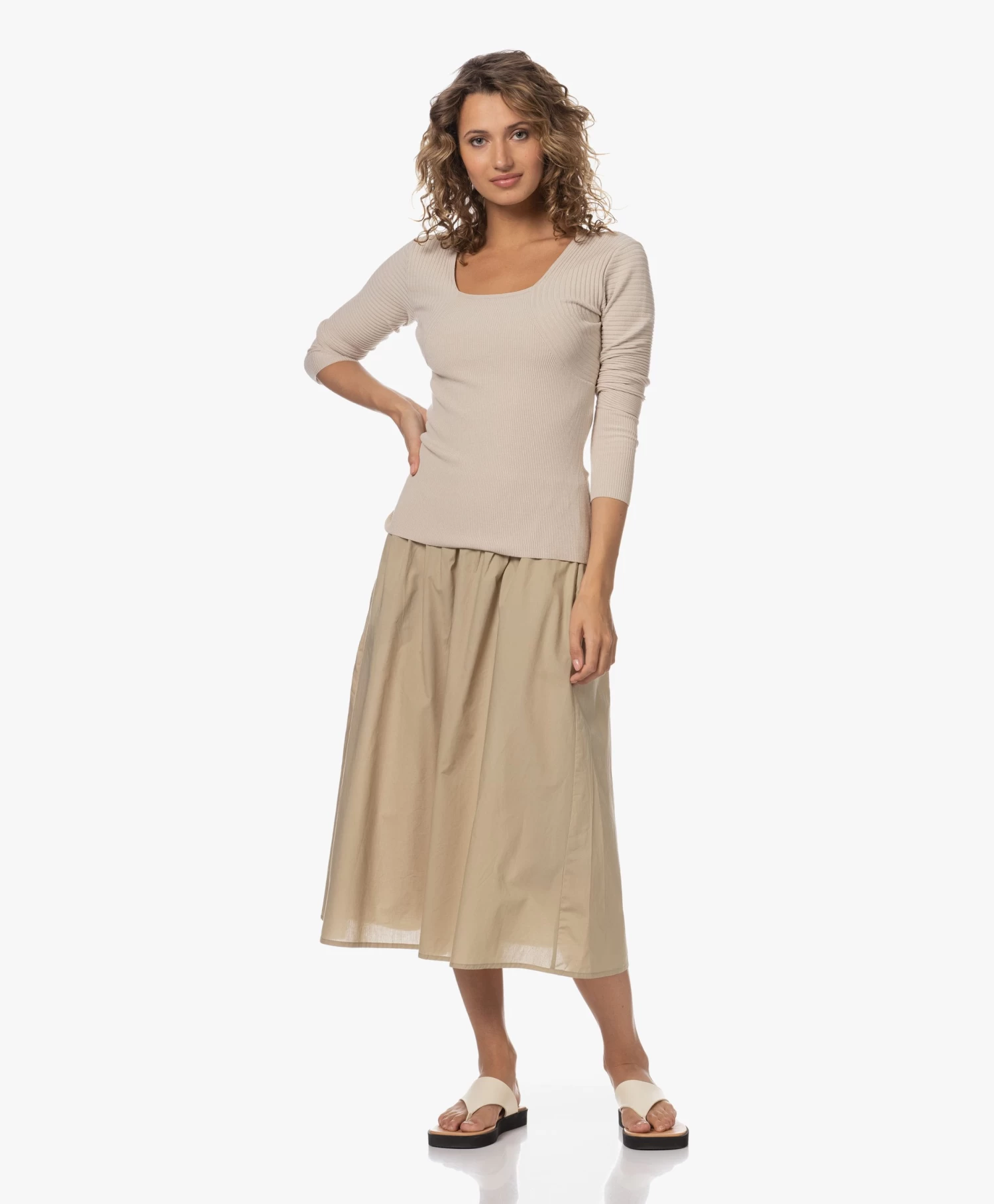 Cleane eenvoud en minimalistische stijl: het is Gai+Lisva’s kakibeige Petra rok ten voeten uit. Met weinig meer dan een smalle elastische tailleband en een kuitlange A-lijn belijning zet je met deze rok een prachtig plaatje neer. Gemaakt van gladde lichtgewicht poplin in puur katoen.