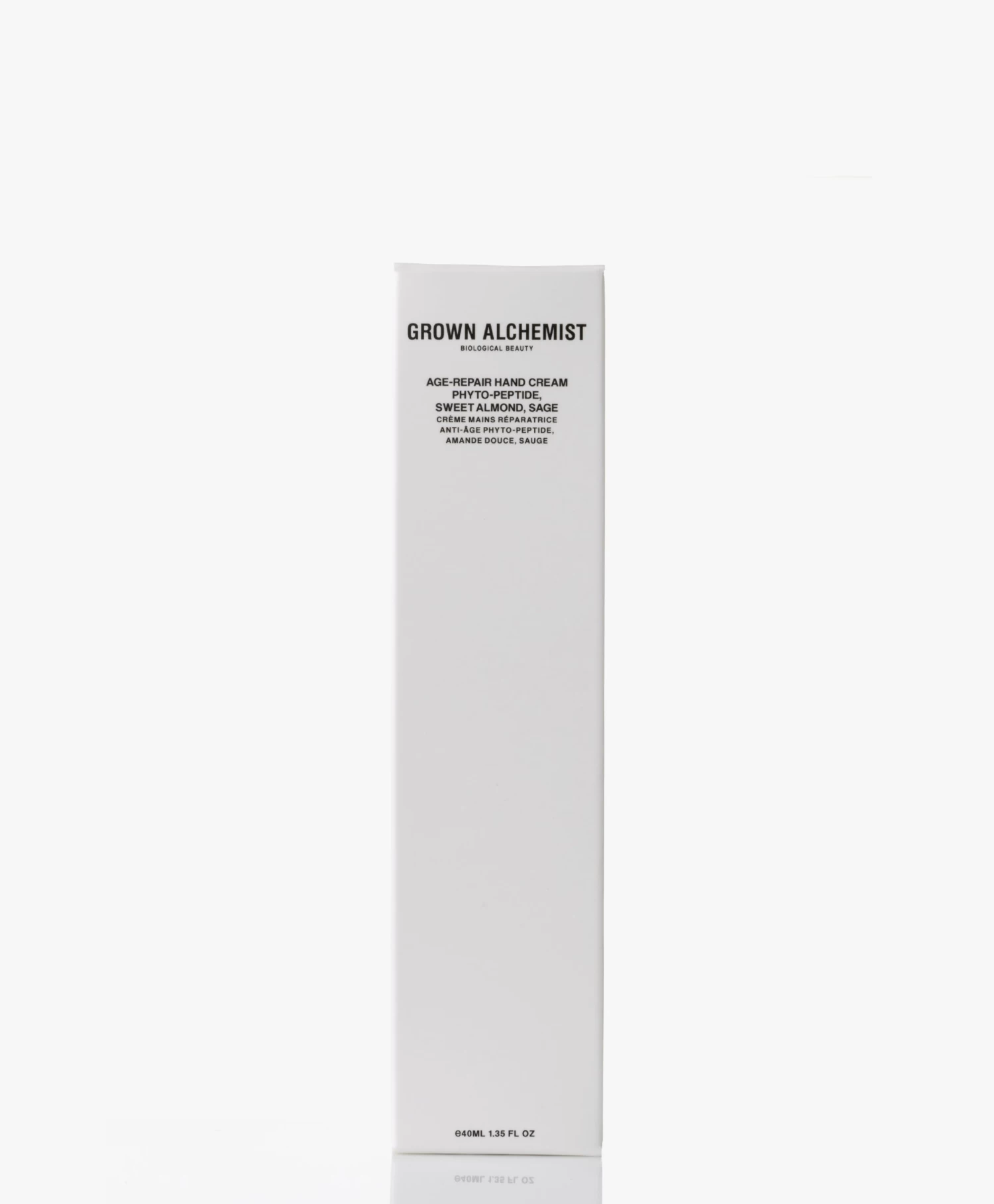 Grown Alchemist komt met deze krachtig geformuleerde handcrème die zich richt op fijne lijntjes, rimpels en pigmentatie. De dunner wordende huid wordt zichtbaar verzacht en de hydratatie verhoogt; waardoor de handen er gladder, steviger en egaler uitzien. Fijne lijntjes en rimpels worden worden verminderd, evenals tekenen van zonschade – met de zoete geur van amandel en het kruidige salie.