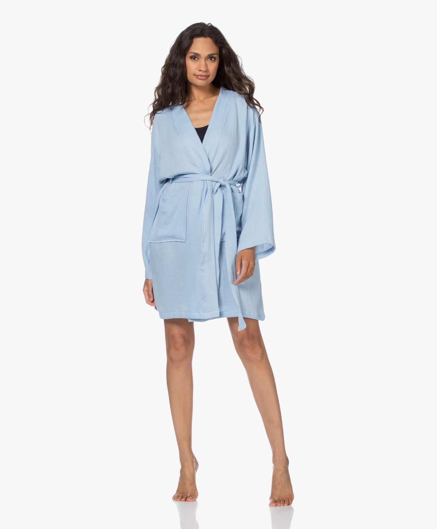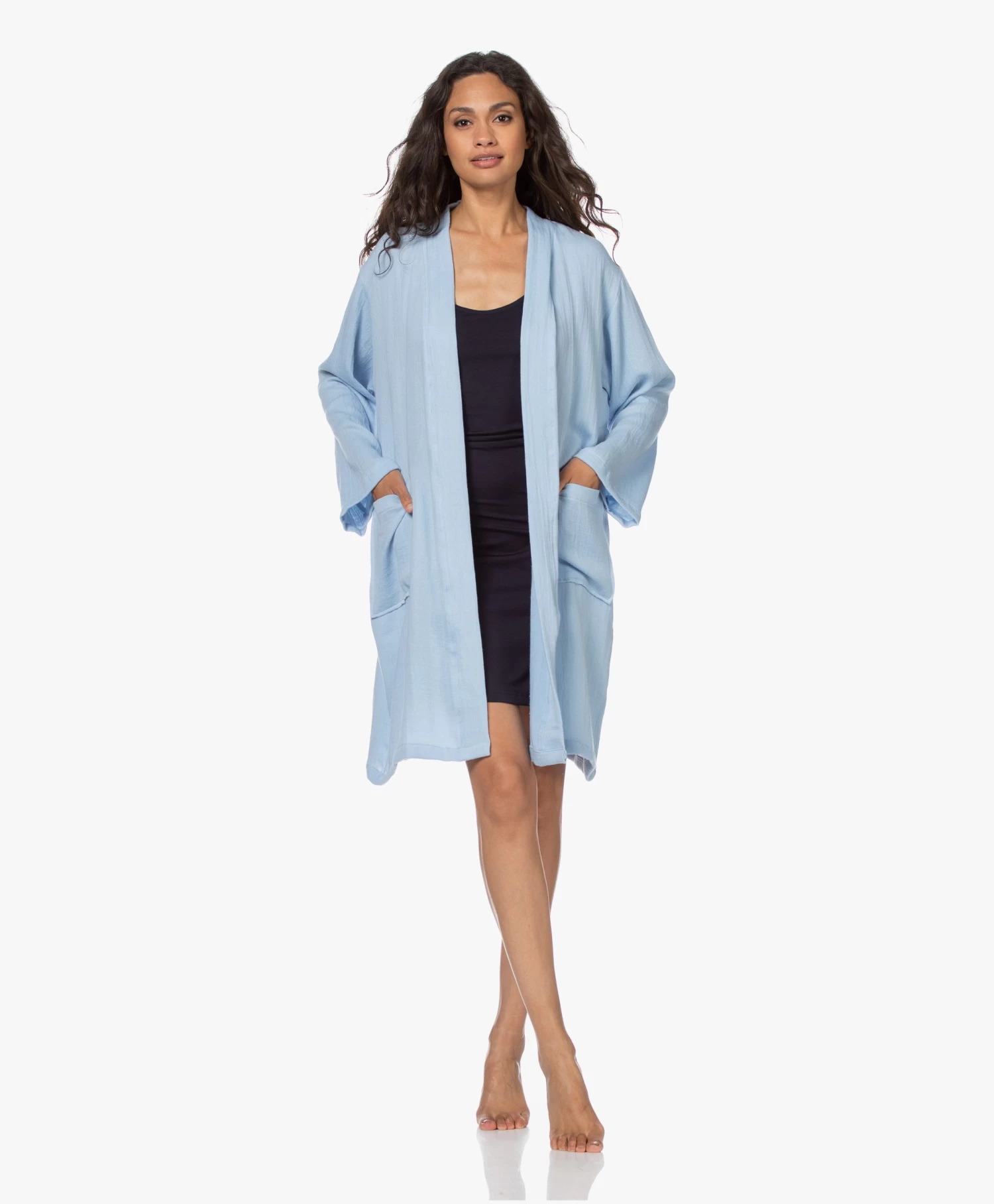 Het stijlvolle borduurwerk van een fazant in aardetinten, siert deze lichtblauwe The Pheasant kimono van HAMMAM34. Een veelzijdig item om op verschillende manieren te dragen – het hele jaar door! Als stijlvolle cover-up op het strand of bij het zwembad, relaxend in huis of zelfs ter vervanging van een blazer of vest. Jij bepaalt!