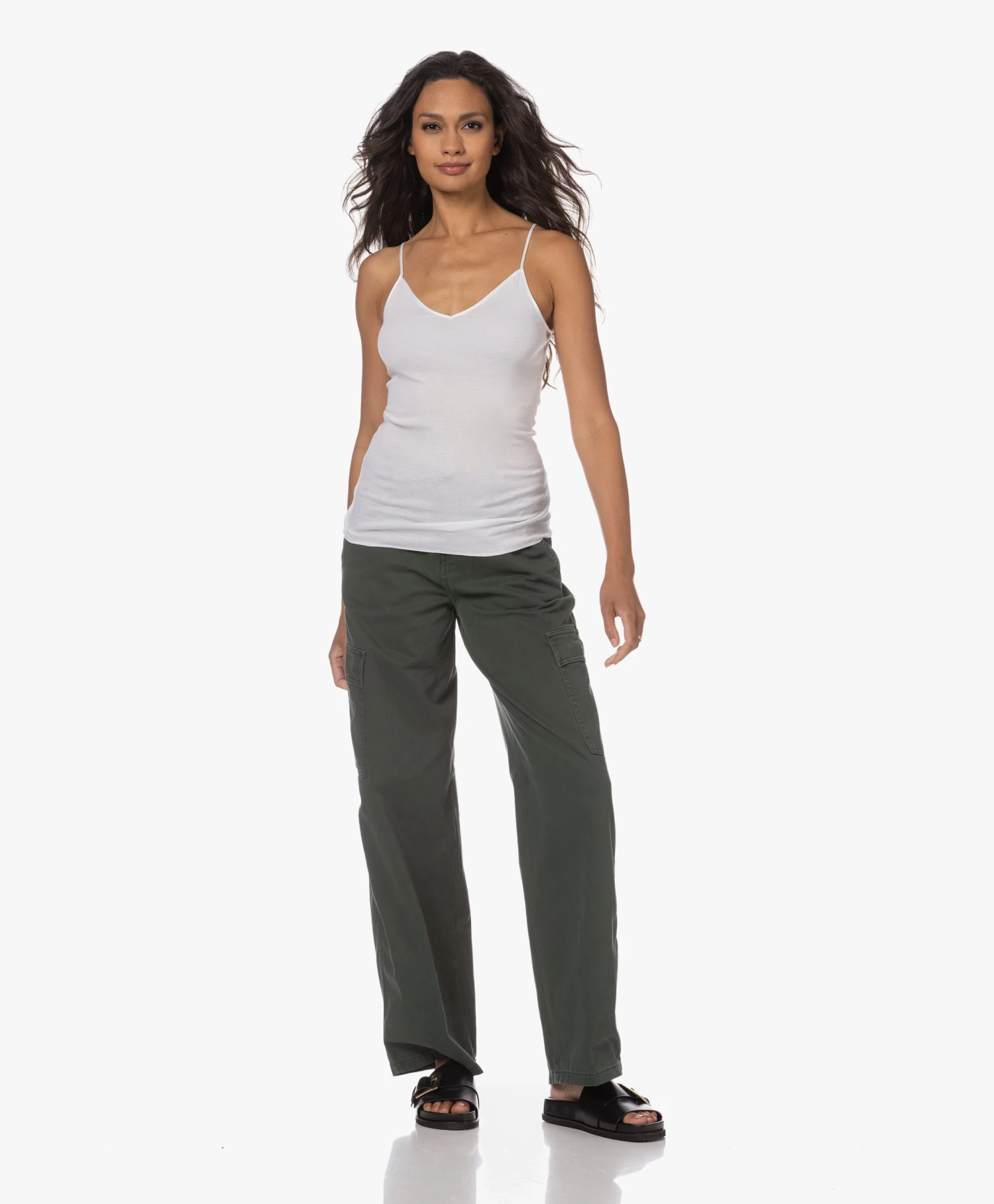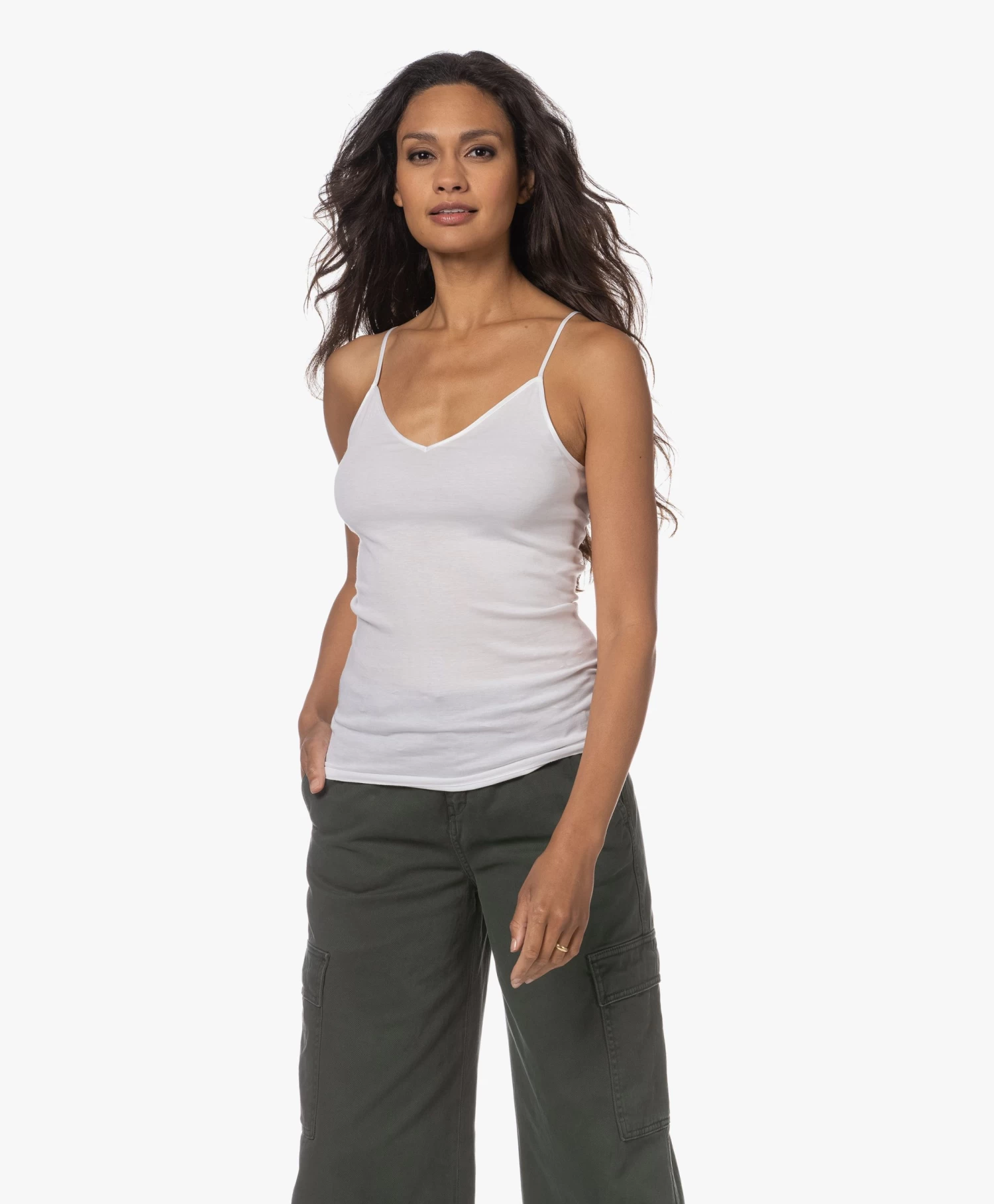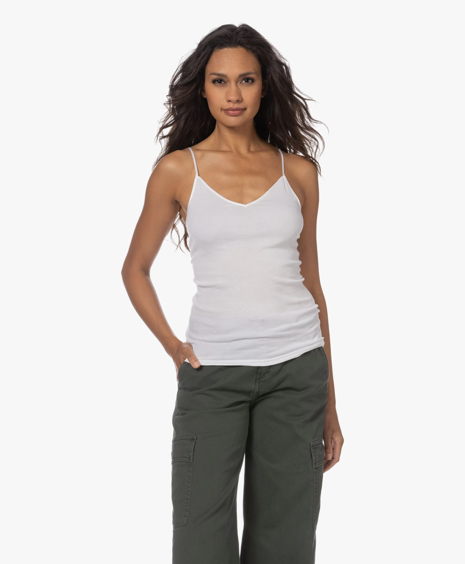 Deze spaghetti top van HANRO is ontworpen met een verleidelijke V-hals. Deze witte mouwloze top is onderdeel van de bestselling Cotton Seamless lijn – deze stijl is gemaakt van zacht en lichtgewicht gemerceriseerd katoen in een fijne ribkwaliteit voor een second-skin pasvorm. Dit stijlicoon heeft een naadloos ontwerp en delicate satijnen randen. Â