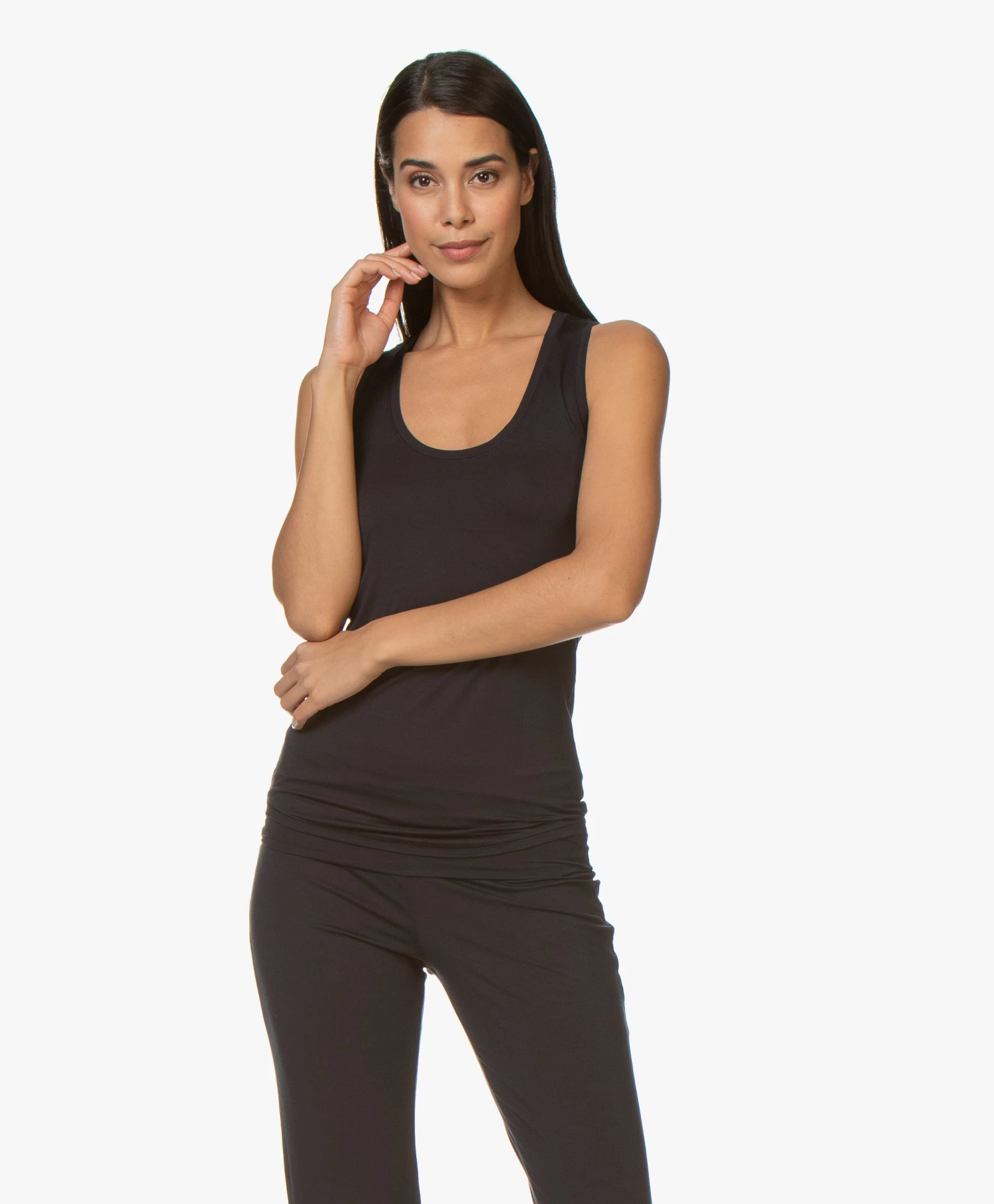 Op zoek naar de ideale multifunctionele tanktop om te dragen naar een yogales, in te relaxen of zelfs te dragen als tijdloze top? Deze zwarte alleskunner van HANRO voldoet aan alles – mede door de flatterende pasvorm maar vooral door de uiterst comfortabele micro modal jersey kwaliteit die lichtgewicht, zacht en soepel voelt om te dragen en de perfecte hoeveelheid stretch biedt voor een flatterende pasvorm.