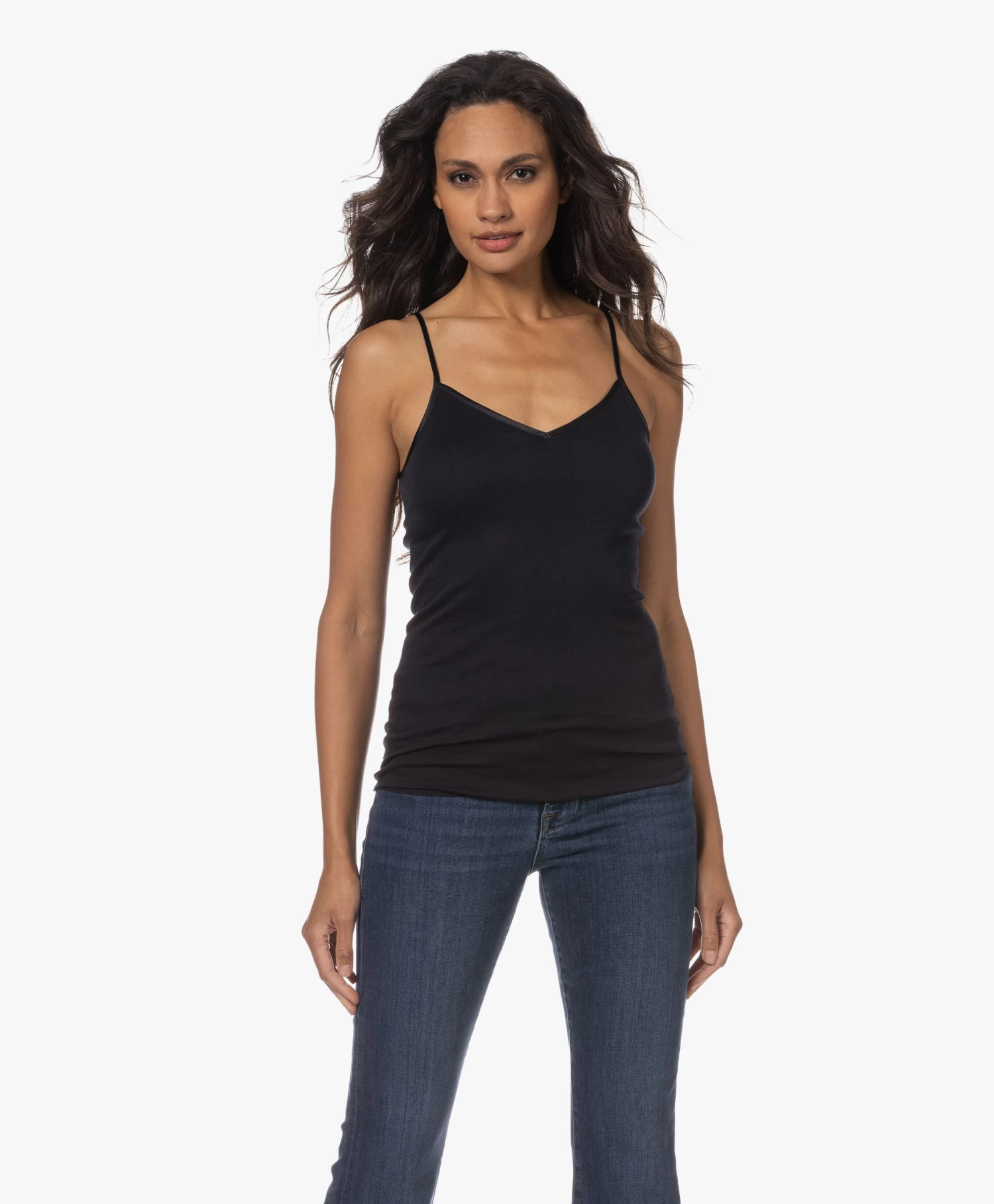 Deze spaghetti top van HANRO is ontworpen met verwijderbare padding bij de buste voor een perfecte fit. Deze zwarte mouwloze top is onderdeel van de bestselling Cotton Seamless lijn – deze stijl is gemaakt van zacht en lichtgewicht gemerceriseerd katoen voor een second-skin pasvorm. Dit stijlicoon heeft een naadloos ontwerp en delicate satijnen randen.