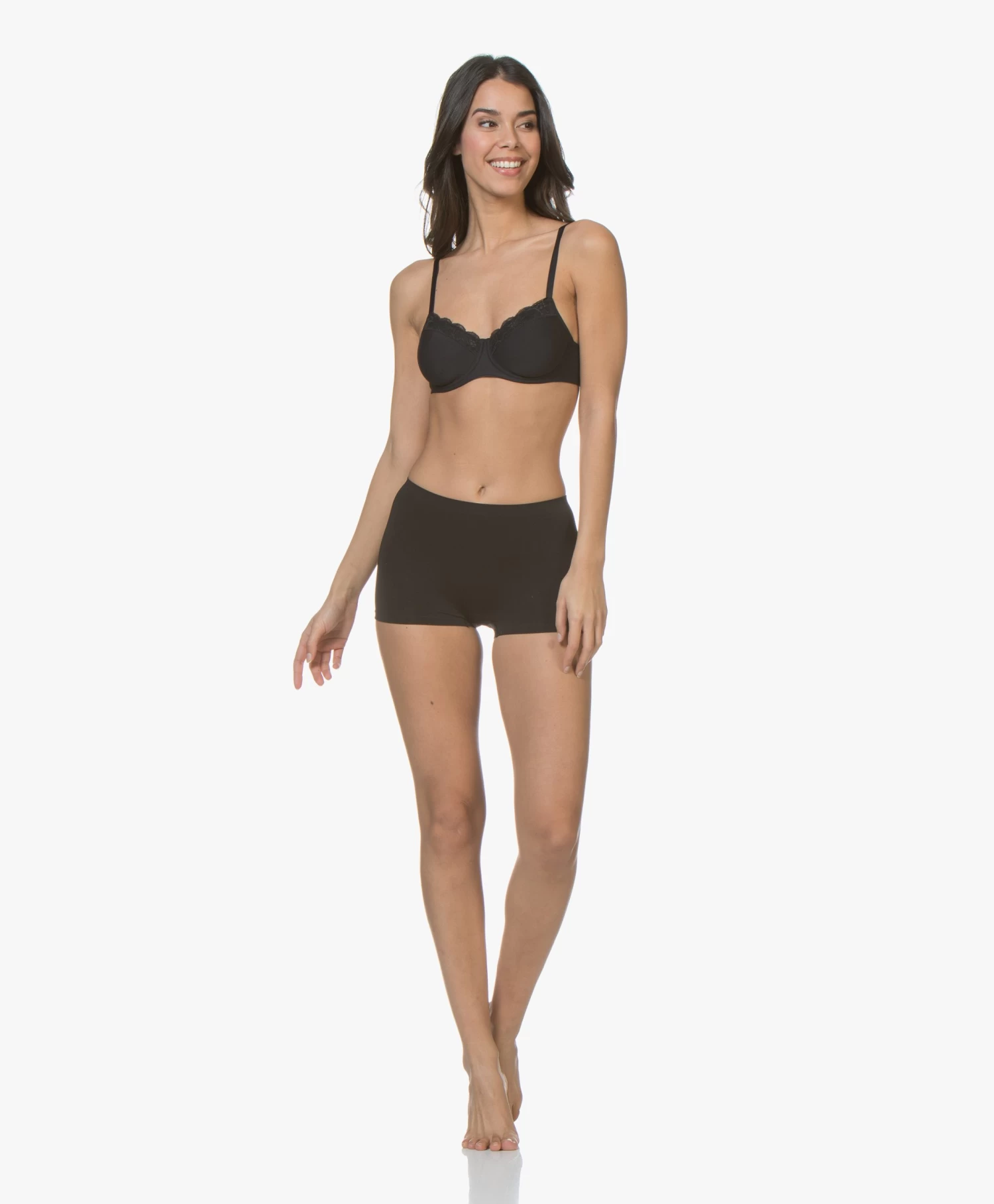 Deze zwarte short van HANRO komt met een flatterend hooggetailleerd design en is gemaakt van een lichtgewicht, stretchy en comfortabele microfiber kwaliteit voor een ‘second-skin’ pasvorm. Deze comfortable short heeft een trendy en sporty borrowed-from-the-boys feel. Combineer met de bijpassende tanktop voor een super comfortabele basis. Â